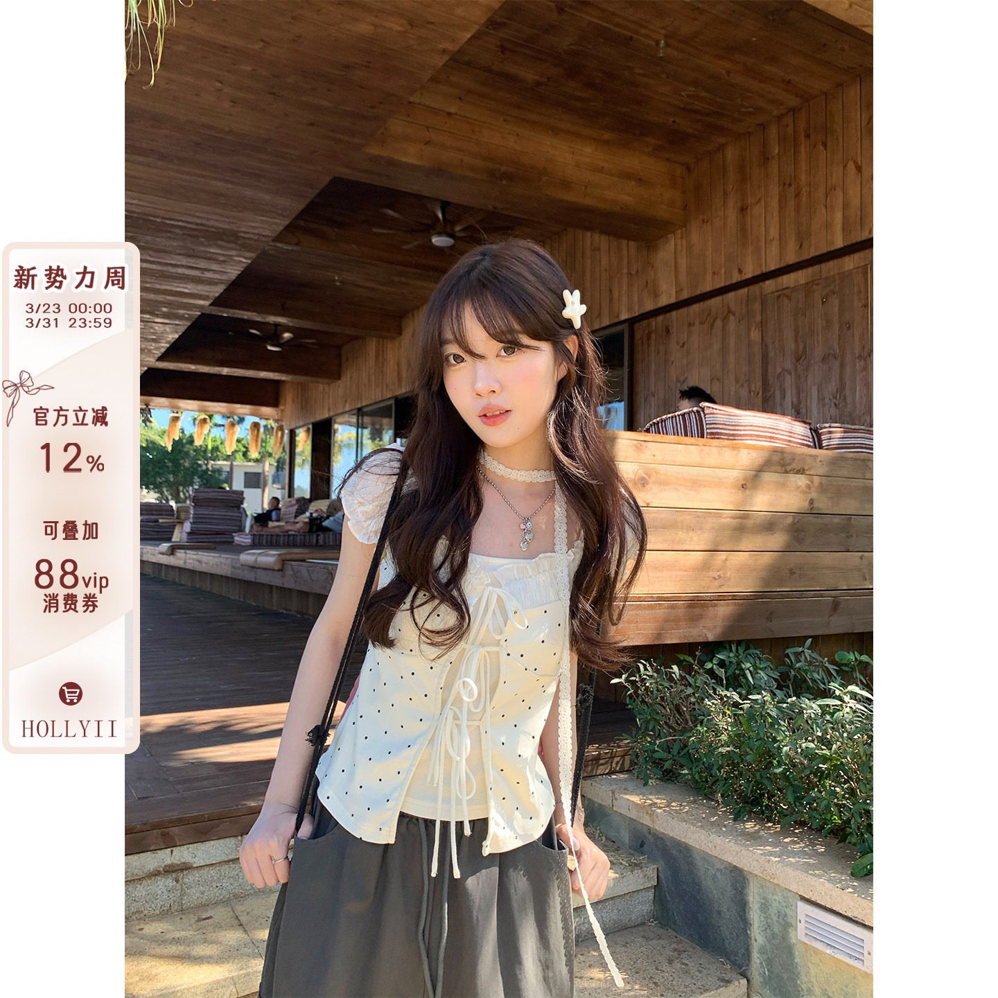 2026 여름 학원 스타일 반팔 여성 여름 배색 체크무늬 페이크 레이어드 몸매 가꾸기 티셔츠 달콤한 매운맛 맨위 트렌디 스웨터