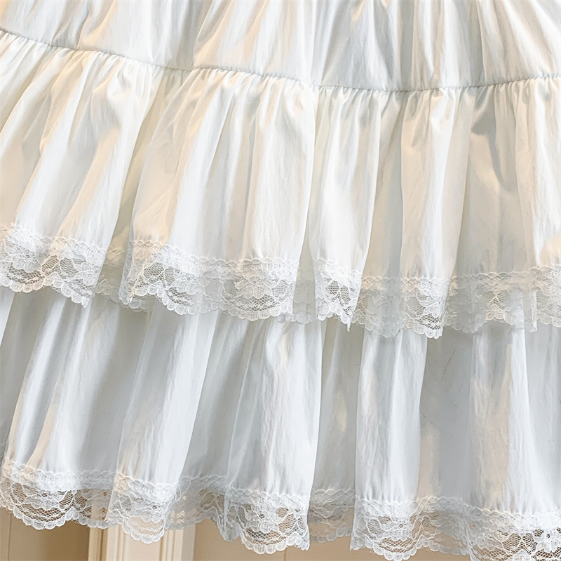 실사 지방 mm 빅 사이즈 화이트 프랑스식 발레 바람 퍼프 케이크 드레스 프릴 하이웨이스트 한 마디 레이스 반신 스커트