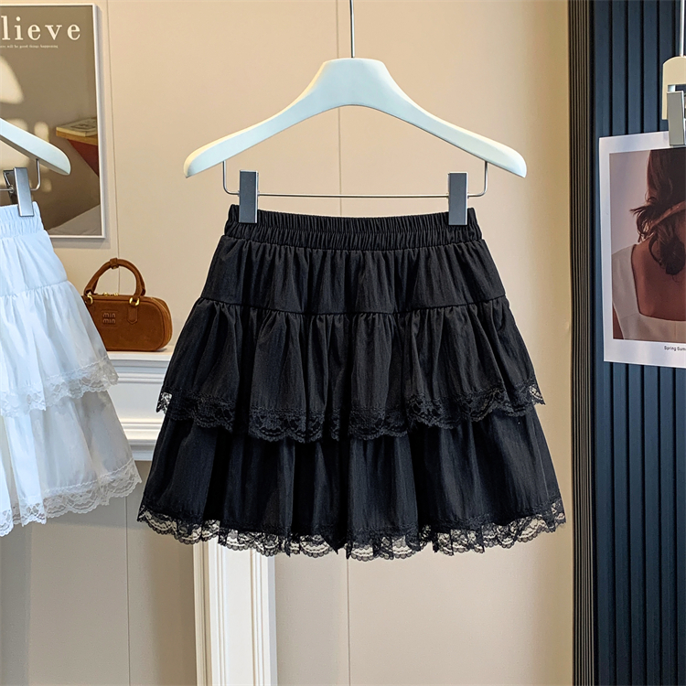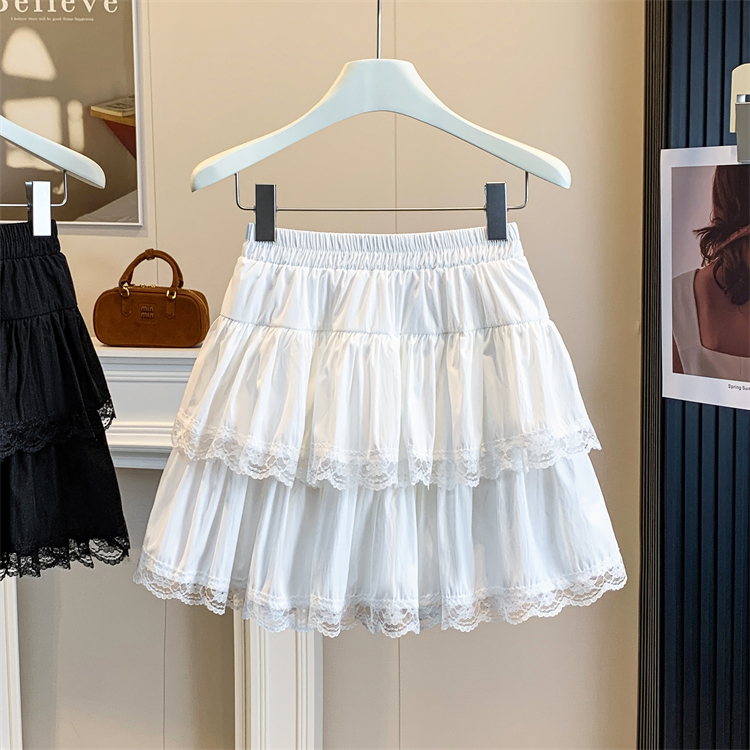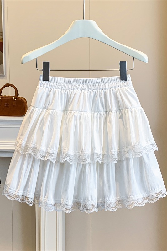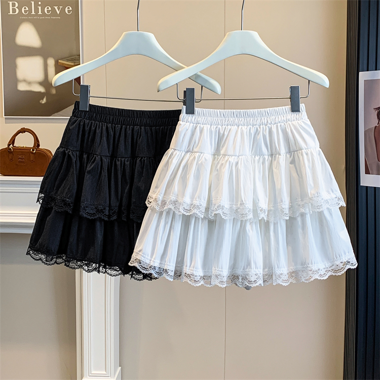 실사 지방 mm 빅 사이즈 레이스 레이스 반신 스커트 케이크 드레스 여성 하이웨이스트 노출 방지 프릴 치마 미니 스커트