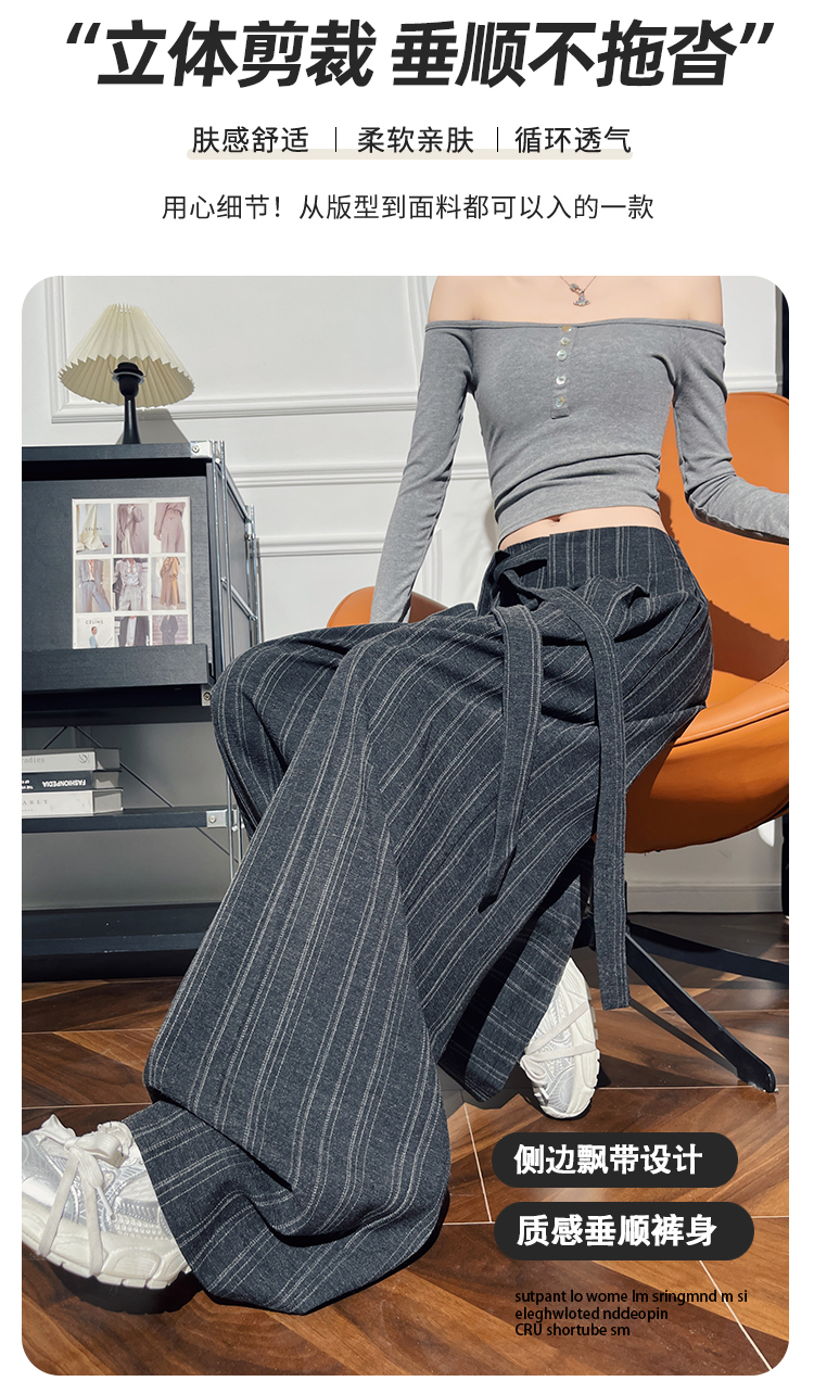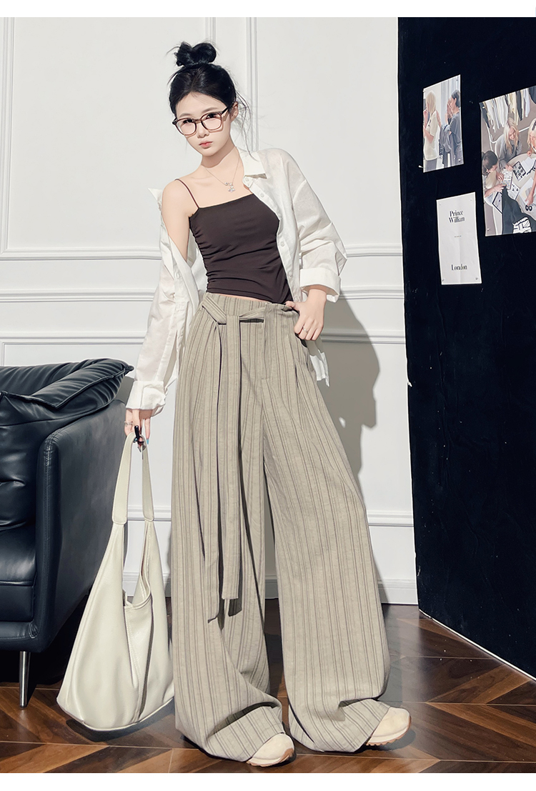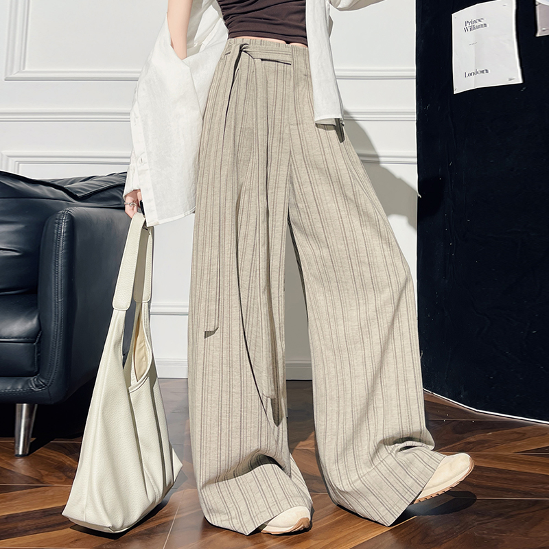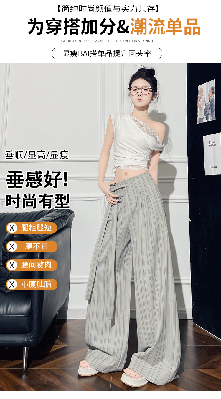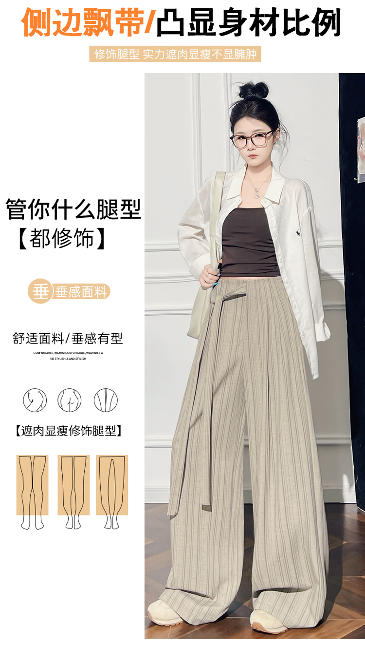 한 부서 레트로 스트라이프 와이드 레깅스 바지 2026 여름 새로운 디자인 센스 스트랩 다용도 오래된 돈 바람 정장 바지