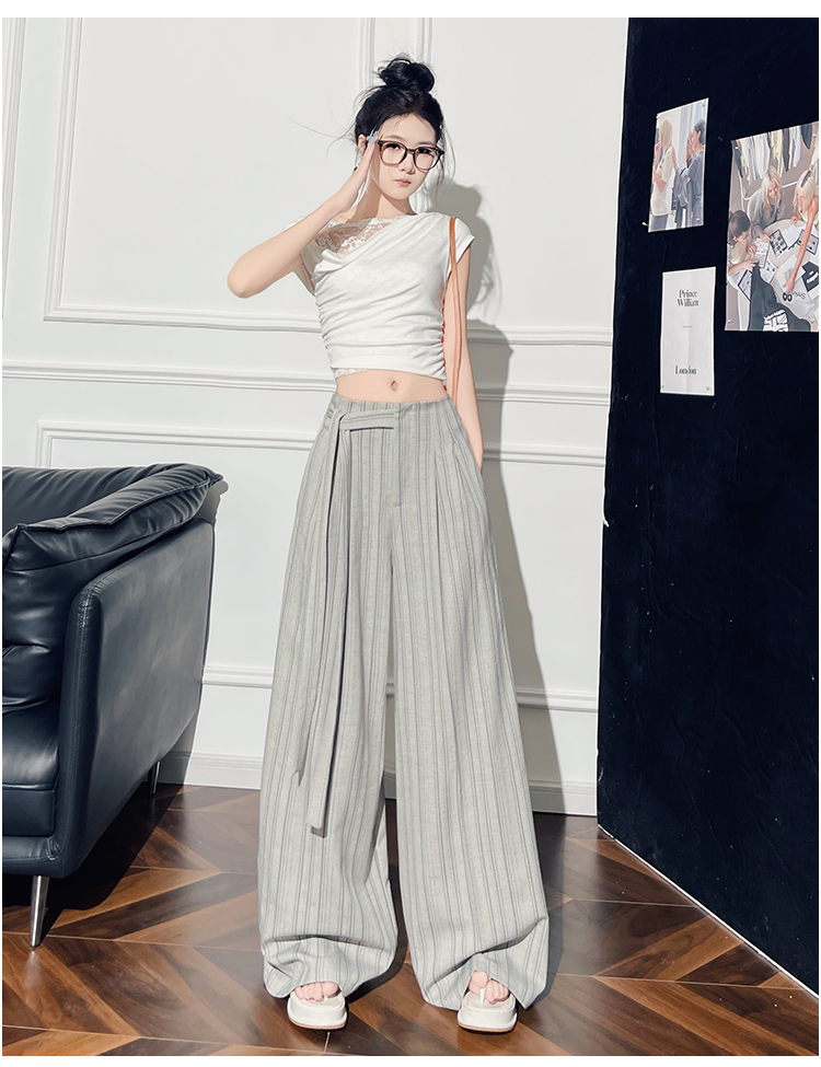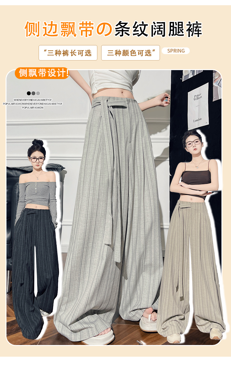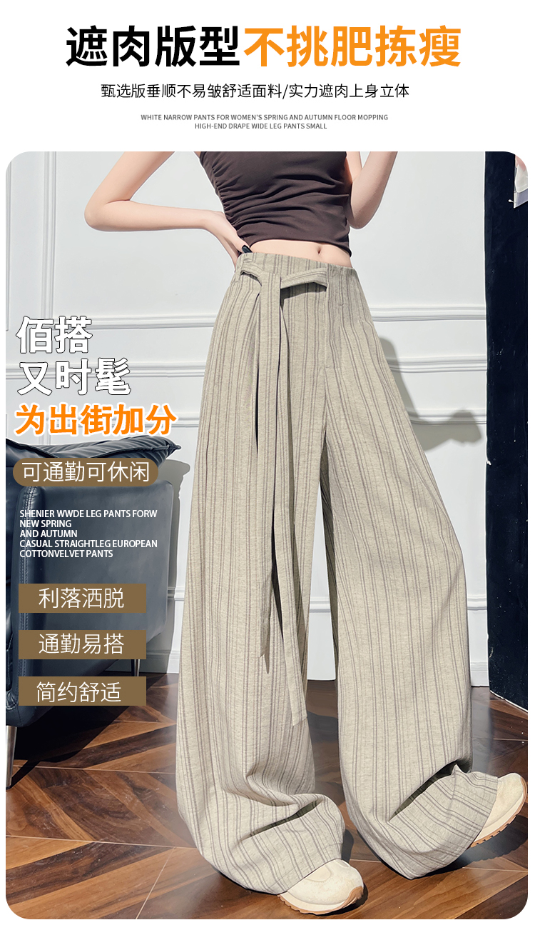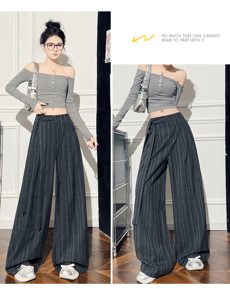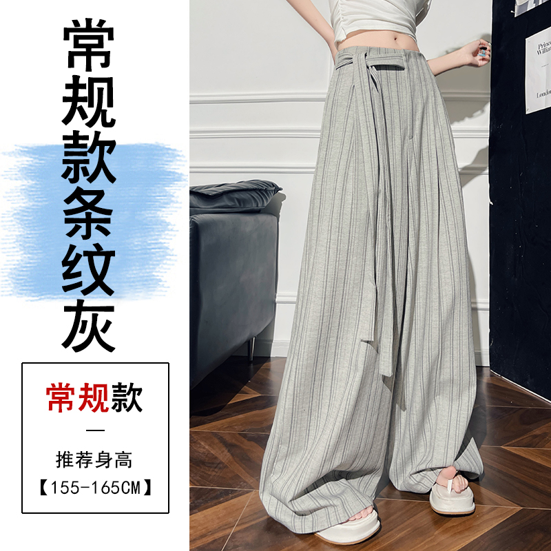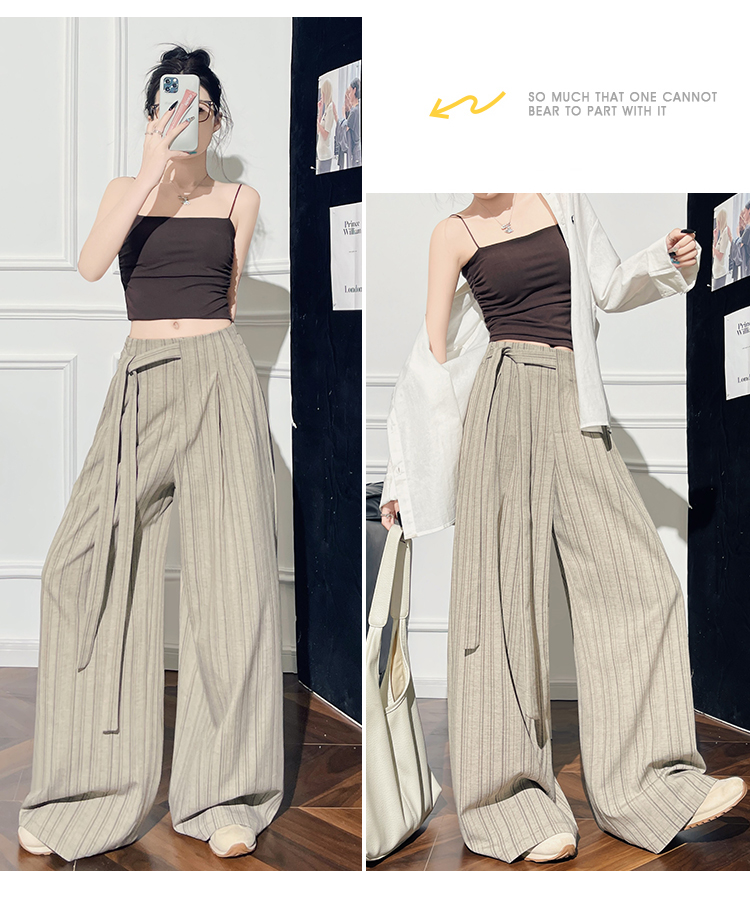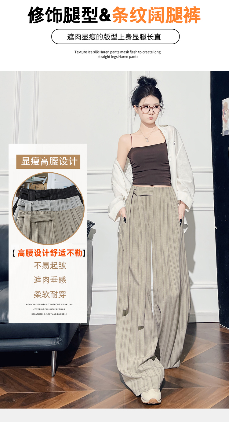 한 부서 레트로 스트라이프 와이드 레깅스 바지 2026 여름 새로운 디자인 센스 스트랩 다용도 오래된 돈 바람 정장 바지