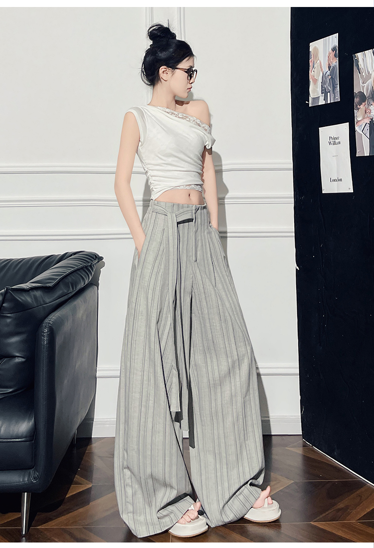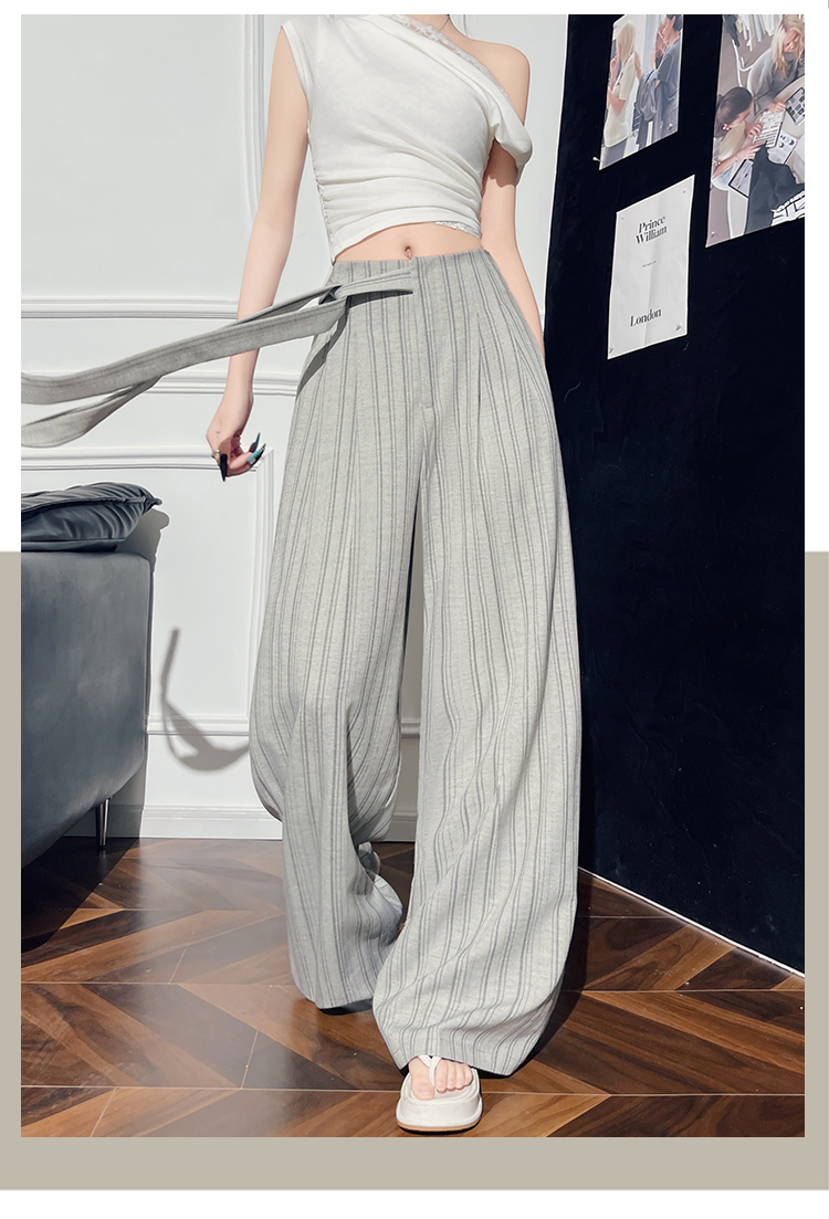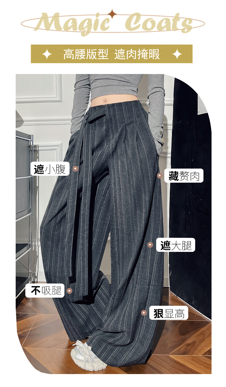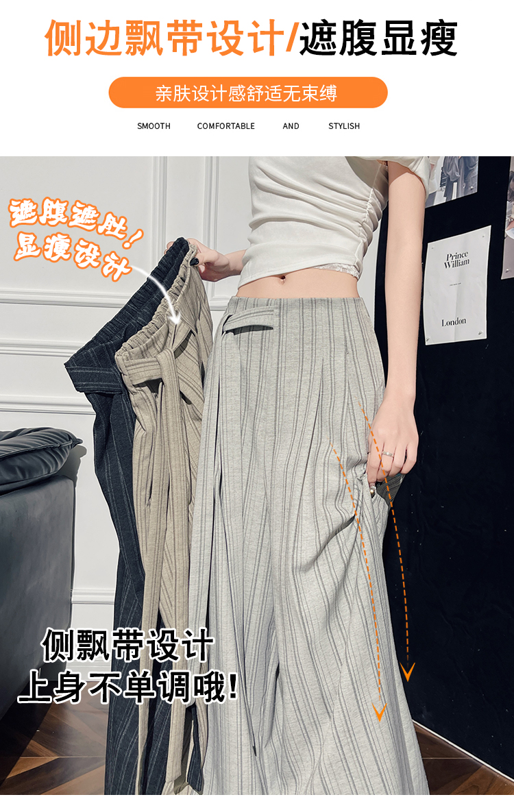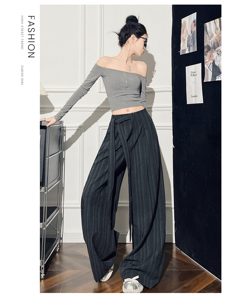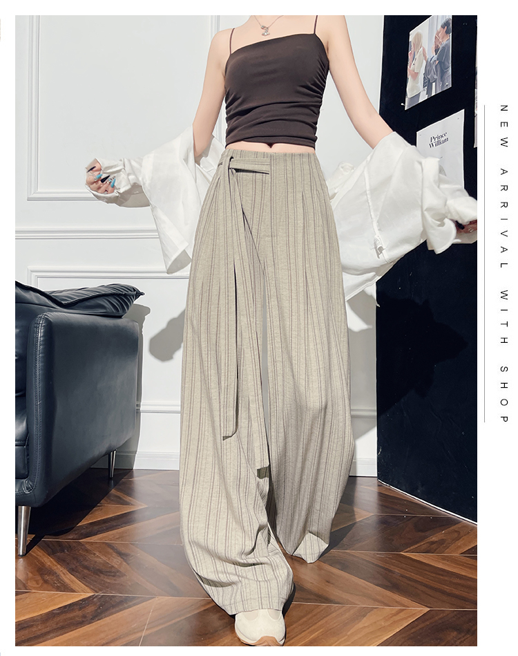 한 부서 레트로 스트라이프 와이드 레깅스 바지 2026 여름 새로운 디자인 센스 스트랩 다용도 오래된 돈 바람 정장 바지