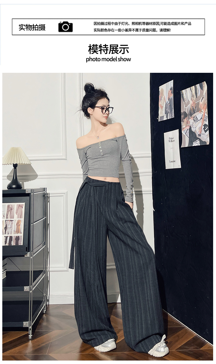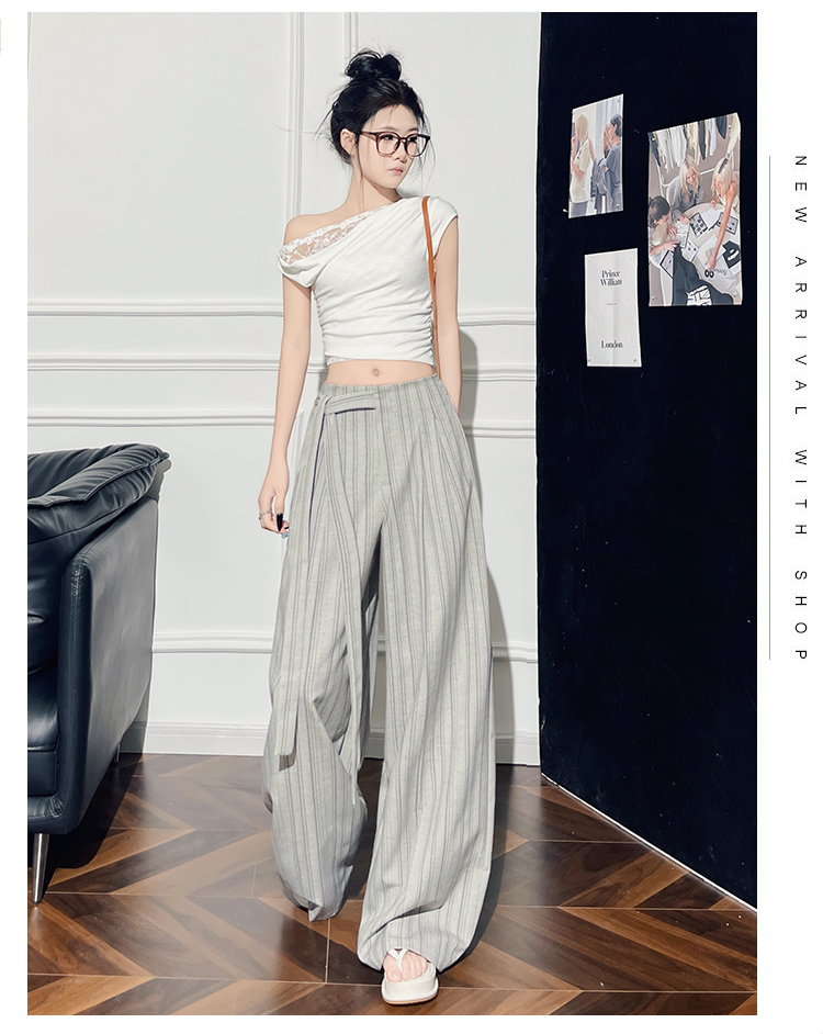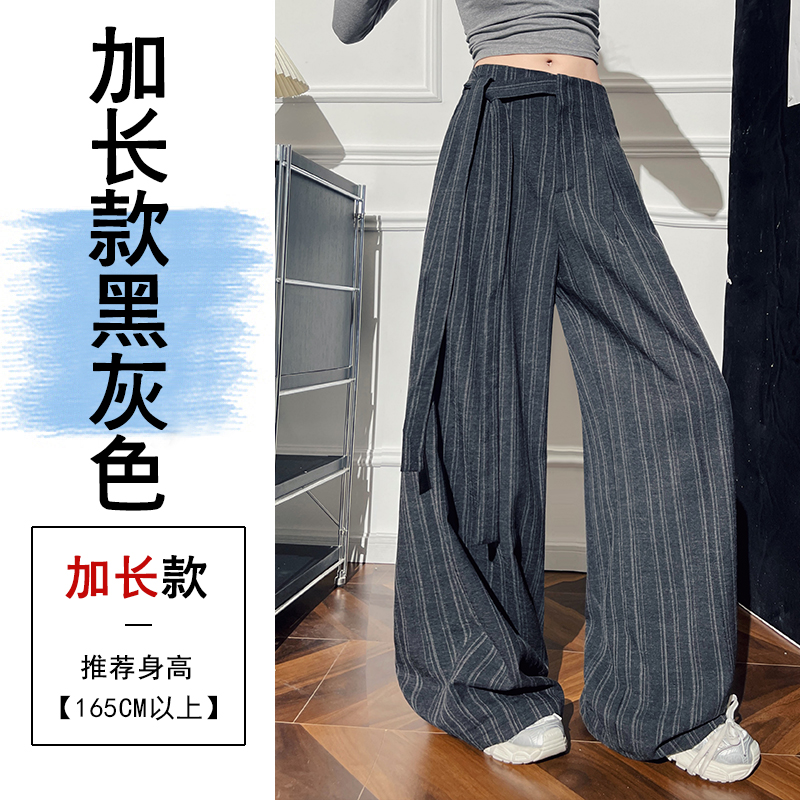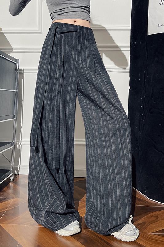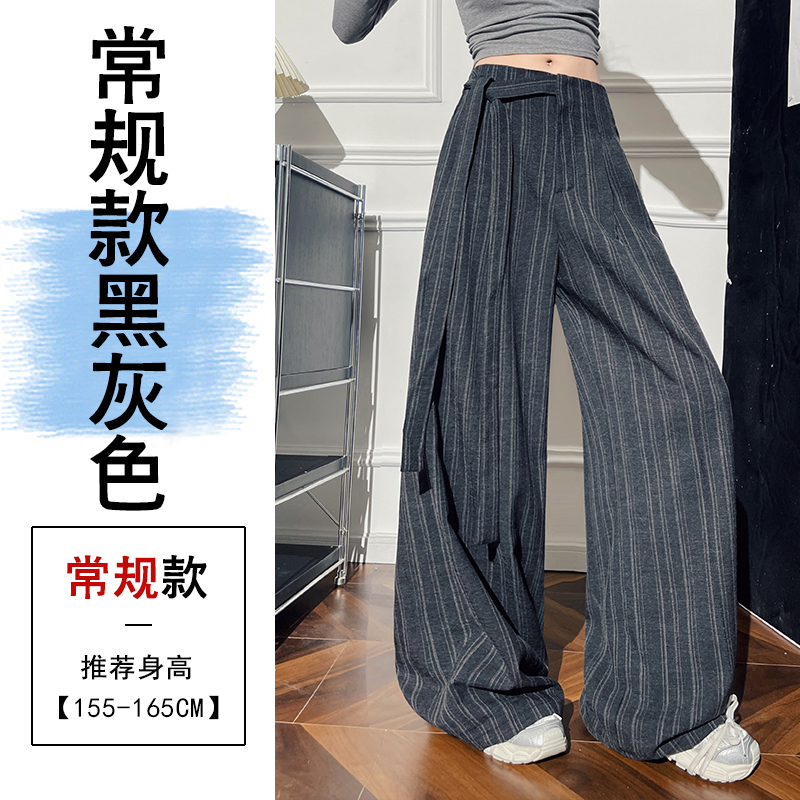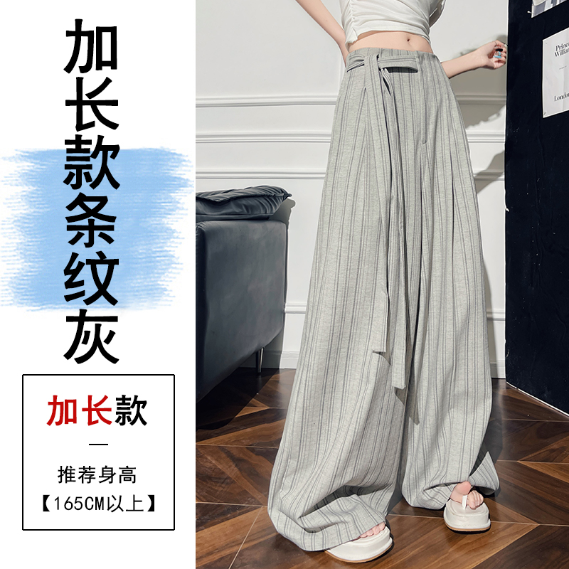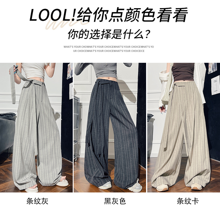 한 부서 레트로 스트라이프 와이드 레깅스 바지 2026 여름 새로운 디자인 센스 스트랩 다용도 오래된 돈 바람 정장 바지