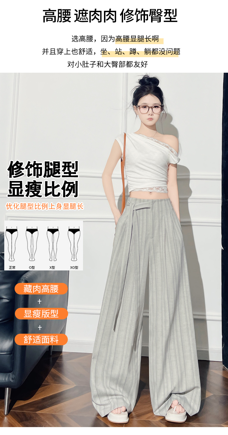 고급 센스 정장 바지 여성 여름 2026 얇은 스타일 하이웨이스트 슬림해 보이는 루즈핏 캐주얼 스트레이트 도루 센스 바닥 청소 와이드 레그 팬츠