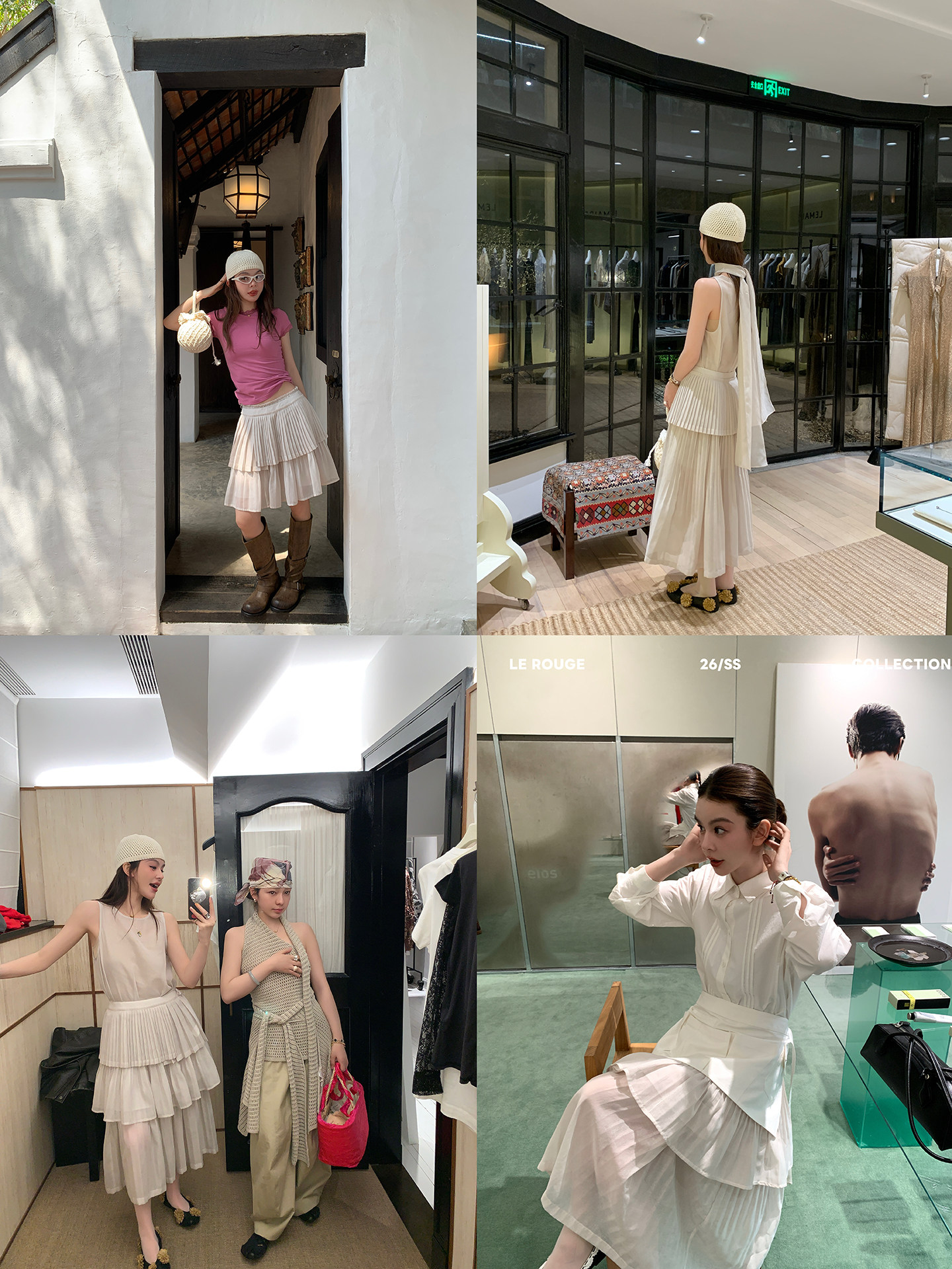 세븐 작은 세븐 sicily 연기 웅장 함 프랑스식 가스 질감 빛 럭셔리 허리 수축 슬림해 보이는 장미 디자인 센스 롱 스커트