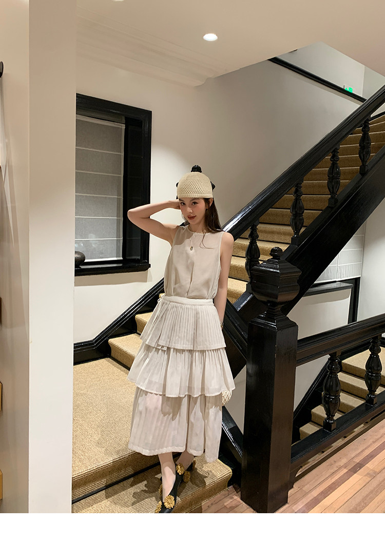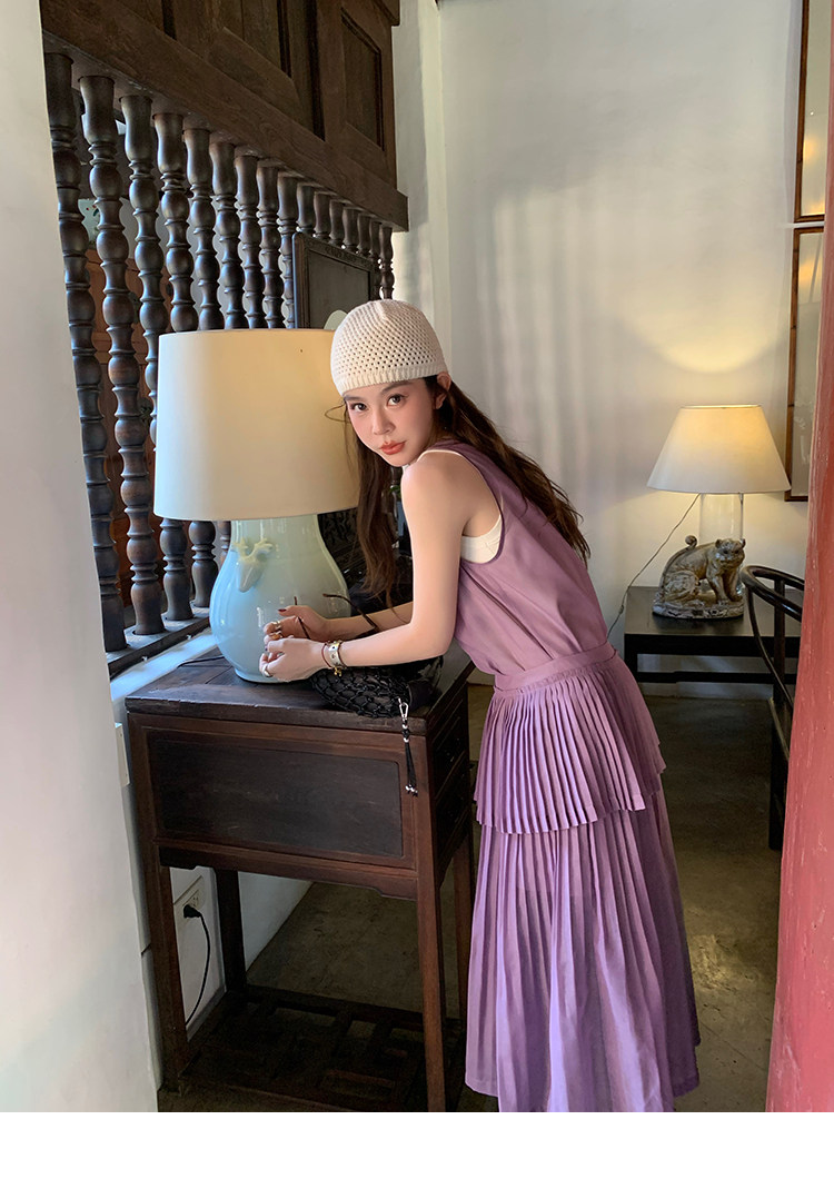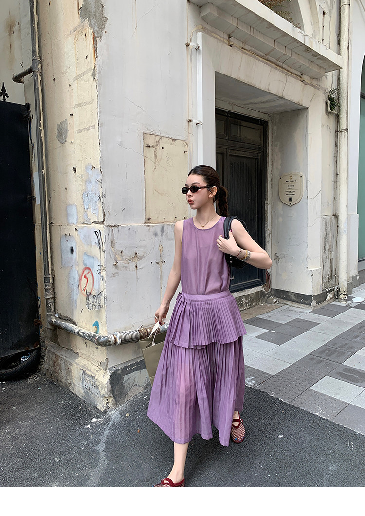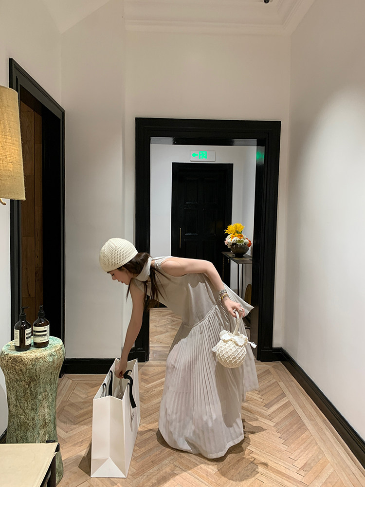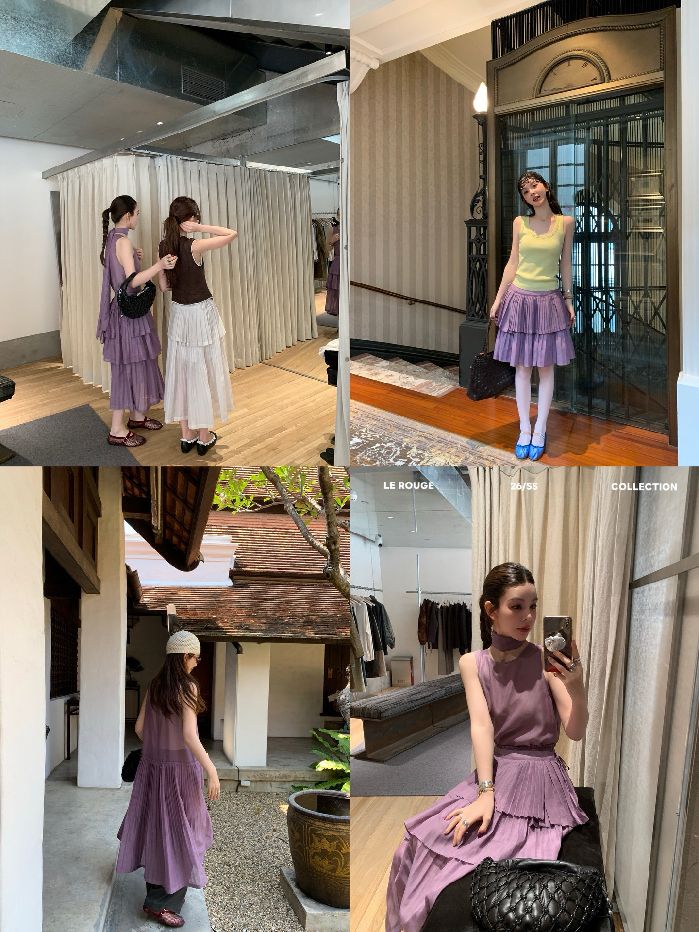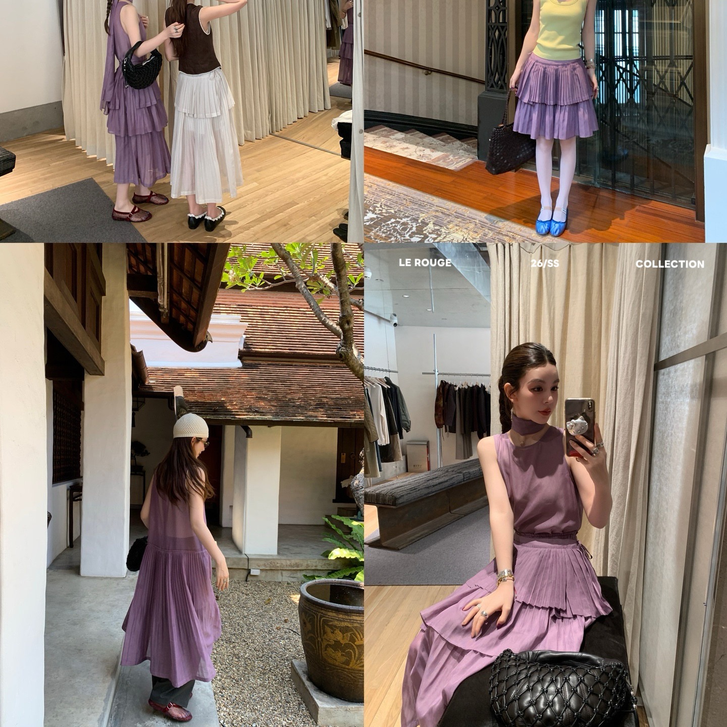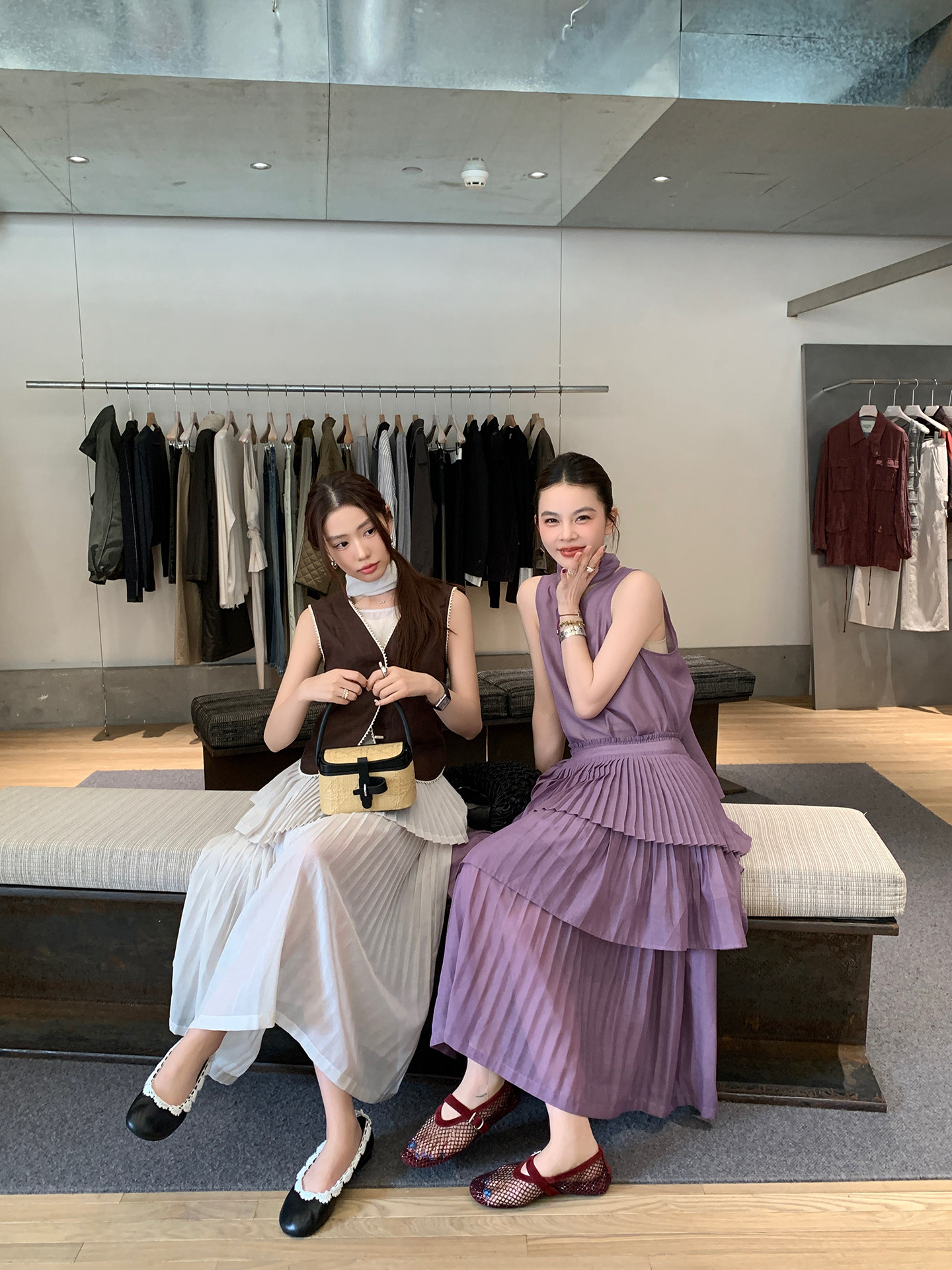 le rouge 주 아름다움 27 번호 늦게 8시 신제품 민소매 드레스 플리츠 반 스커트 앞치마 스카프