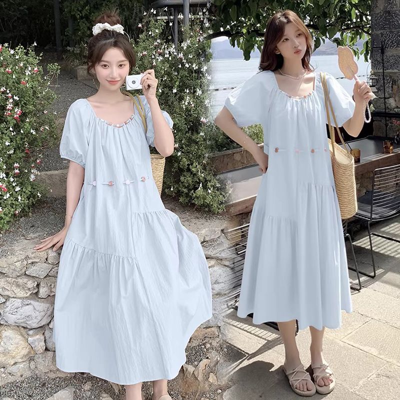 새로운 해군 칼라 출산 착용 2026 여름 새로운 루즈핏 롱 코트 임산부 치마 드레스