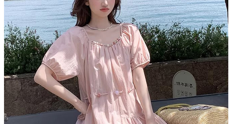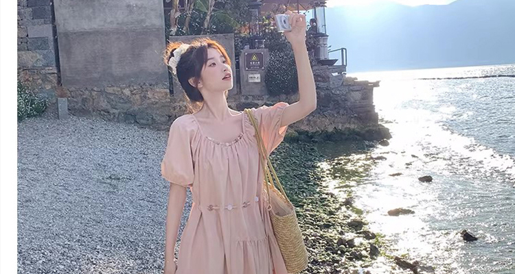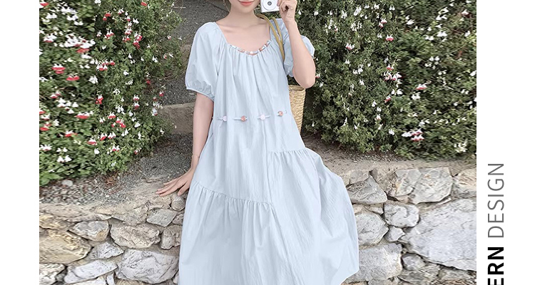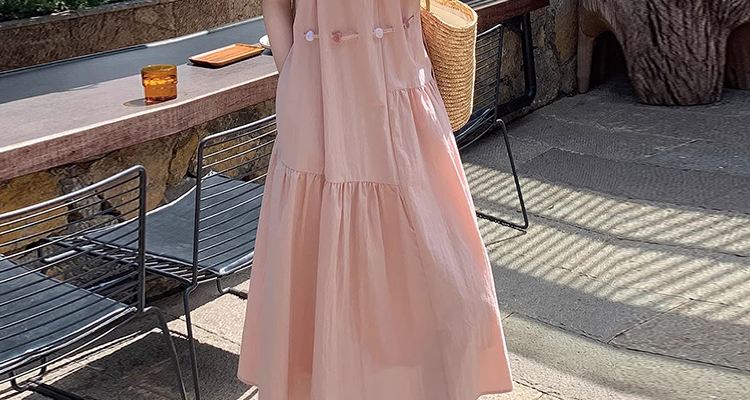 출산 착용 드레스 2026 여름 새로운 민소매 꽃무늬 행침 목 드레스