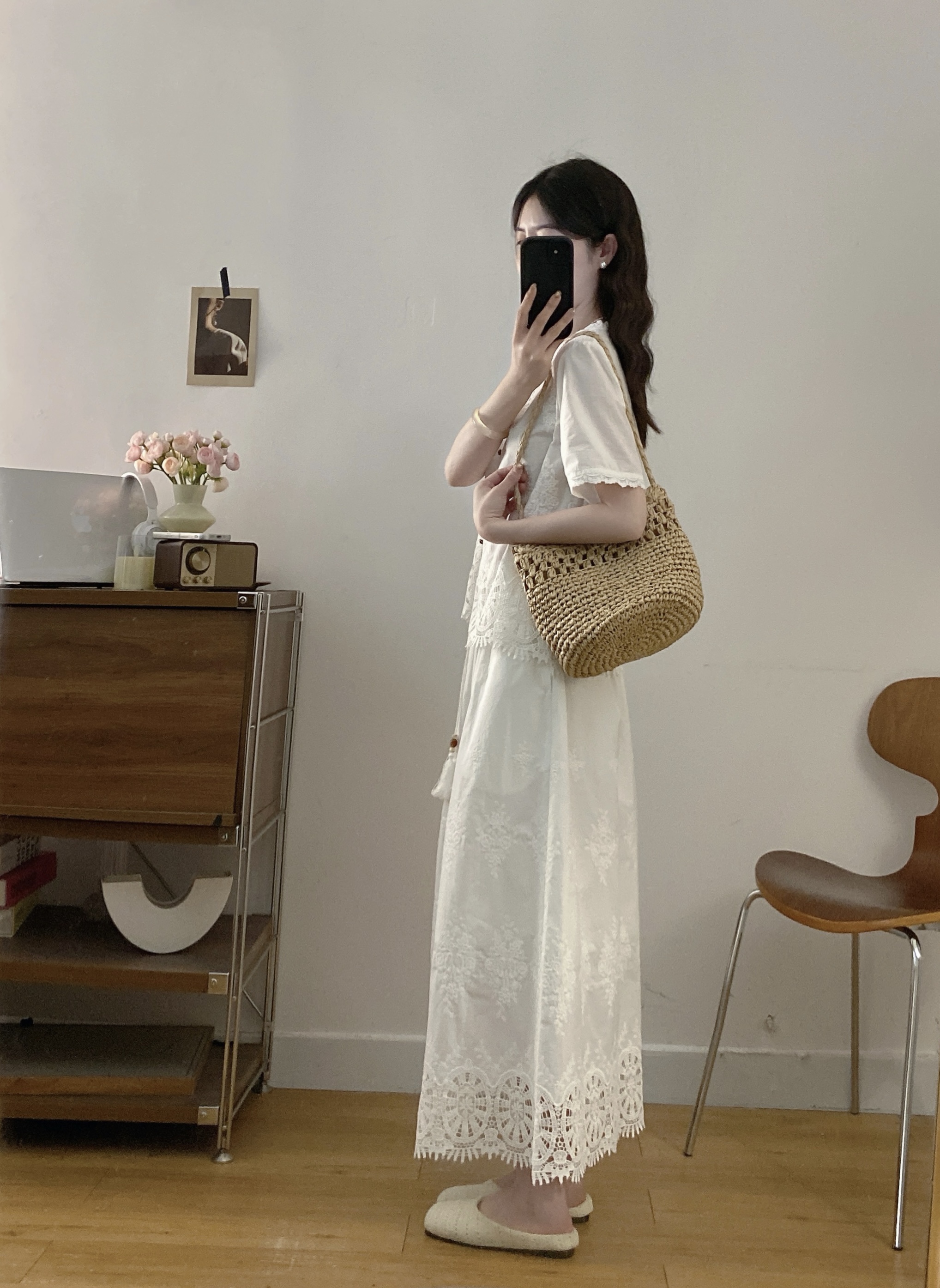 실사 빅 사이즈 여성 의류 2026 여름 새로운 휴가 프랑스식 허리 수축 품격 롱 스커트 화이트 슬립 드레스