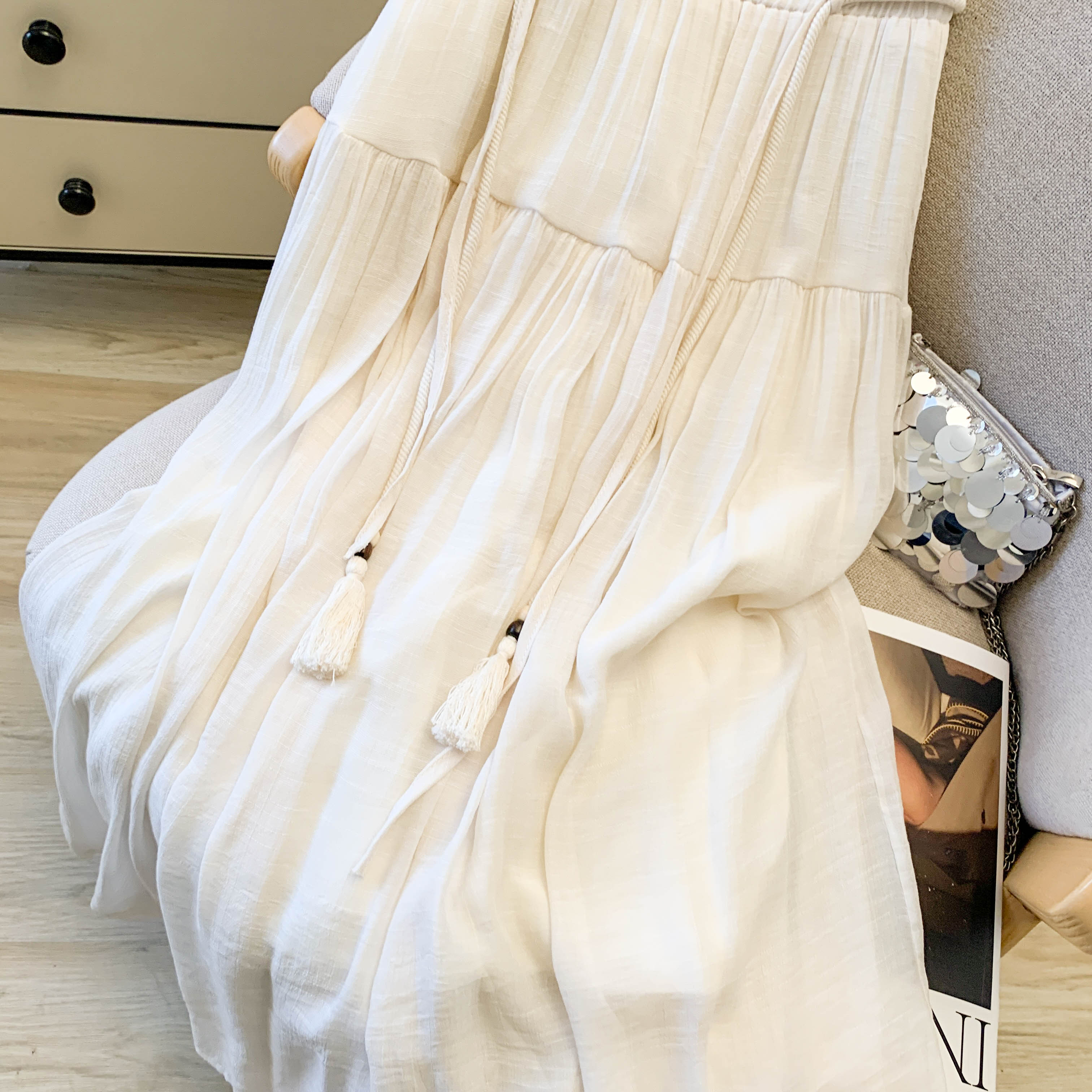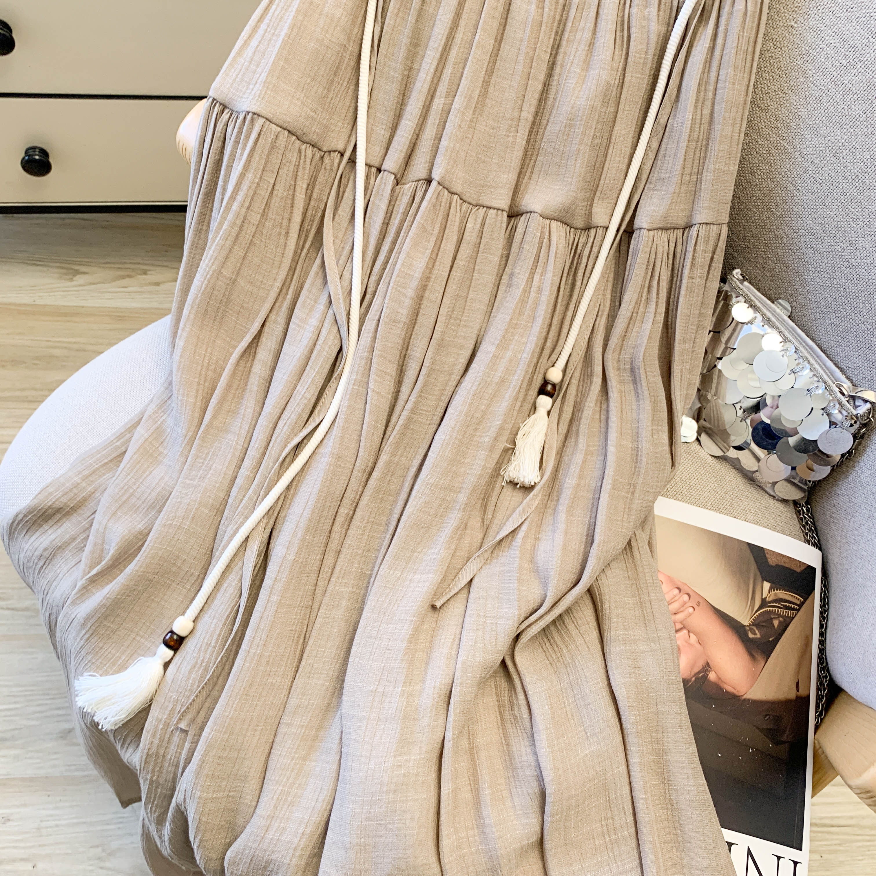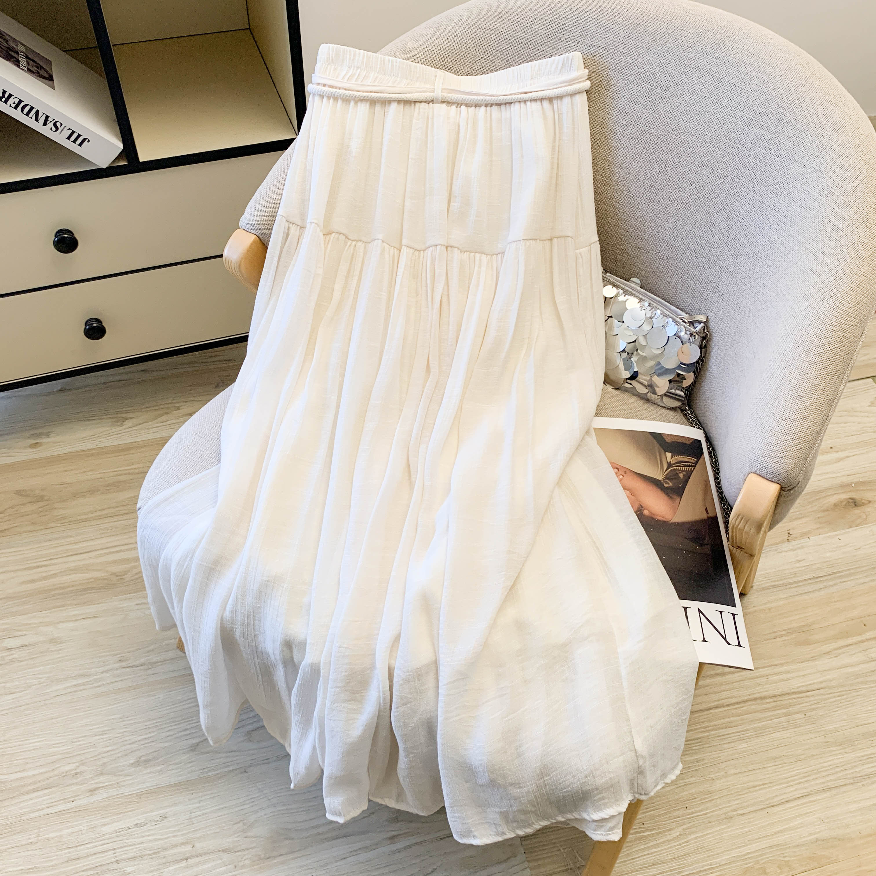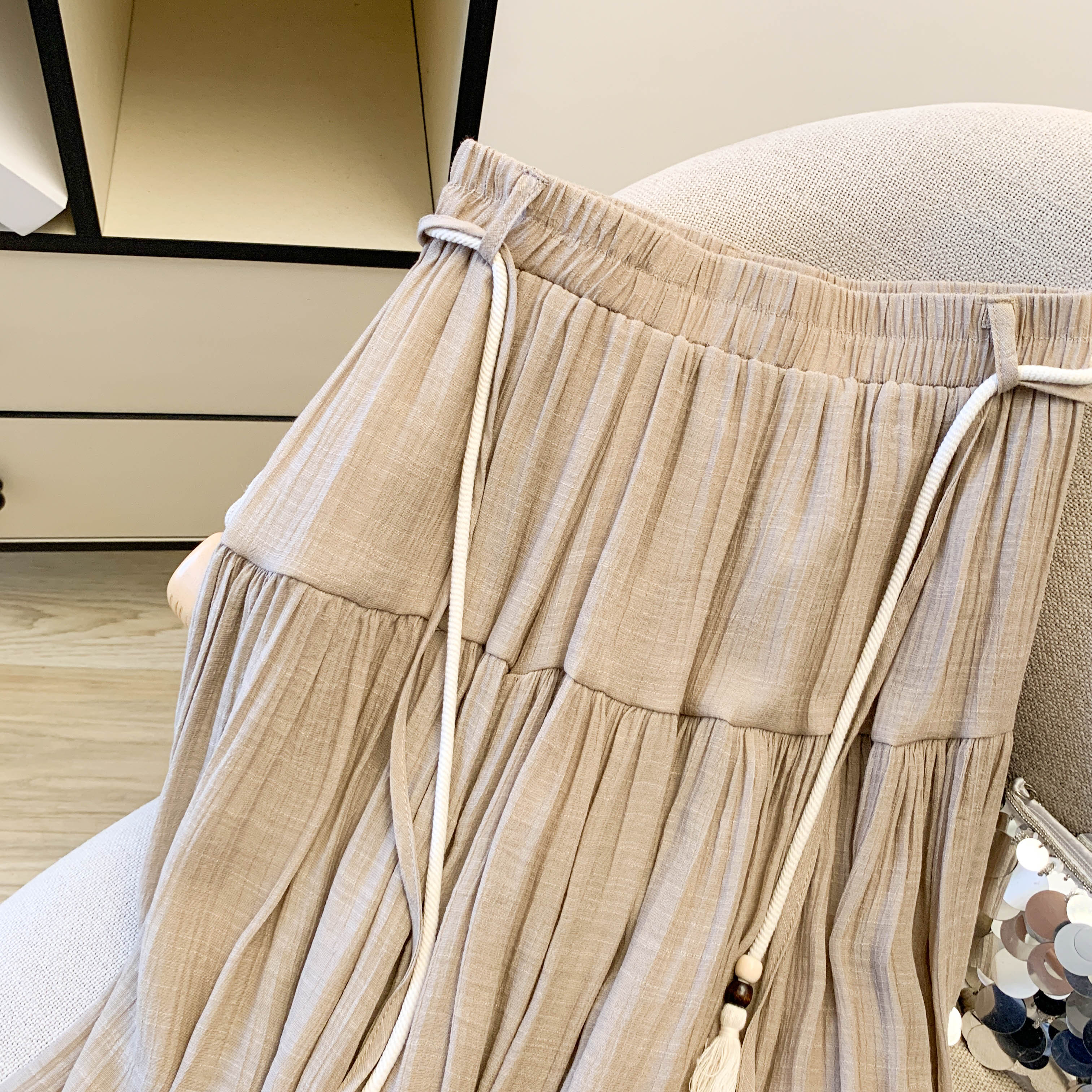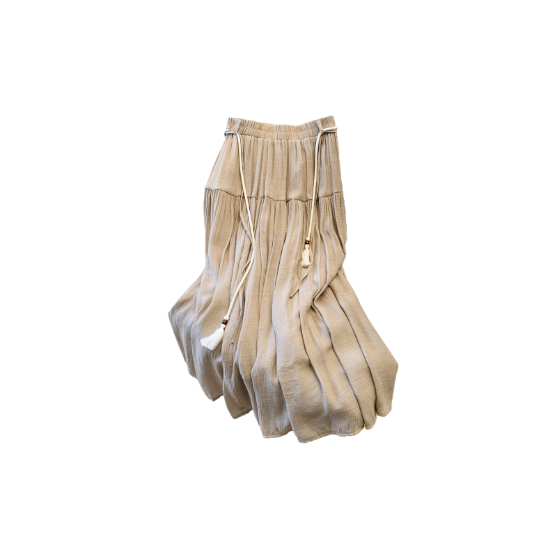 실사 문예 술 레이스업 면 린넨 반신 스커트 중식 국풍 레트로 표지 넓적 다리 품격 도루 센스 한 마디 빅 플레어 스커트
