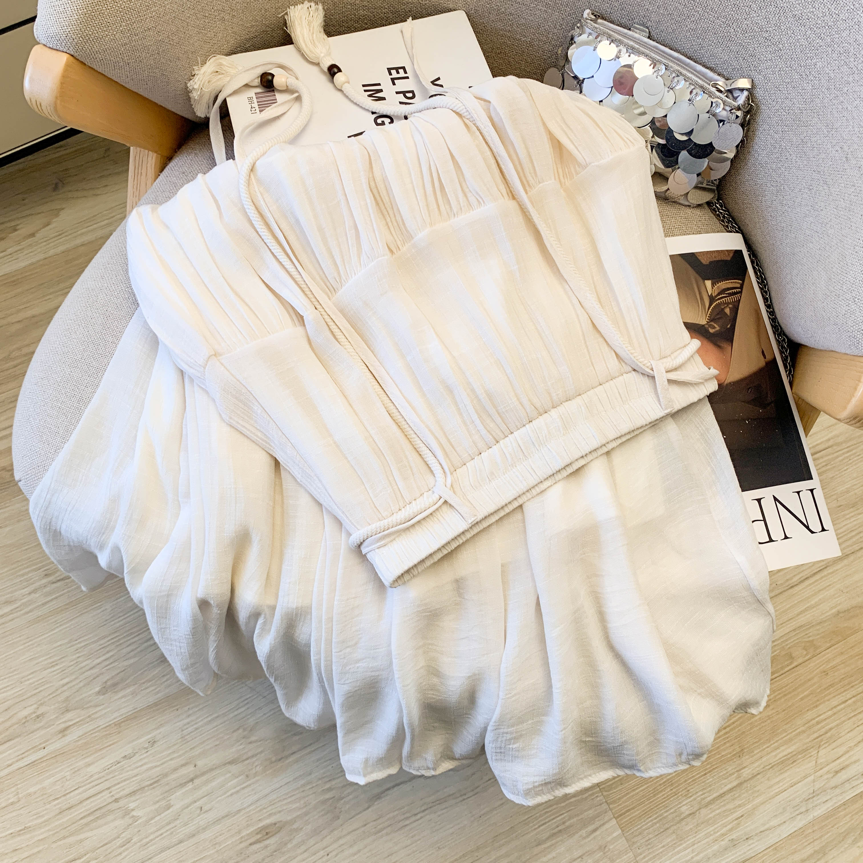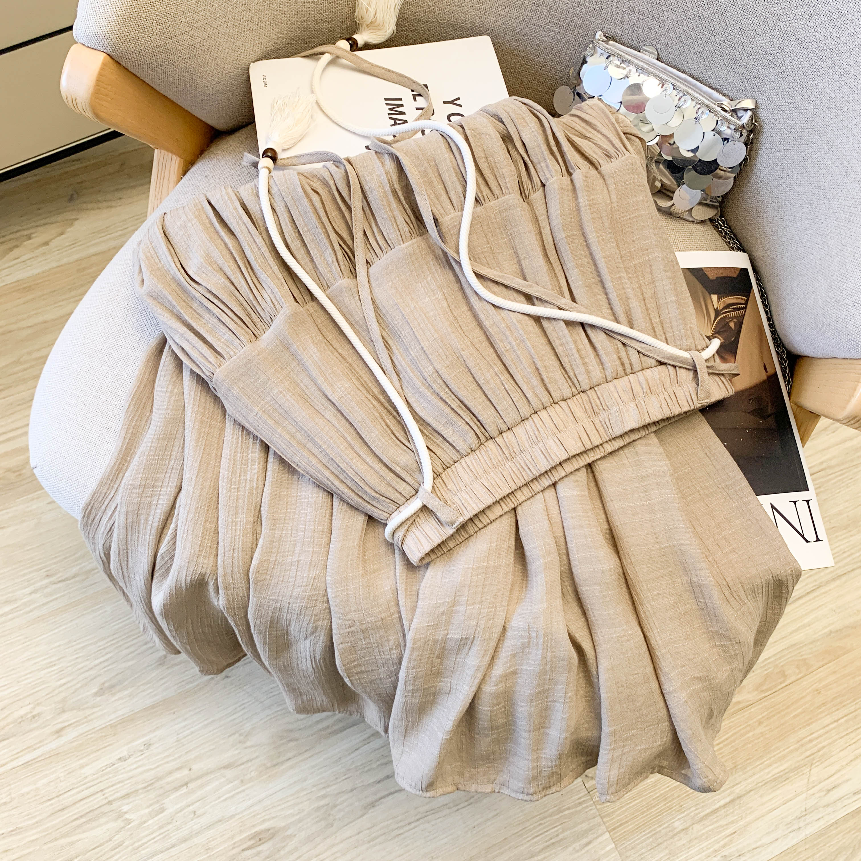 실사 2026 여름 새로운 패션 사실 투피스 세트 둘 착용 방귀 커튼 캐주얼 바지 다용도 스트레이트 9 포인트 와이드 레그 팬츠