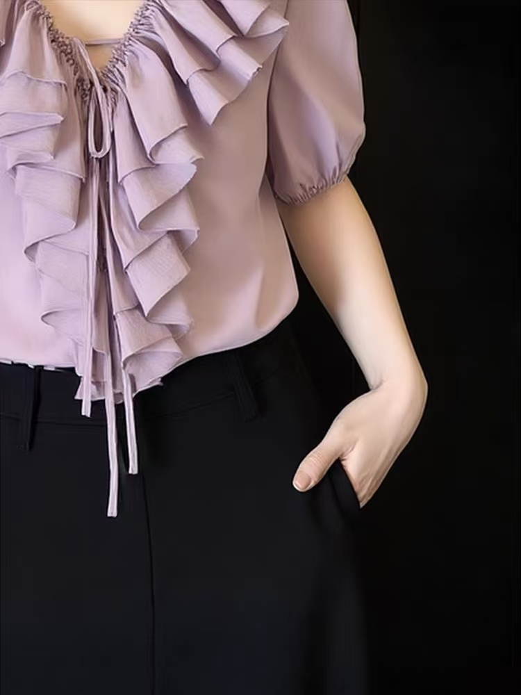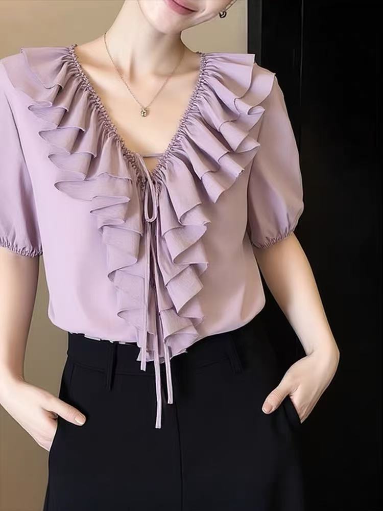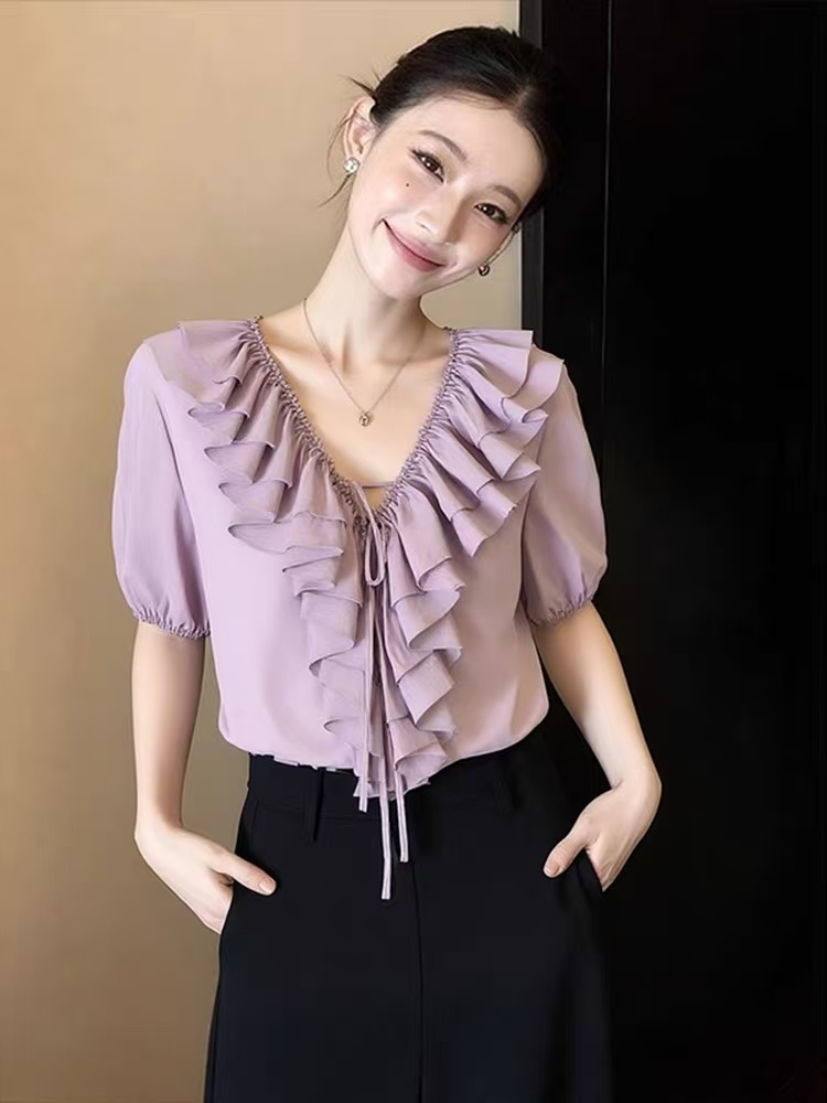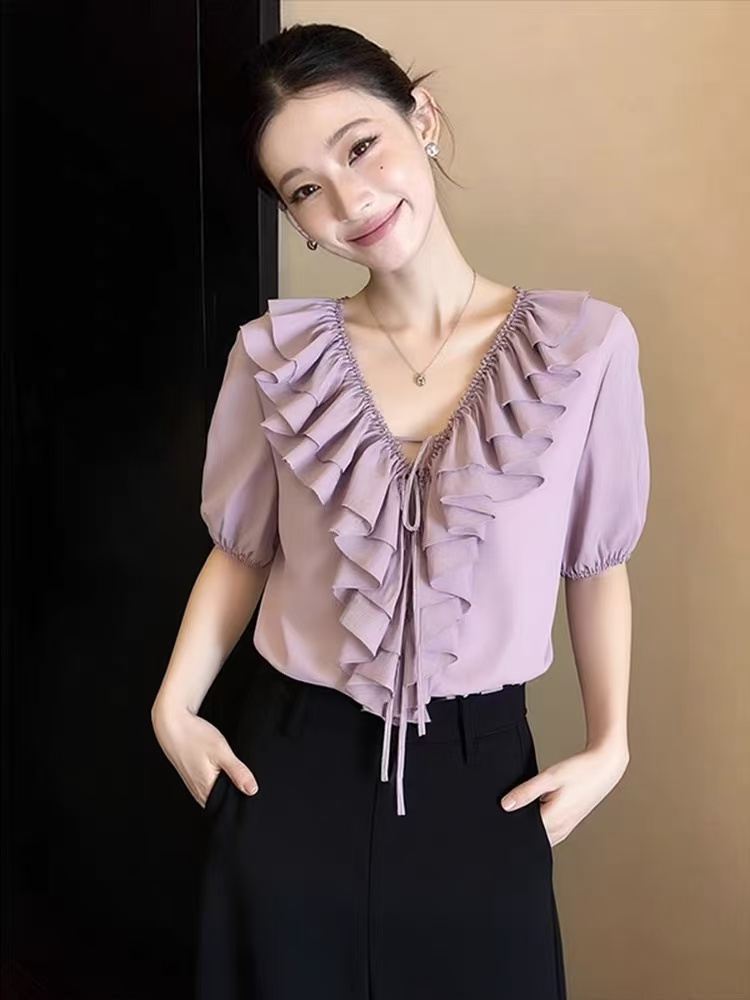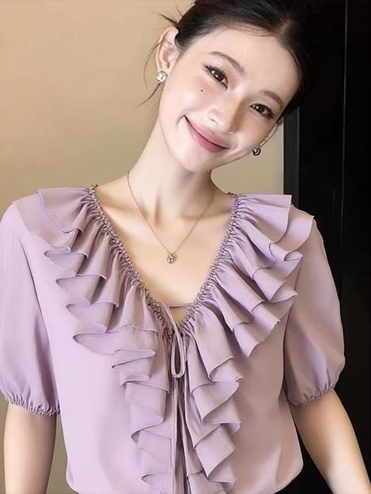 품격 부드러운 바람 프릴 여성 셔츠 여름 2026 년 새로운 패션 다용도 셔츠 아름다운 아름다운 작은 셔츠