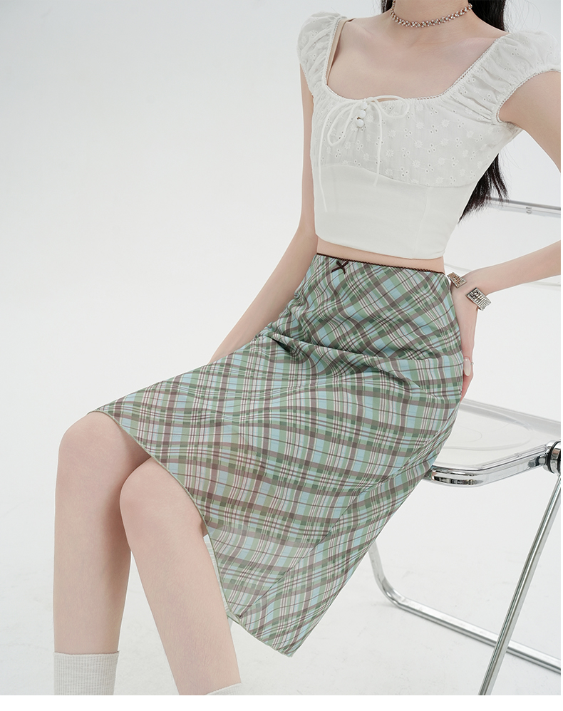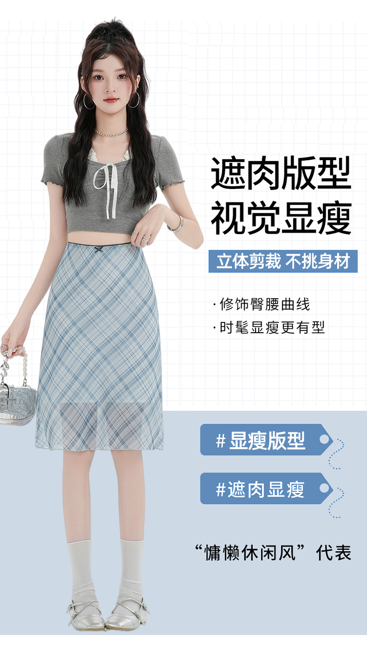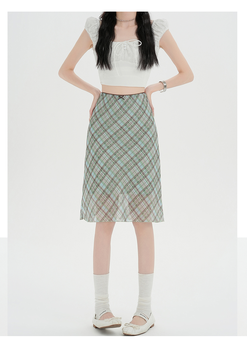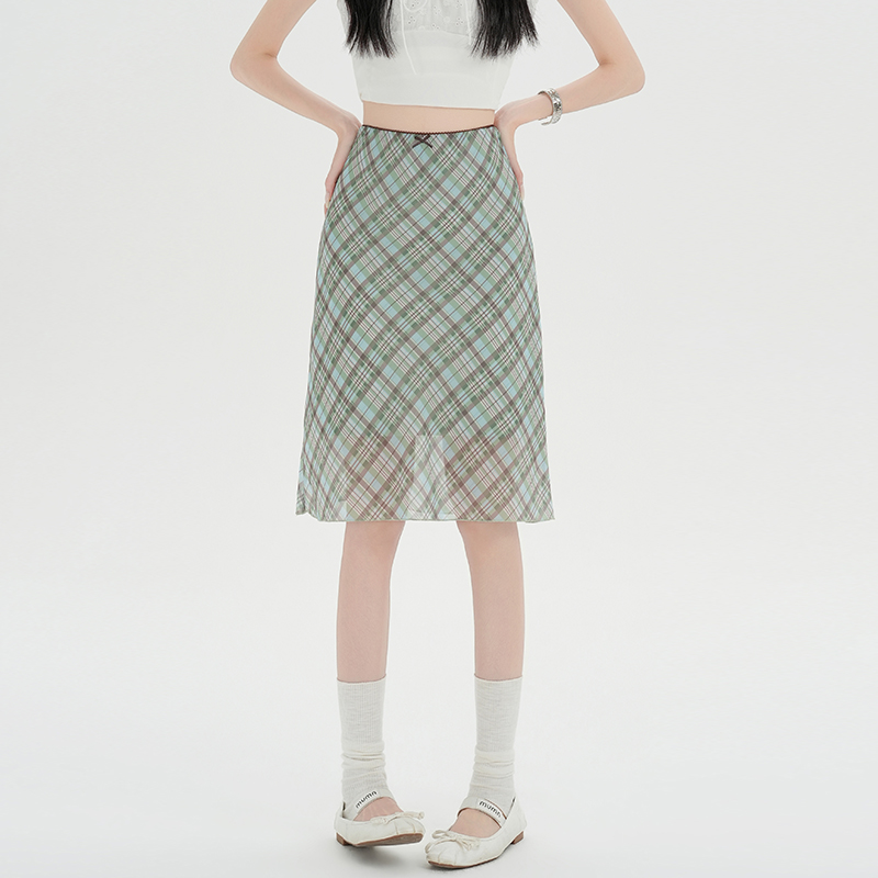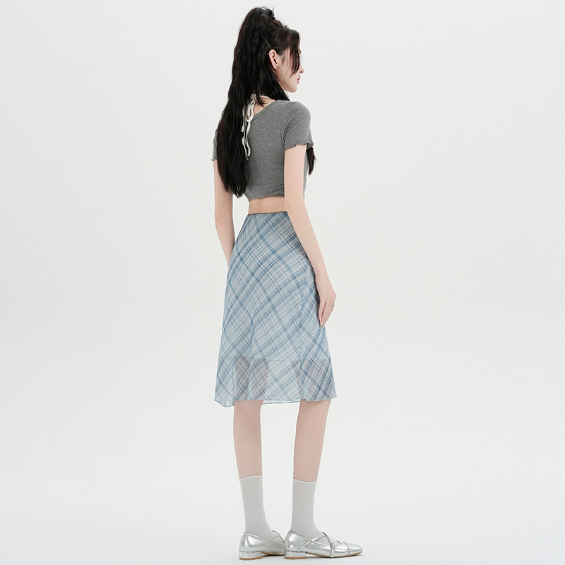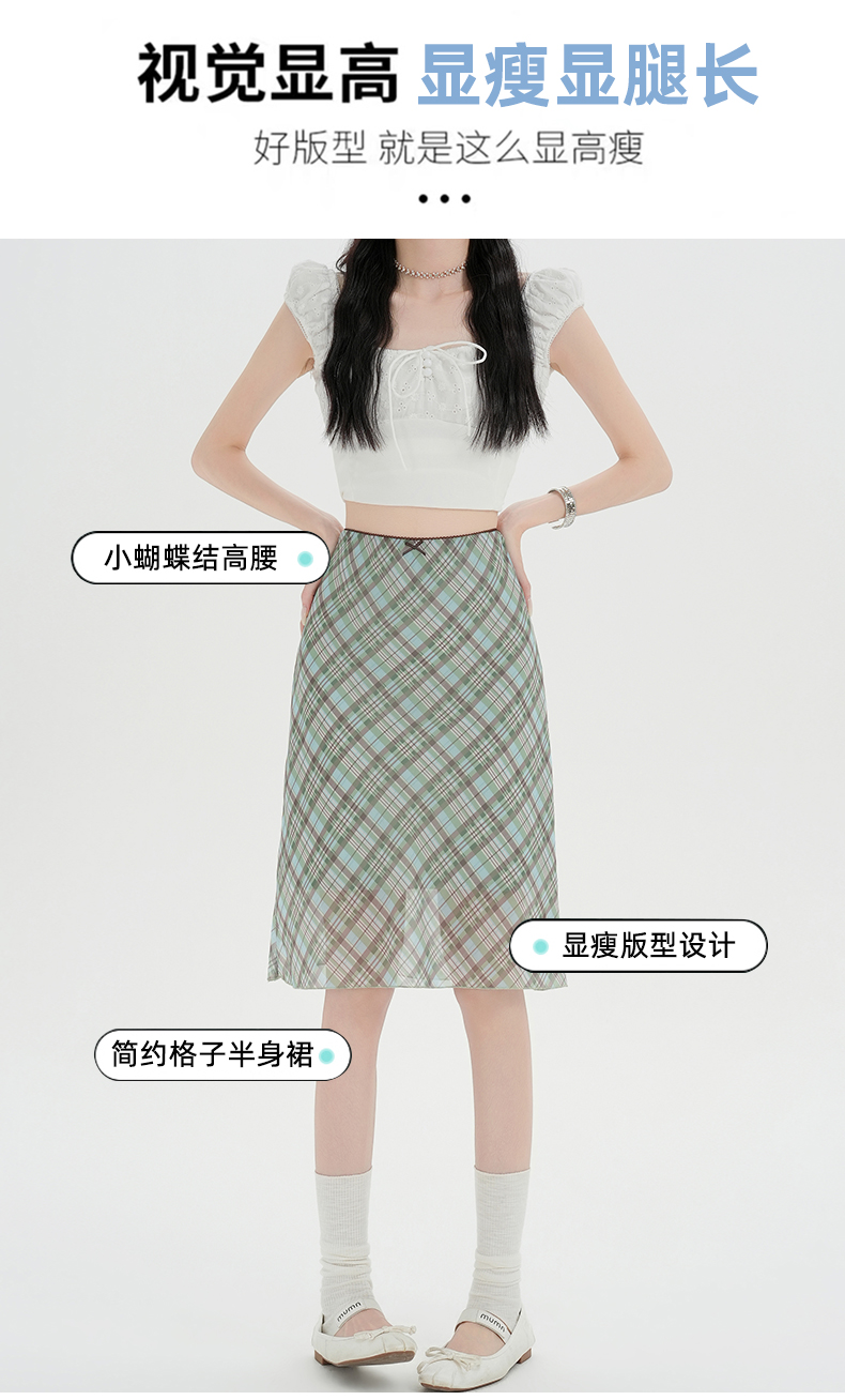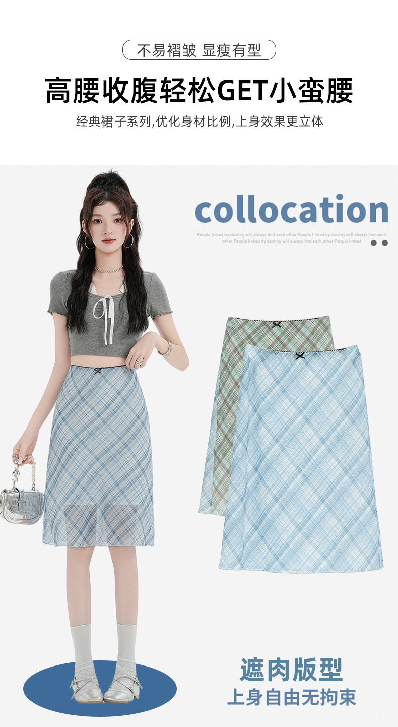 실사 여름 프랑스식 레트로 하이웨이스트 표지 십자가 다용도 배색 체크무늬 타이트 스커트 핫걸 슬림해 보이는 인어 꼬리 중간 스커트