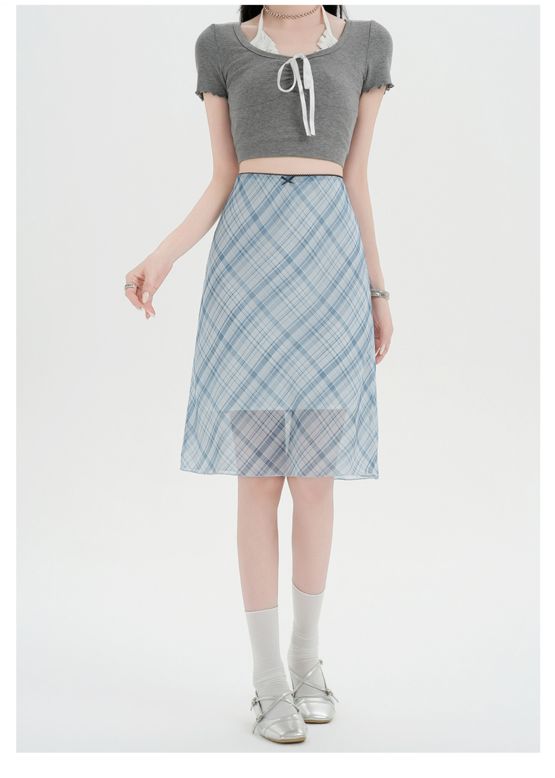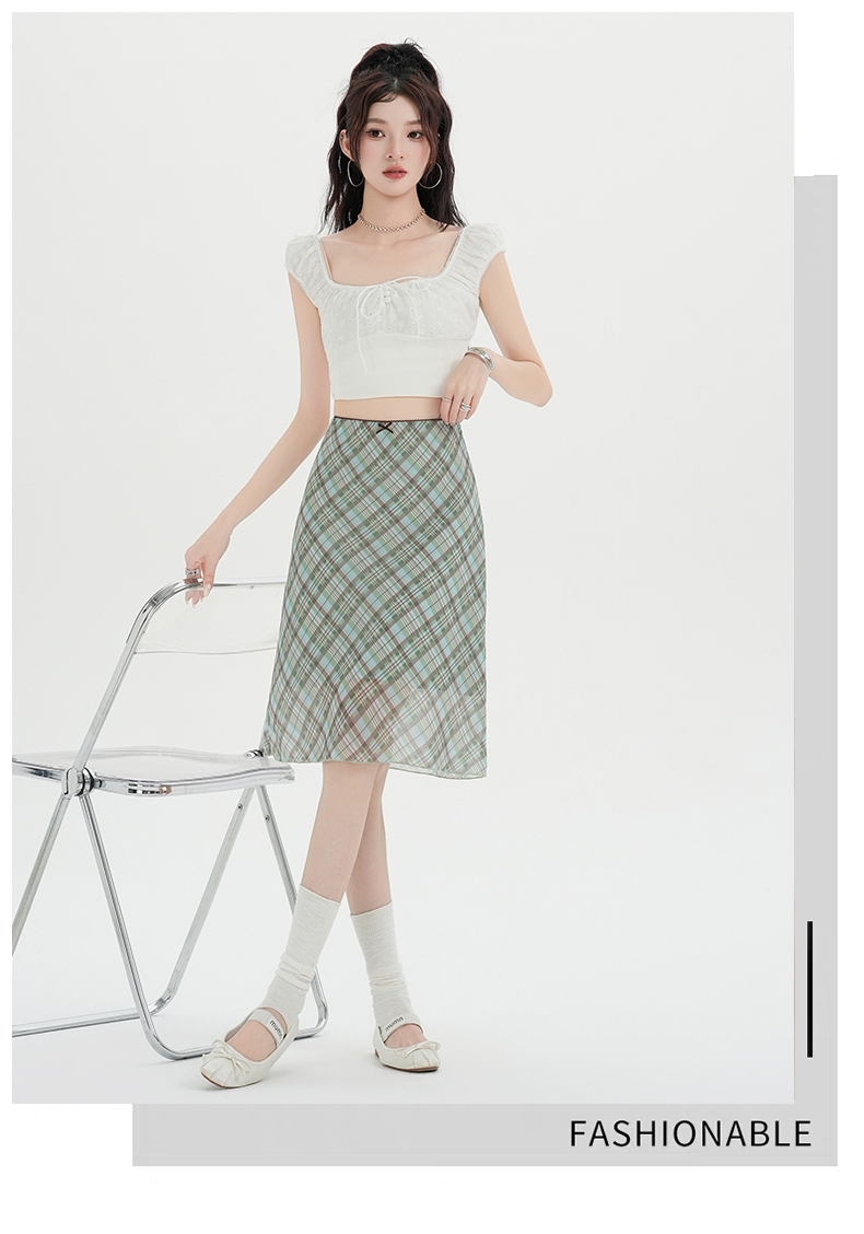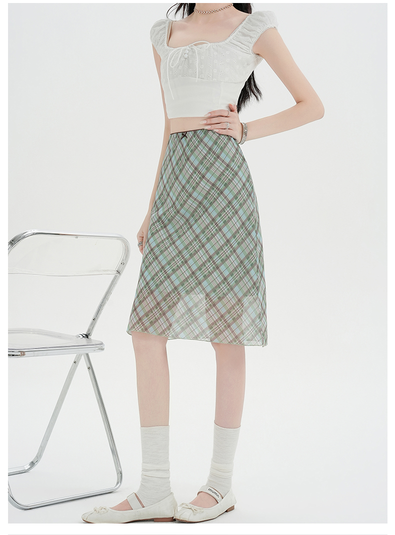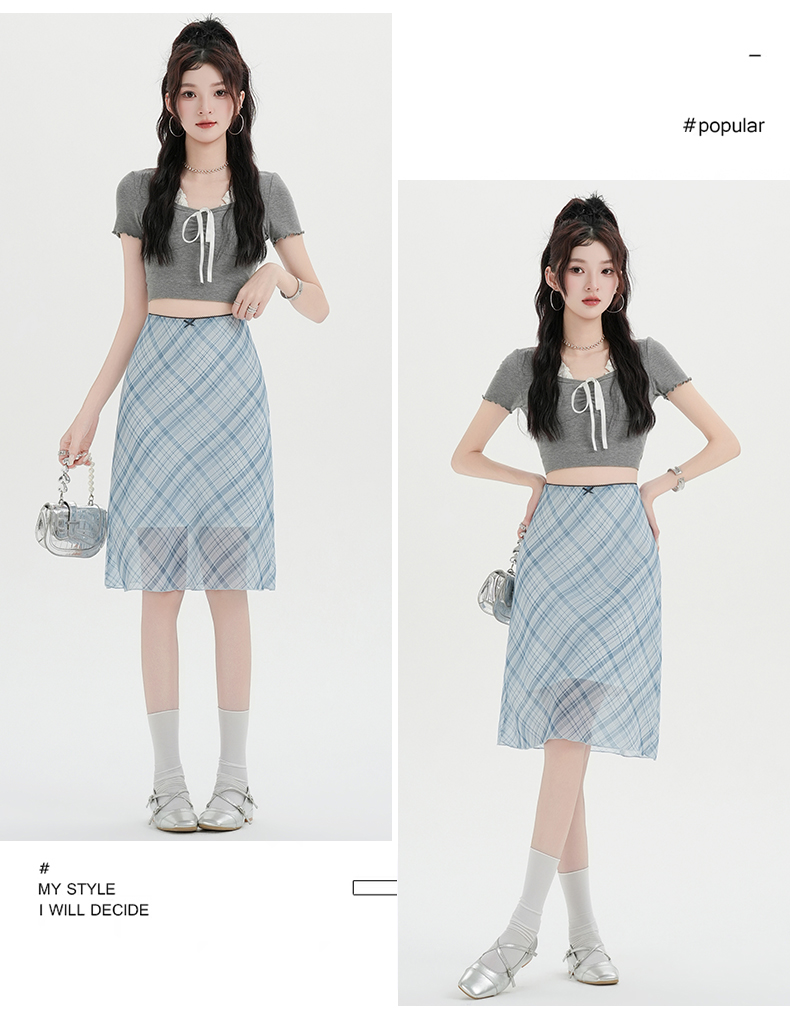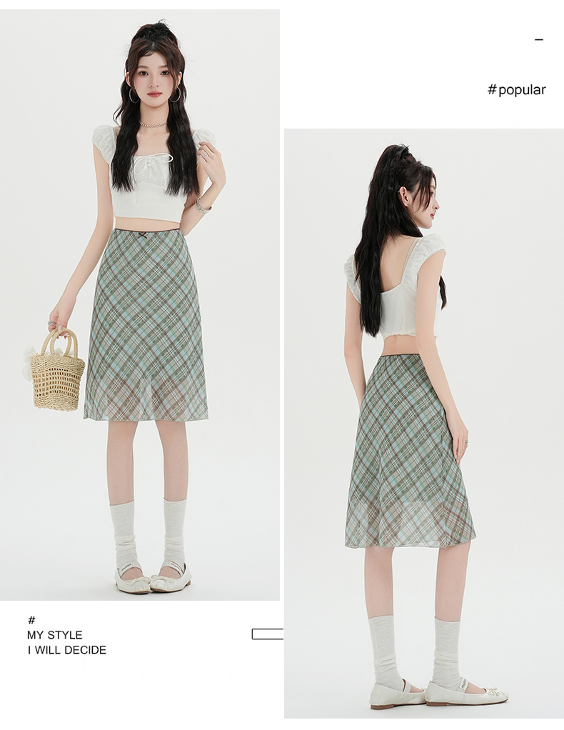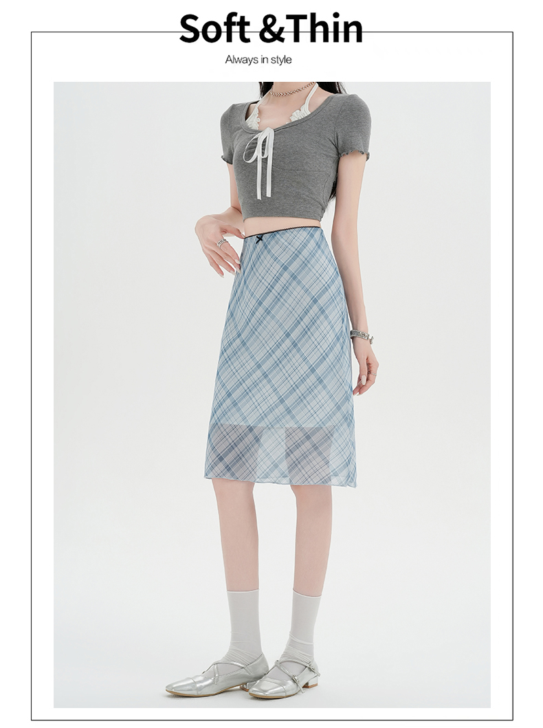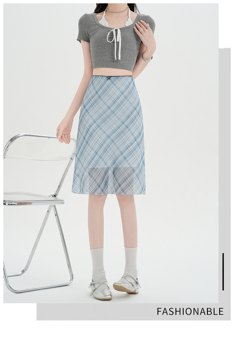 실사 여름 프랑스식 레트로 하이웨이스트 표지 십자가 다용도 배색 체크무늬 타이트 스커트 핫걸 슬림해 보이는 인어 꼬리 중간 스커트