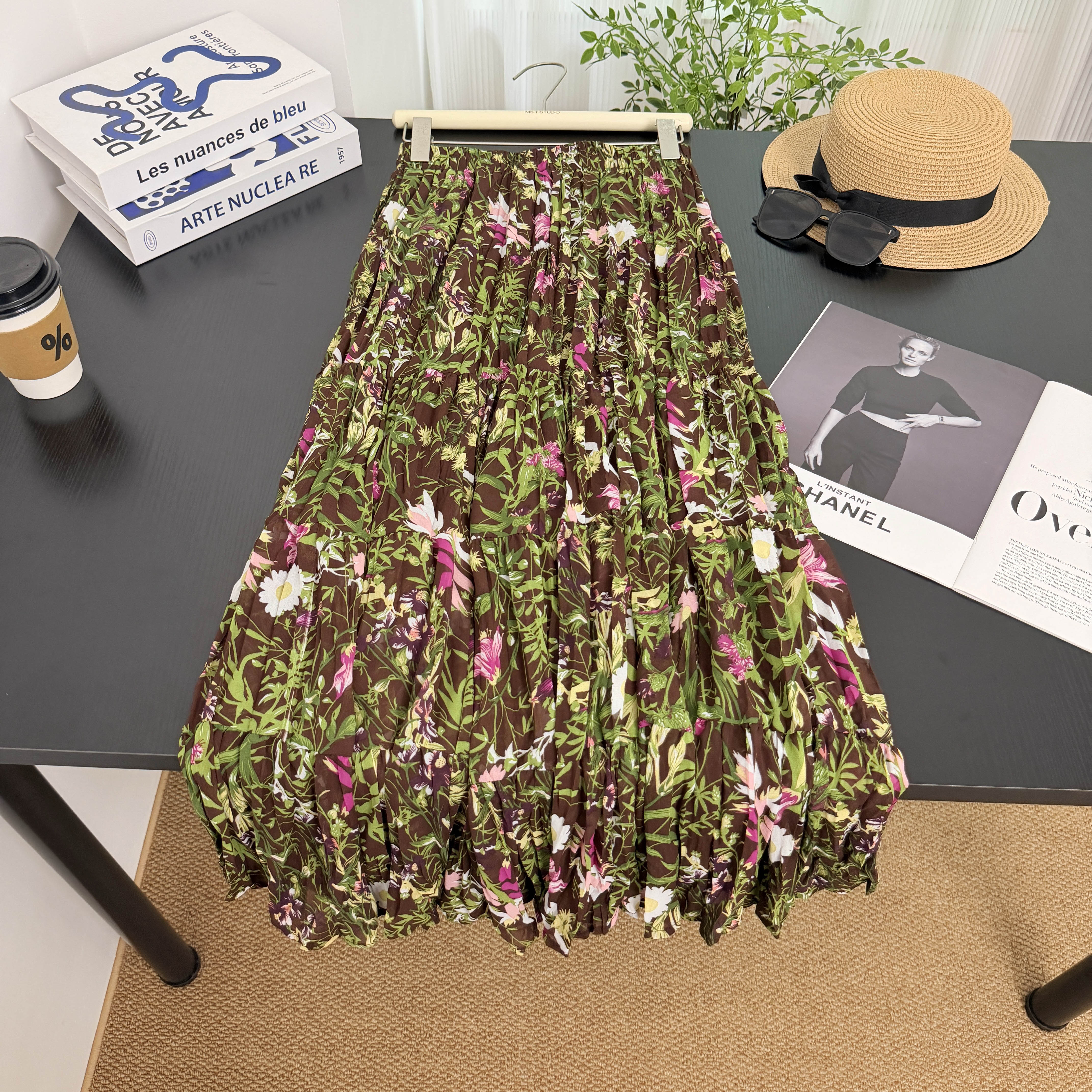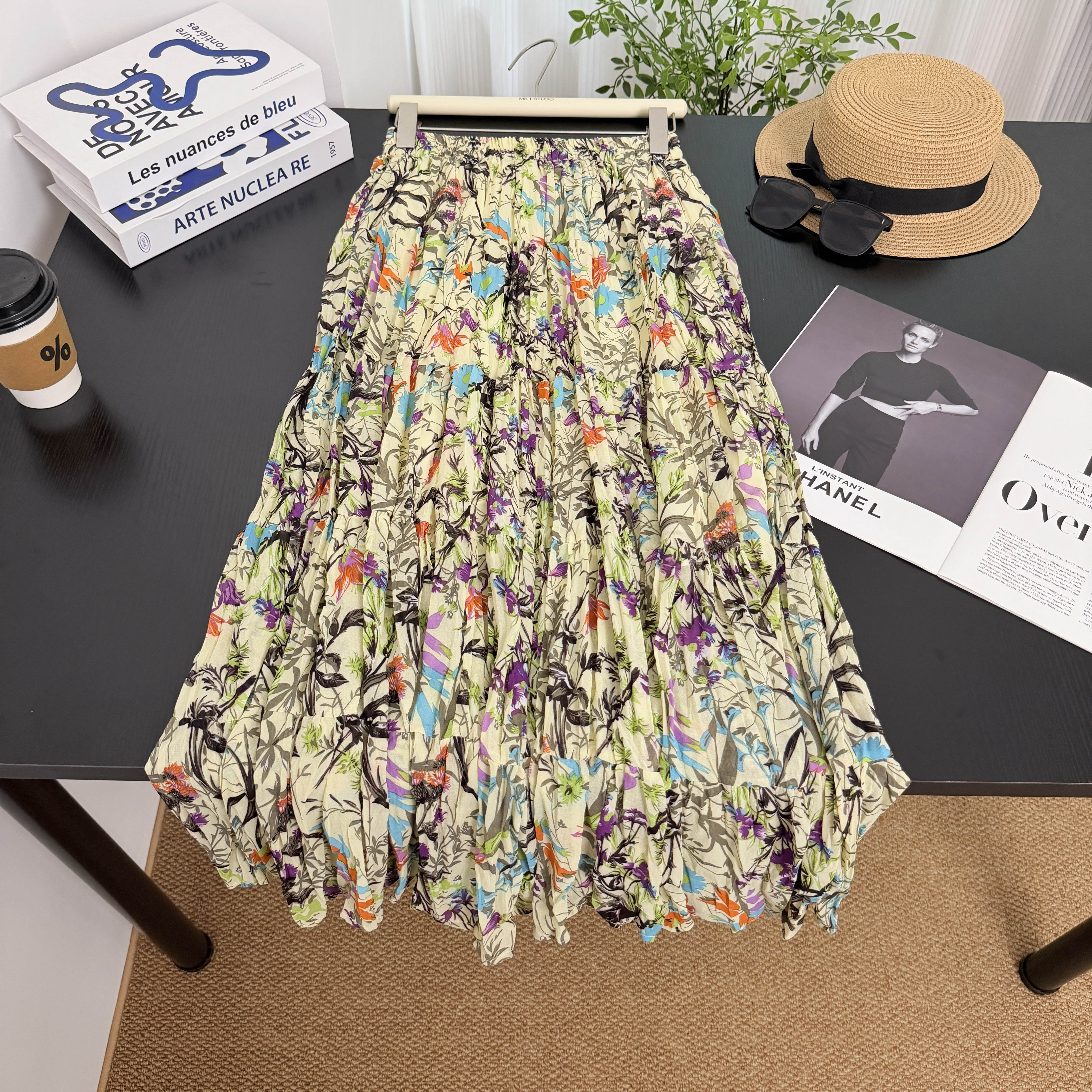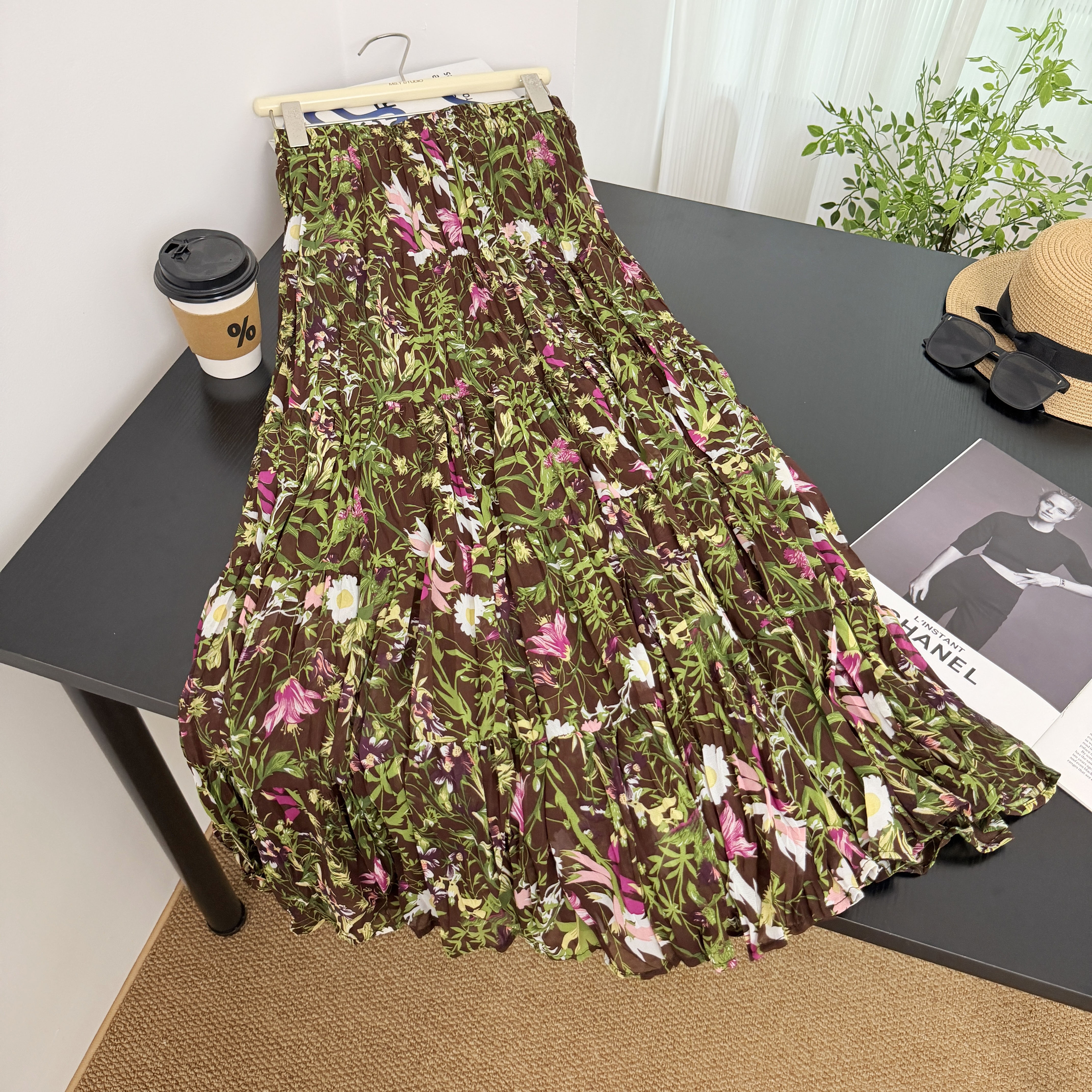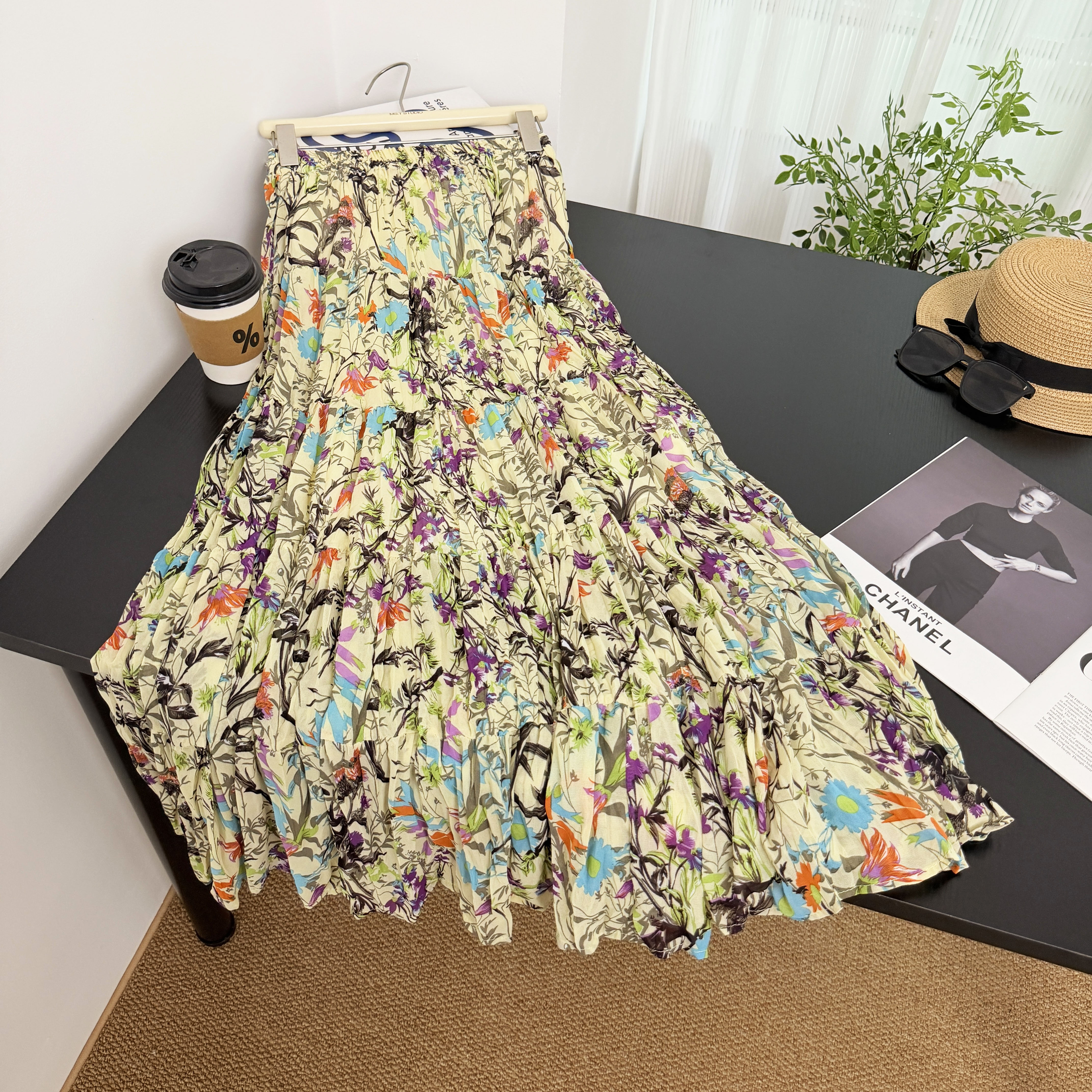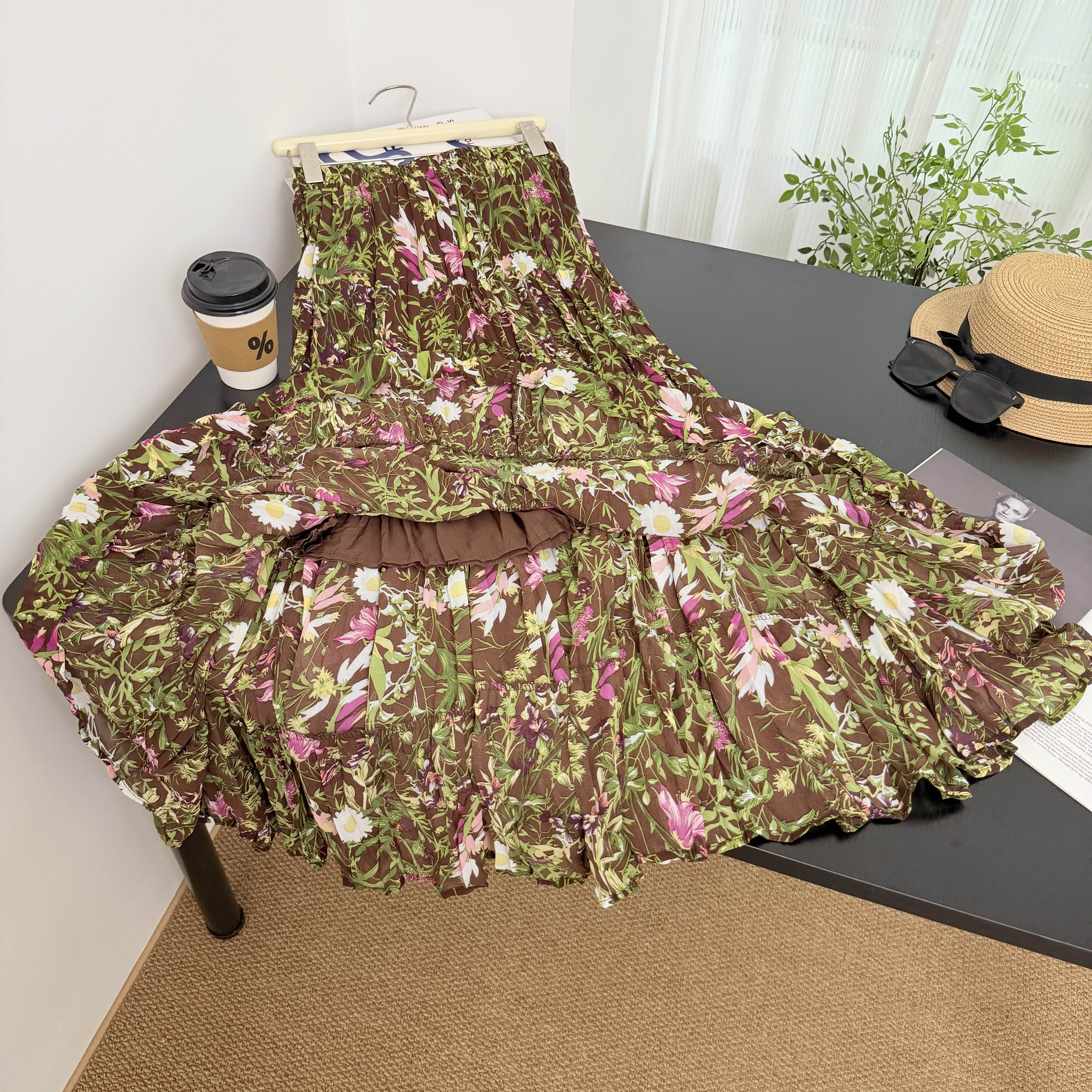 작은 대중 레트로 꽃무늬 반신 스커트 여성 2025 여름 휴가 해변 롱 스커트 슈퍼 요정 품격 쉬폰 빅 플레어 스커트 트렌디