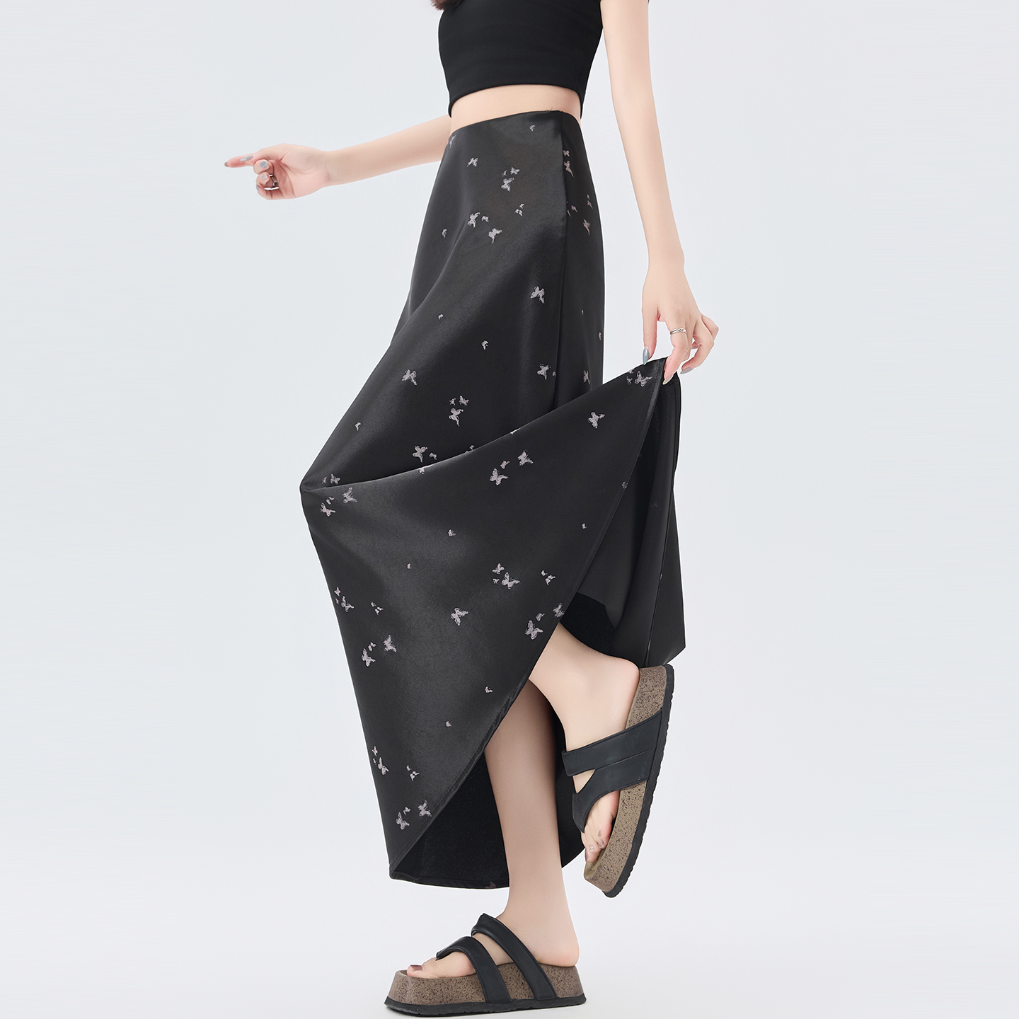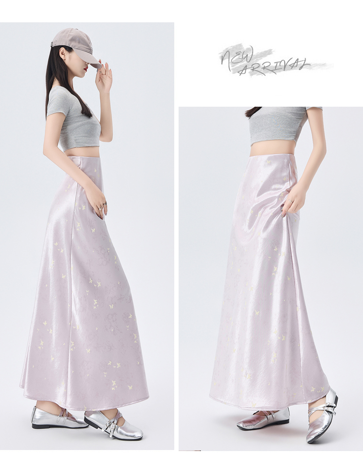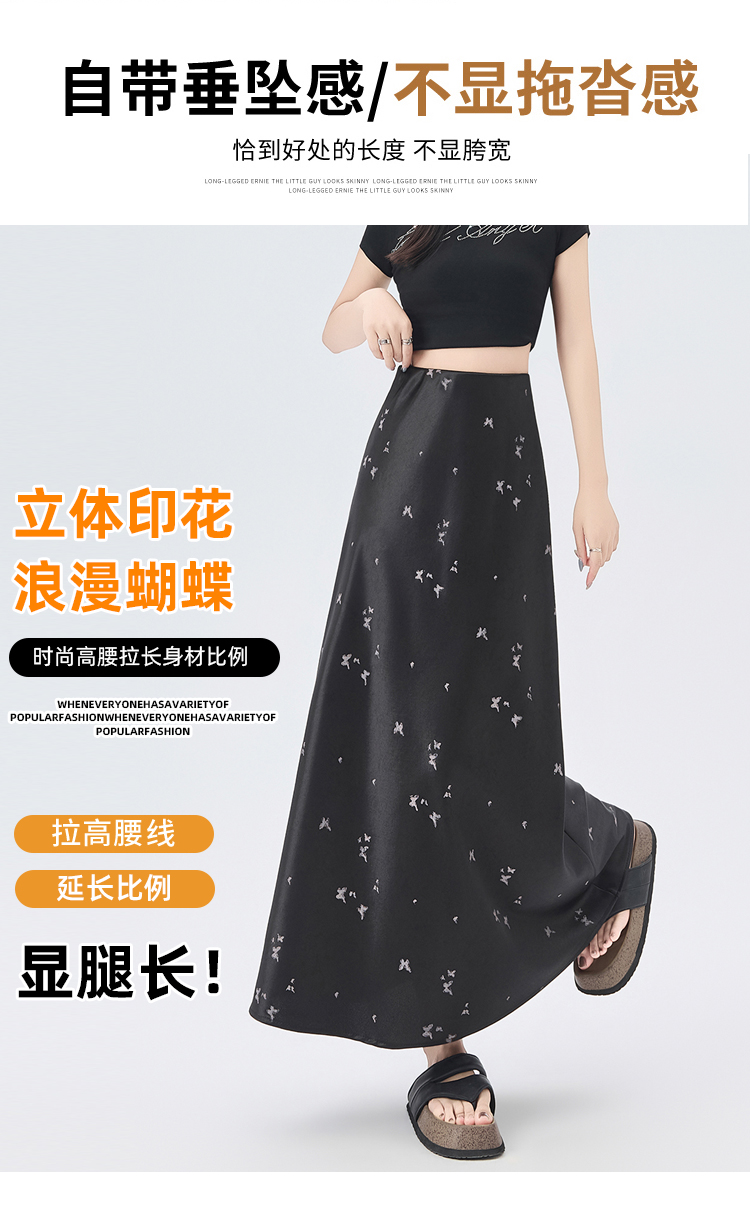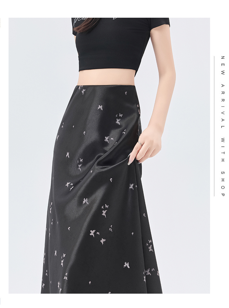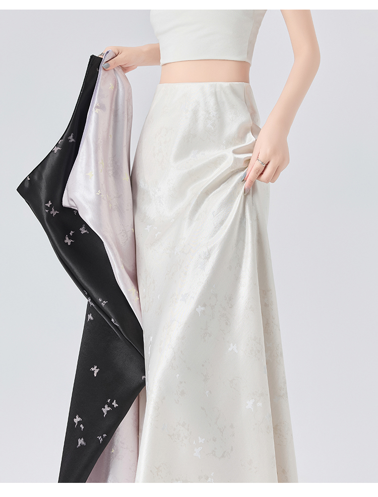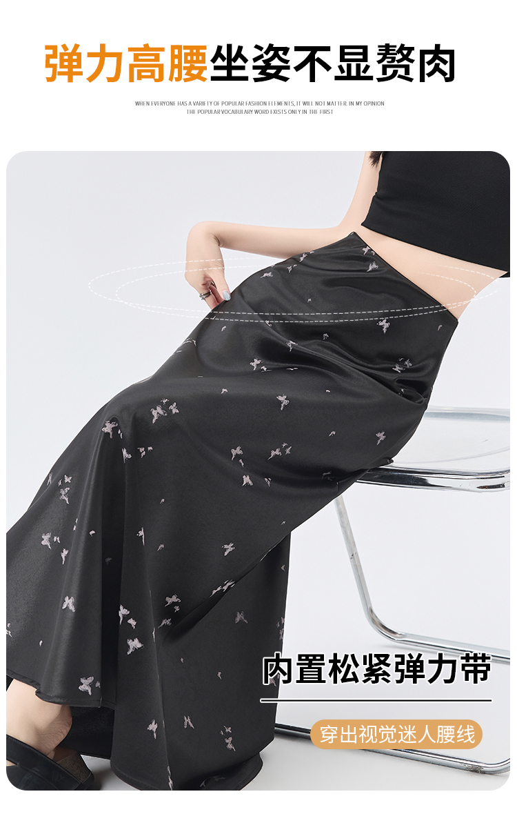 실사 아세트산 새틴 나비 프린트 반신 스커트 여성 여름 2026 새로운 도루 센스 한 마디 타이트 스커트 인어 꼬리 롱 스커트
