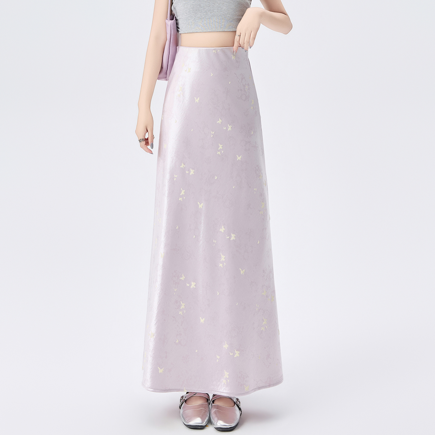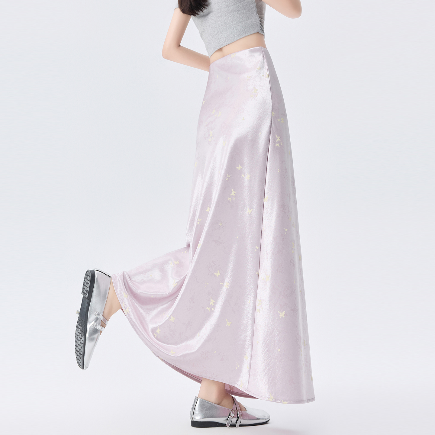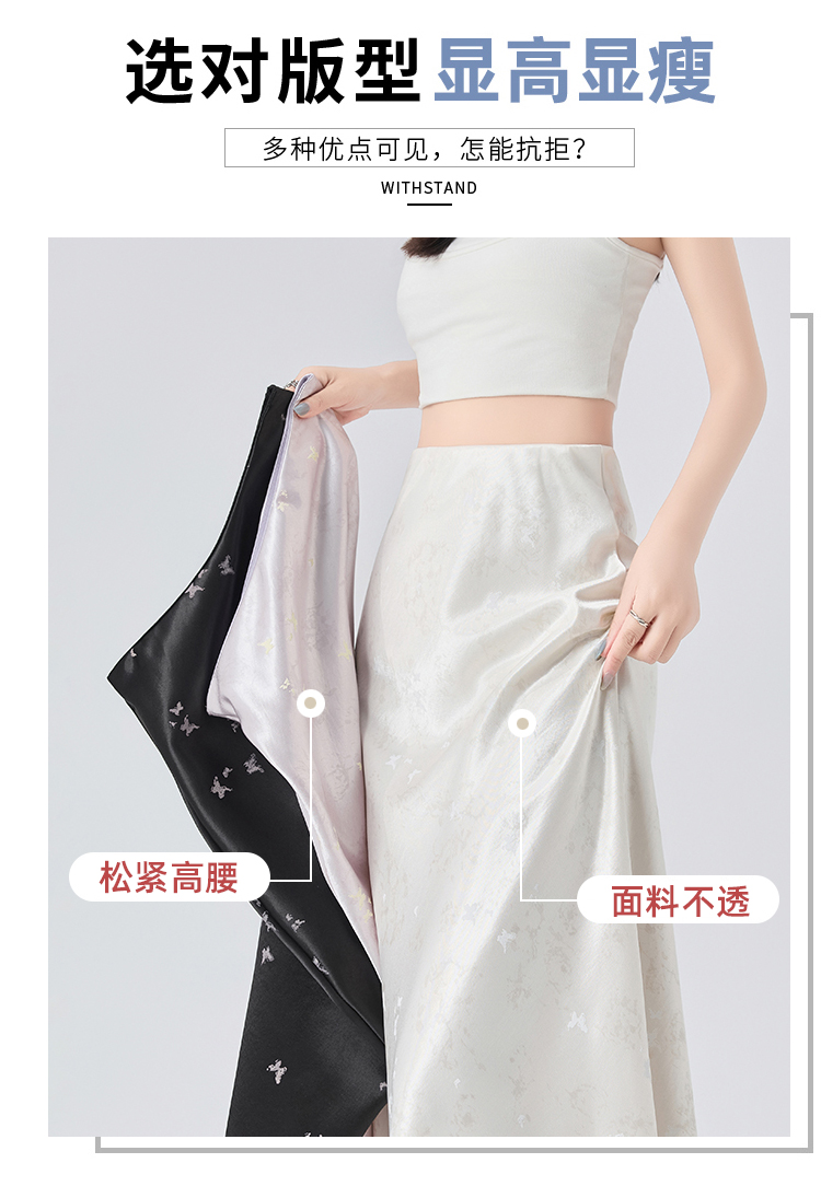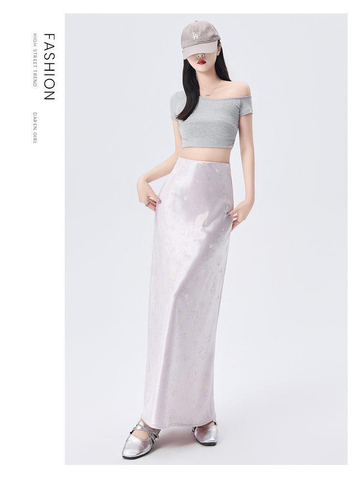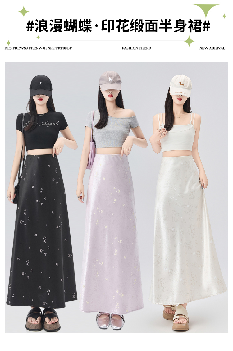 실사 아세트산 새틴 나비 프린트 반신 스커트 여성 여름 2026 새로운 도루 센스 한 마디 타이트 스커트 인어 꼬리 롱 스커트