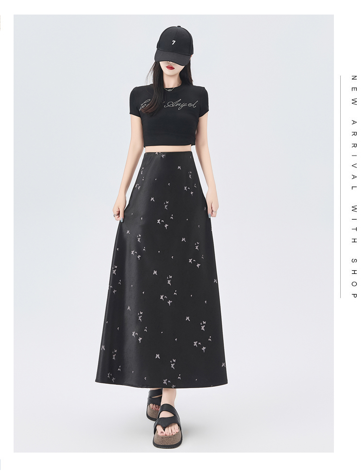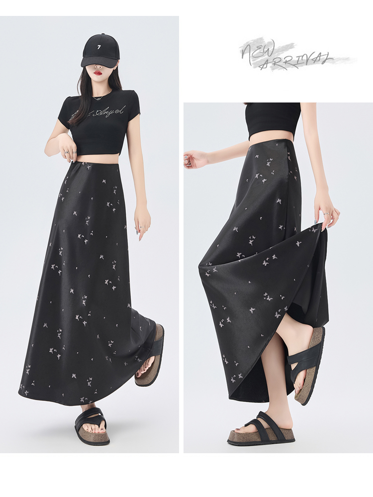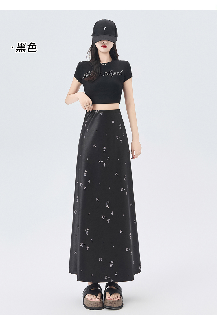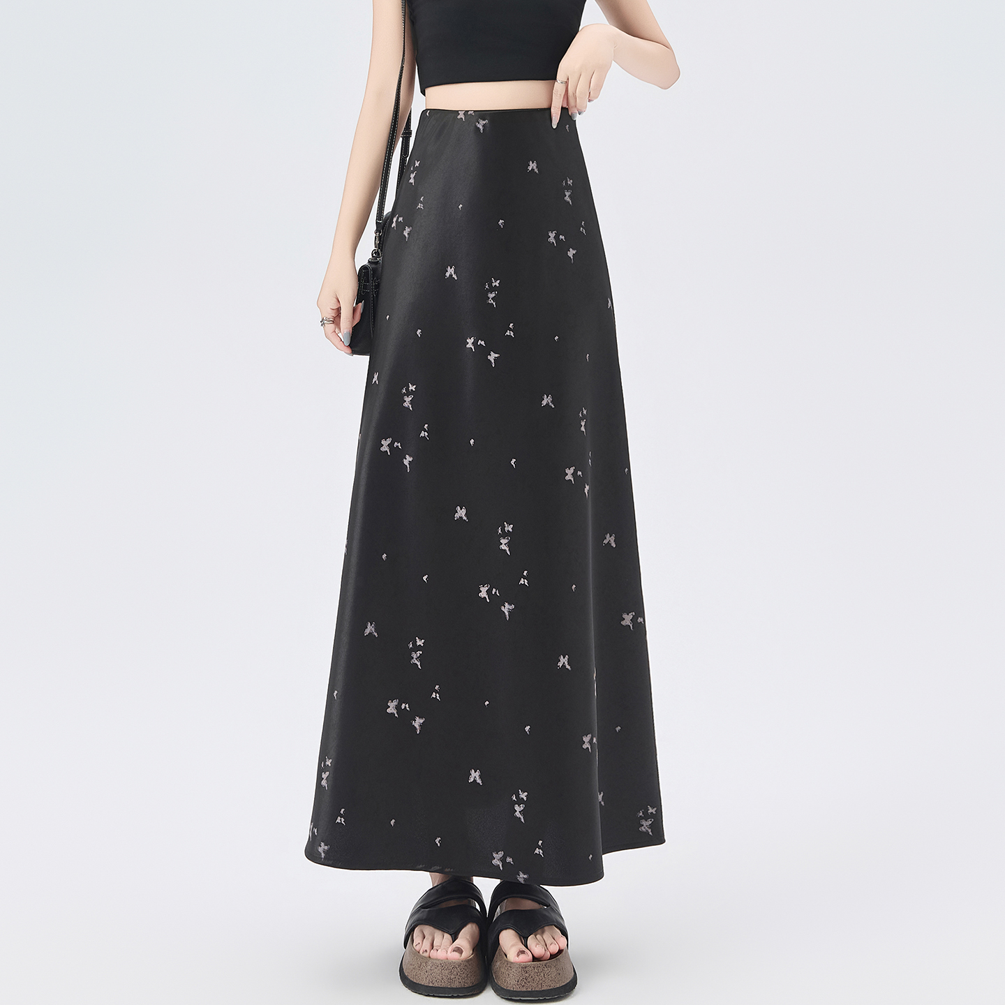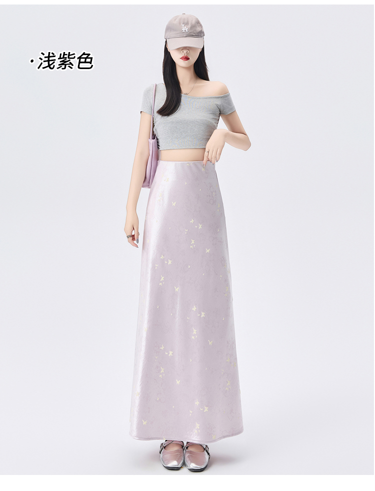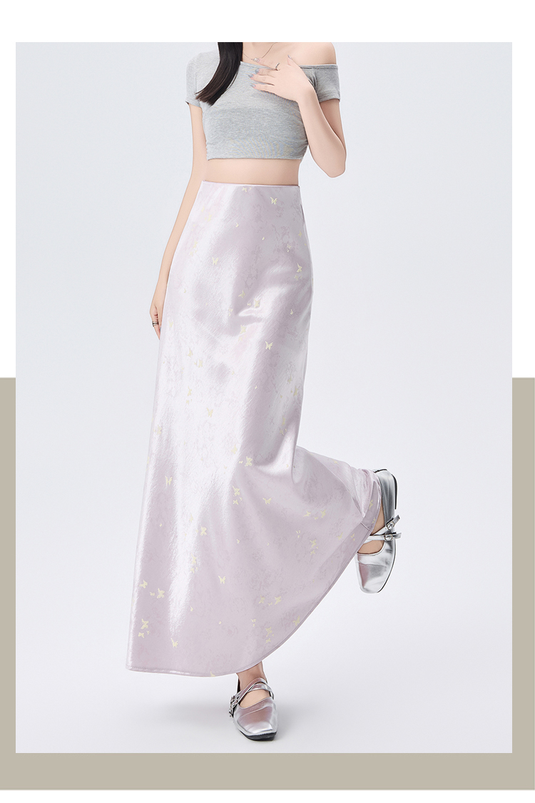 실사 아세트산 새틴 나비 프린트 반신 스커트 여성 여름 2026 새로운 도루 센스 한 마디 타이트 스커트 인어 꼬리 롱 스커트