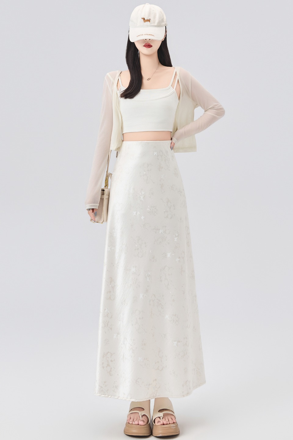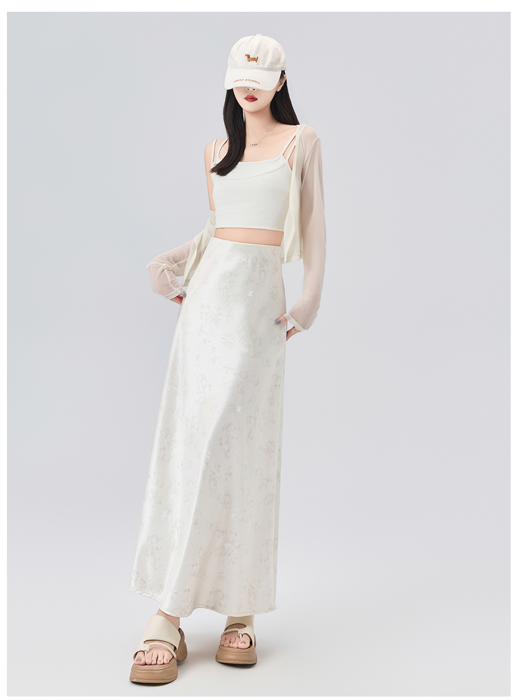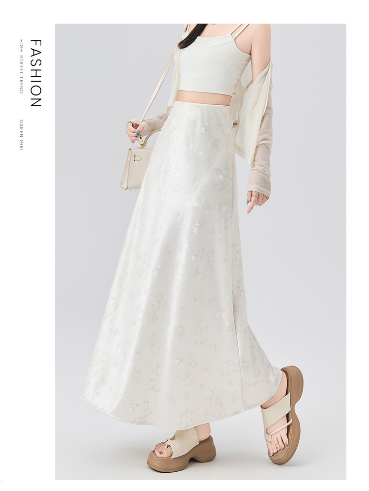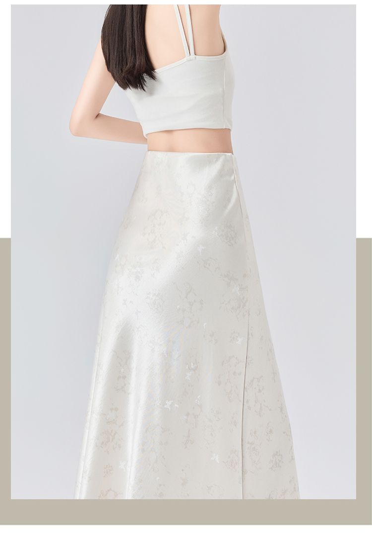 실사 2026 봄 여름 새로운 미니멀리즘 작은 대중 디자인 품격 화이트 꽃밭 중간 길이 반신 스커트 꽃밭 반 스커트