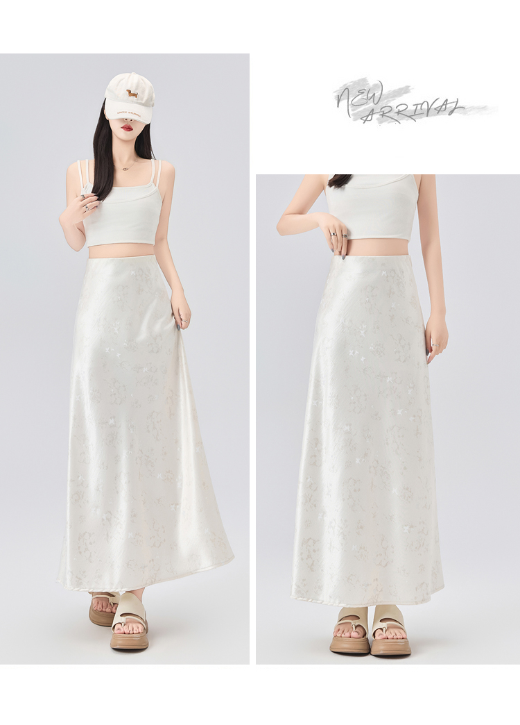 실사 화이트 광택 구름 꽃밭 반신 스커트 여성 2026 봄 여름 새로운 작은 키 노출 방지 미니 스커트 여성