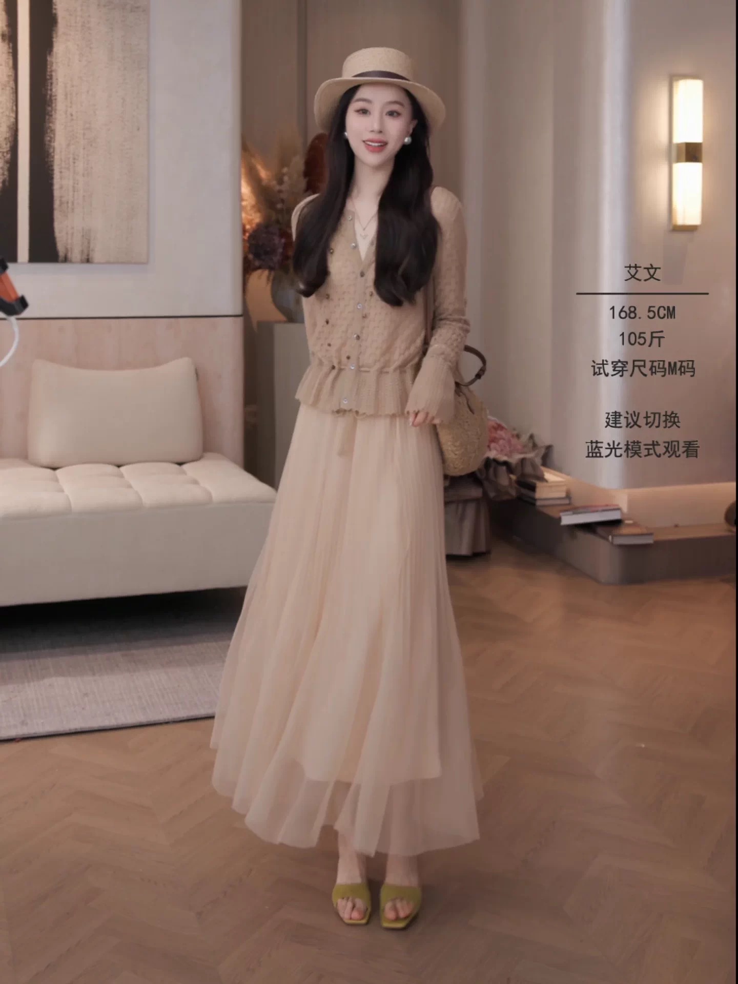 원 유안 달빛 세레나데 반신 스커트 여성 2026 새로운 봄 주름 롱 코트 달빛 치마 망사 치마