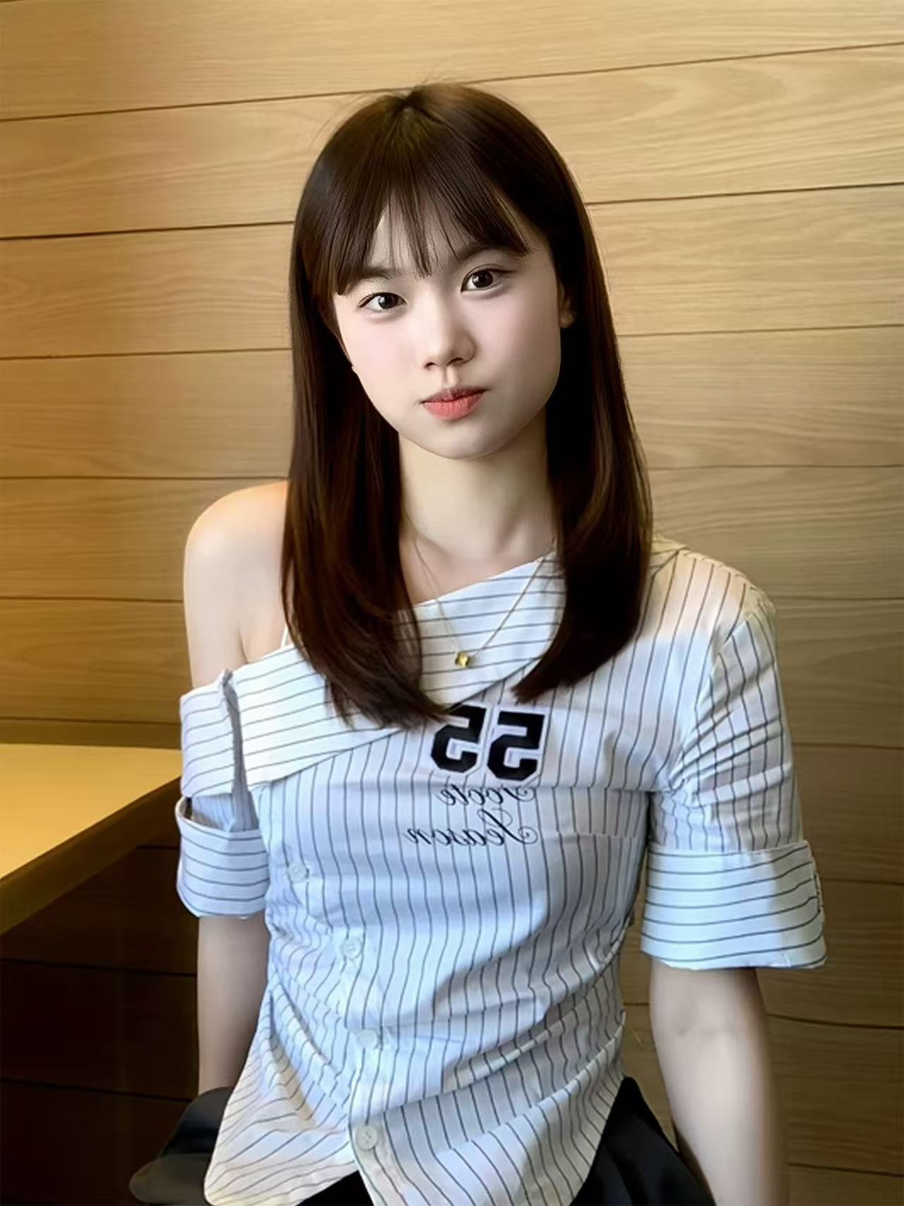 한 부서 순수한 욕망 학원 스타일 비스듬한 어깨 반팔 여성 셔츠 봄 스트라이프 허리 수축 셔츠 몸매 가꾸기 슬림해 보이는 쇼트 스타일 맨위