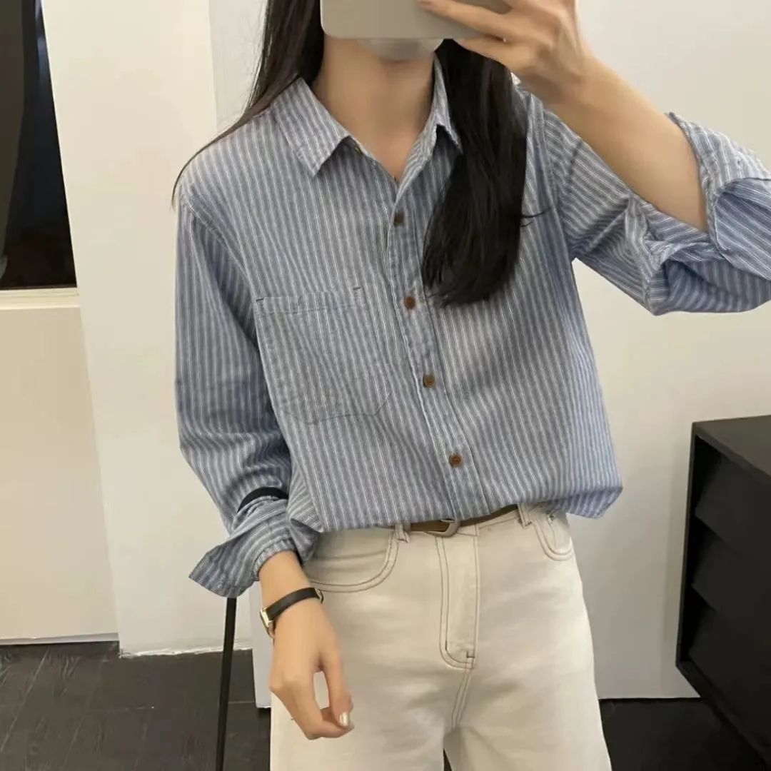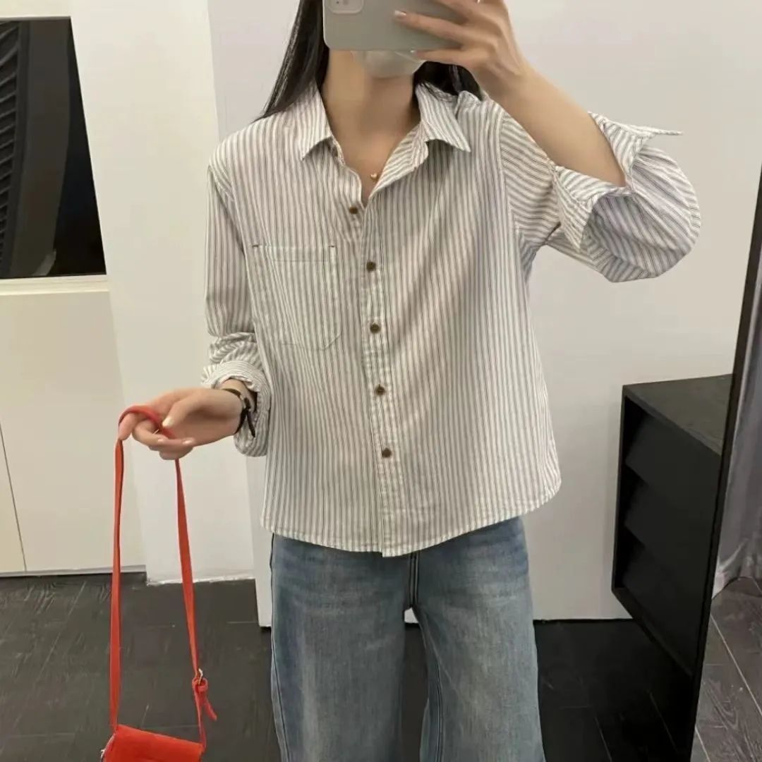 여성 셔츠 디자인 센스 작은 대중 2026 봄 가을 새로운 긴팔 경력 외국 가스 V넥 셔츠 품격 맨위 ins