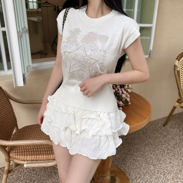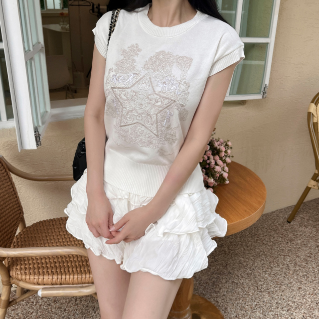 무거운 작업 비즈 박기 민소매 조끼 여성 화이트 작은 샤넬 스타일 품격 맨위 보석 스태킹 바람 외국 가스