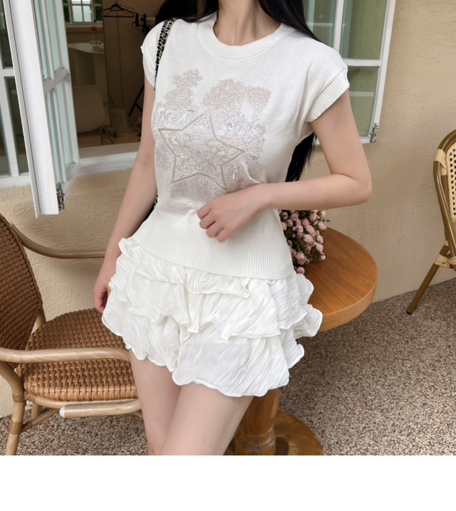 베이지 색 루즈핏 V넥 페이크 레이어드 니트 스웨터 여성 2026 새로운 여름 고급 센스 슈퍼 잘 생긴 반팔 맨위
