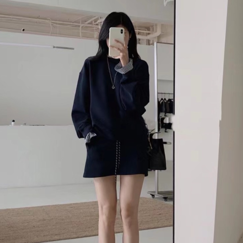 2026 이른 봄 새로운 운동 패치워크 긴팔 순면 패션 맨위 재킷 플러스 반신 슬림해 보이는 미니 스커트 투피스 세트
