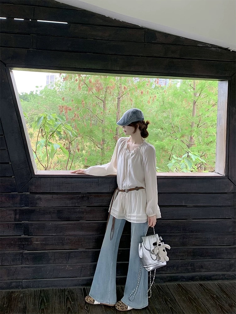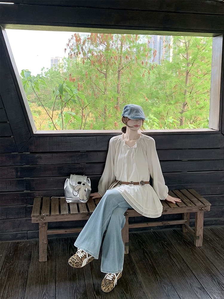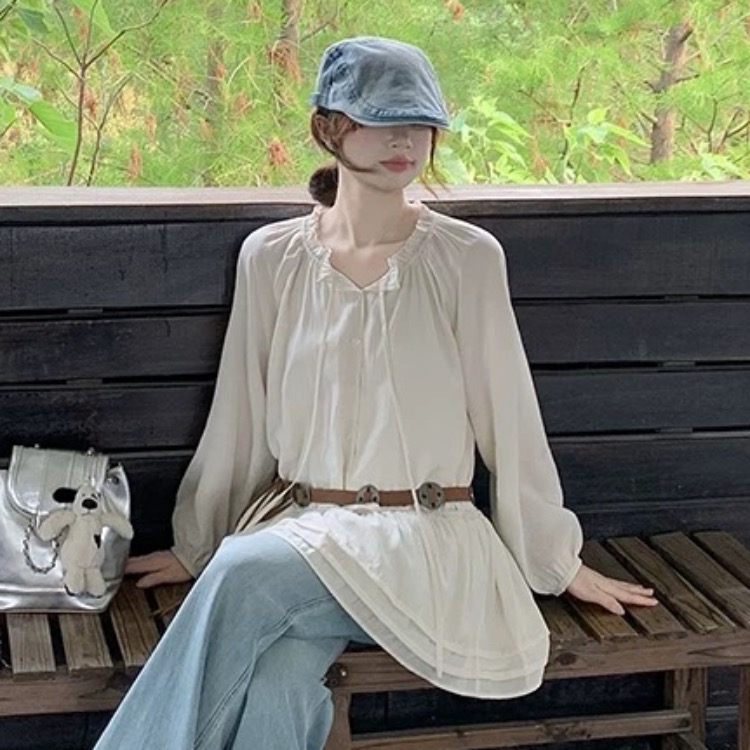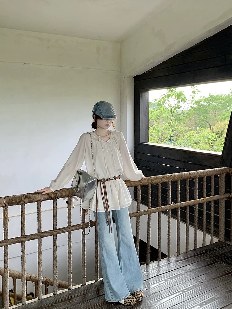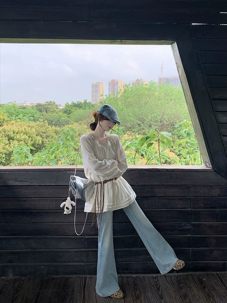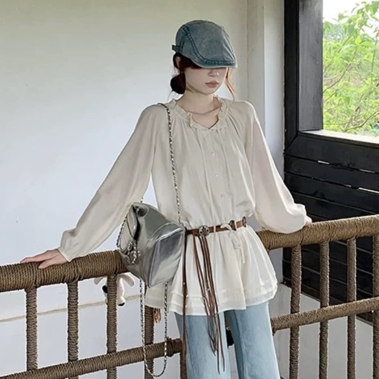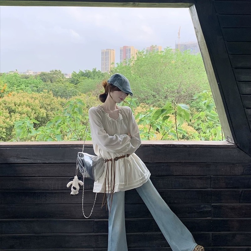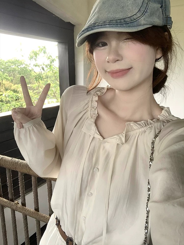 릴리 예 장 원자바오 부드러운 미니멀리즘 꽃잎 소매 우유 화이트 긴팔 셔츠 화이트 2026 맨위 외국 가스 새로운