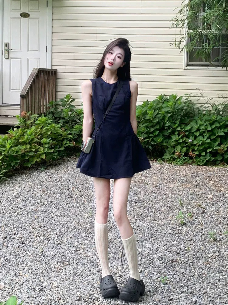 허리 수축 슬림해 보이는 작은 대중 디자인 고급 센스 민소매 조끼 여성 드레스 작은 키 프랑스식 품격 한 마디 미니 스커트
