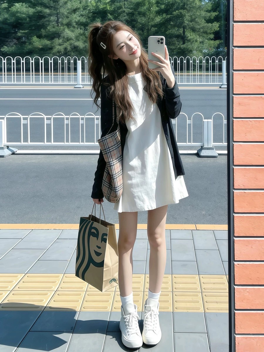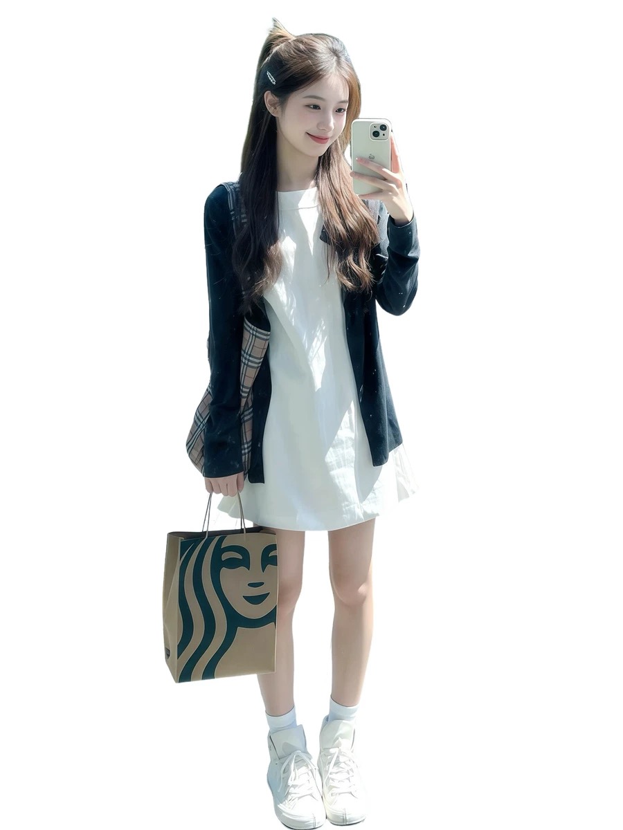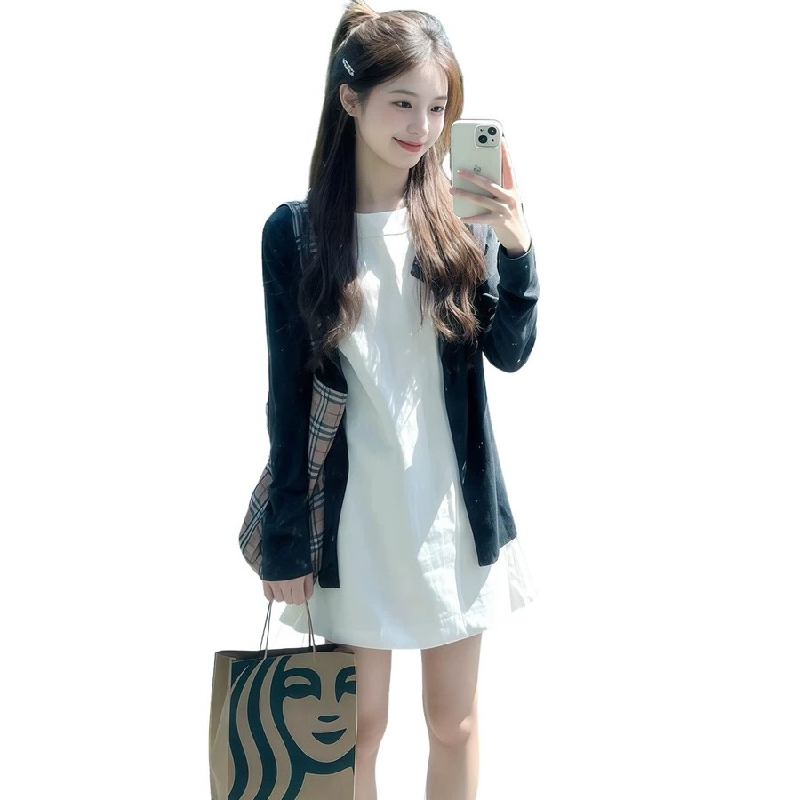 조기 봄 2026 새로운 화이트 민소매 조끼 원피스 아이들 고급 센스 작은 키 한 부서 착용 가져 가라. 세트