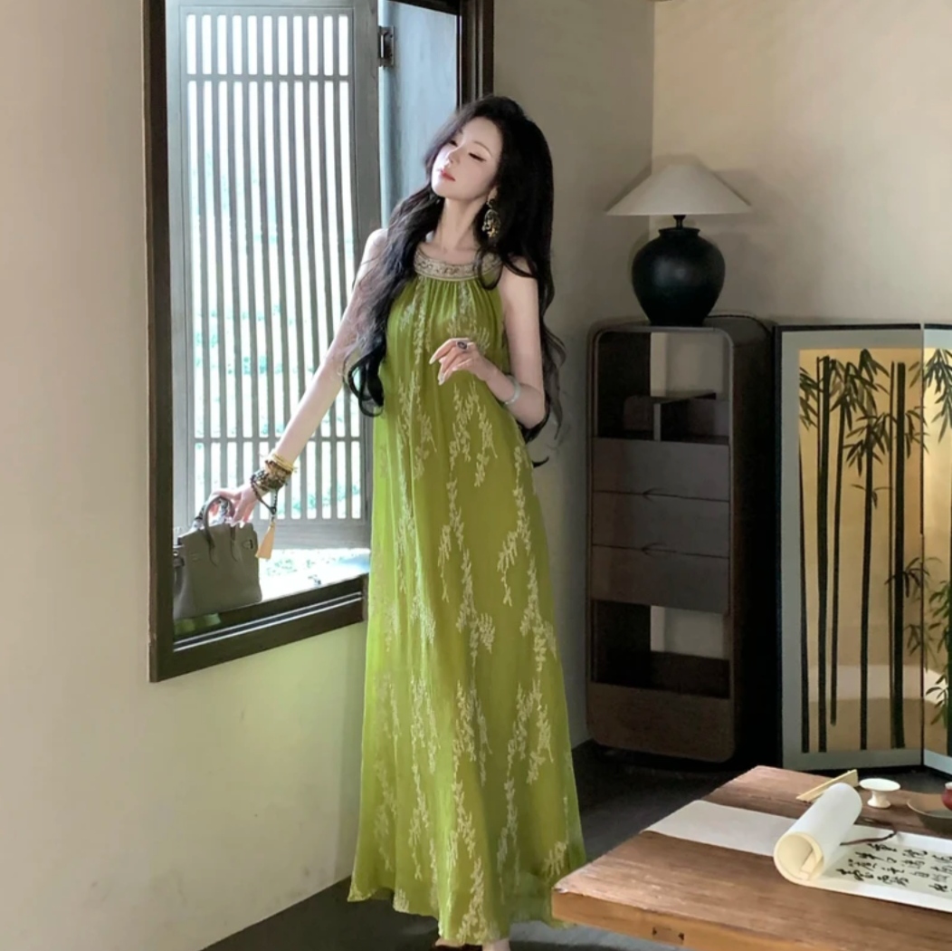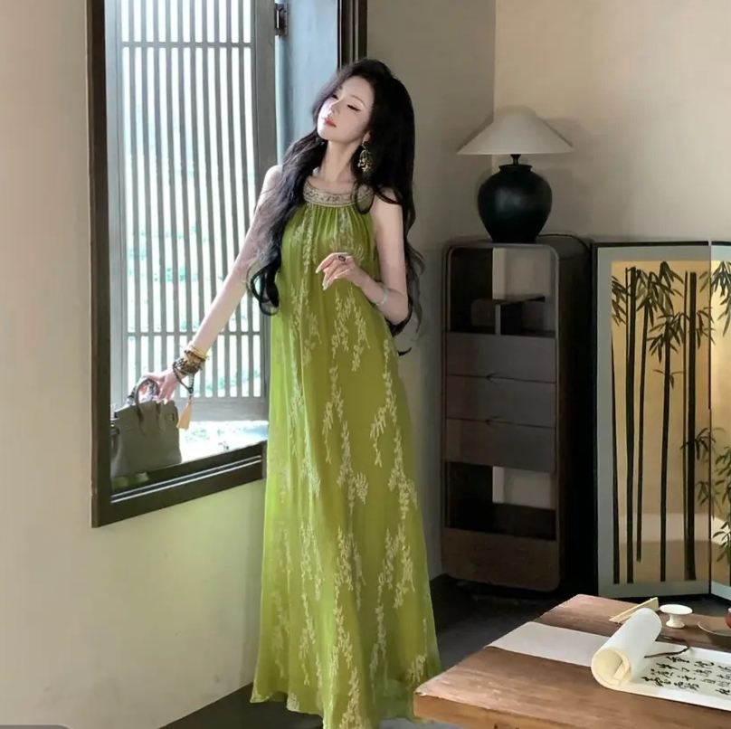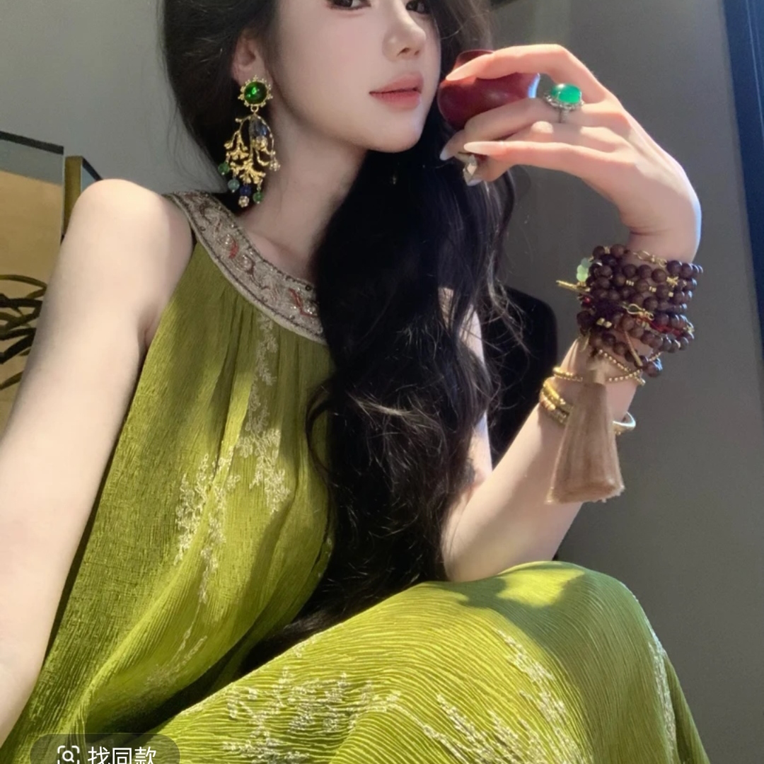 폭풍 폭풍 홈 무거운 작업 자수 발굴하다 어깨 허리 수축 몸매 가꾸기 민소매 드레스