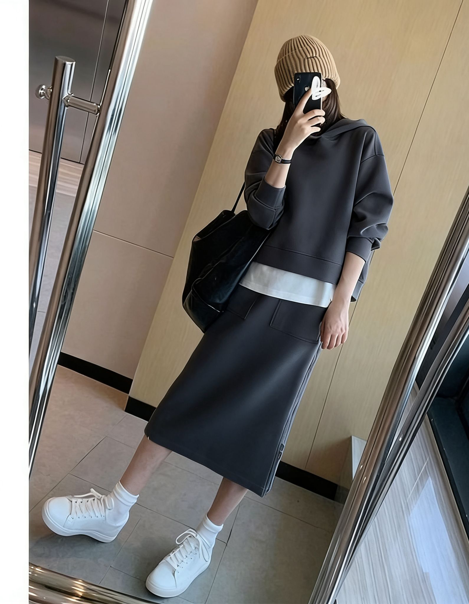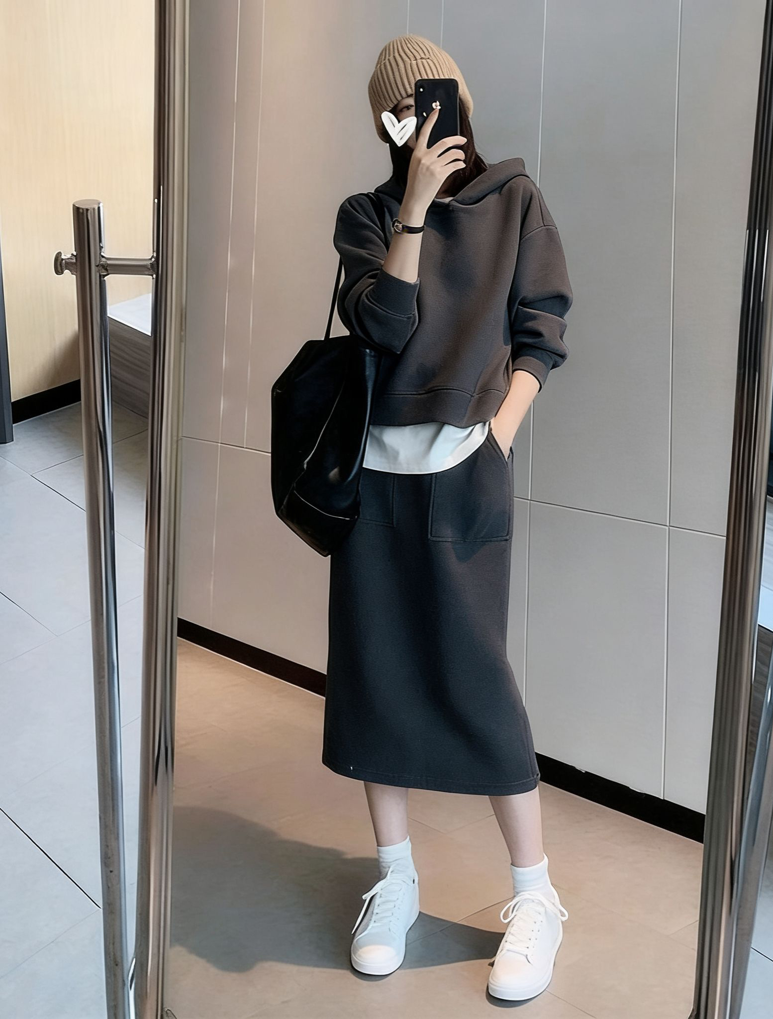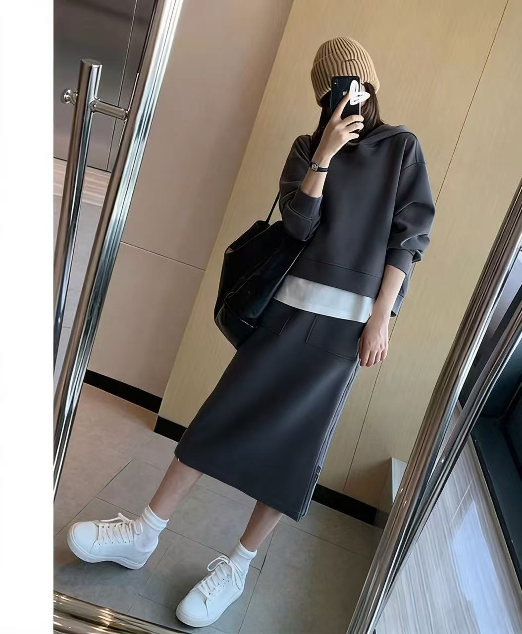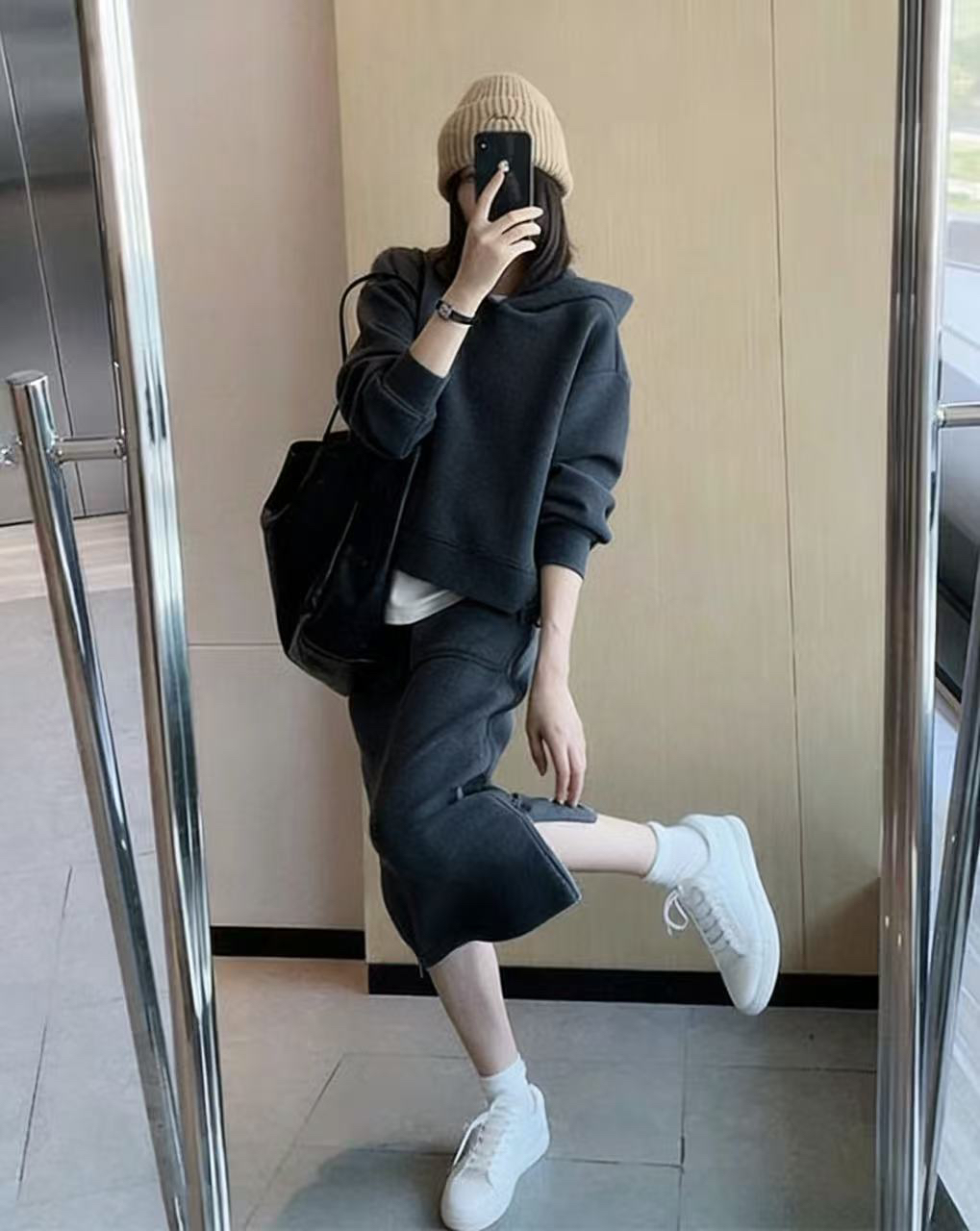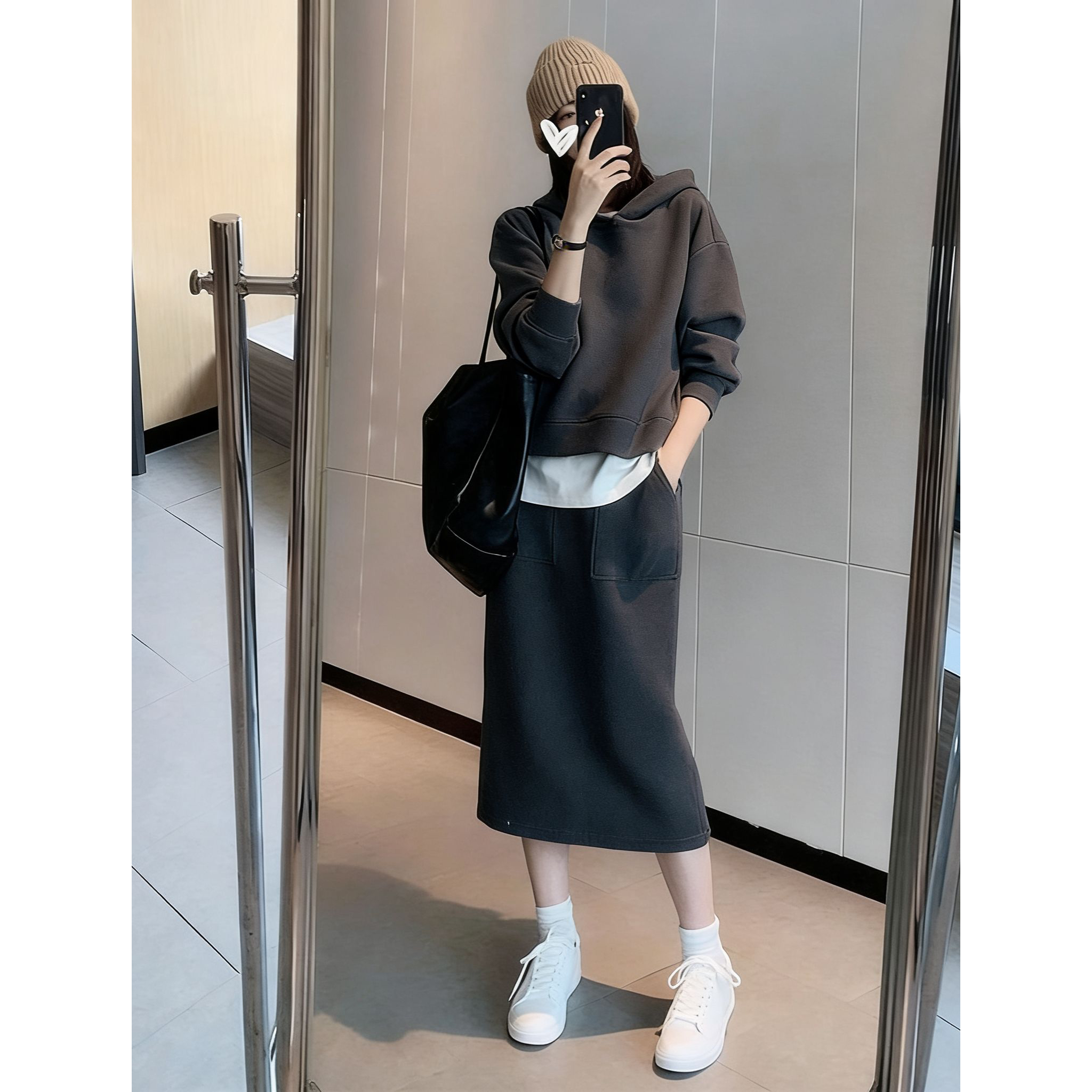 유럽 역 패션 캐주얼 세트 여성 2026 년 봄 가을 겨울 새로운 고급 센스 패션 반 스커트 후드티 투피스 세트