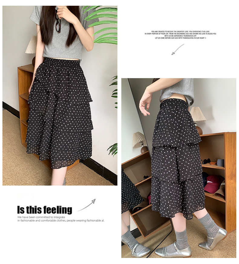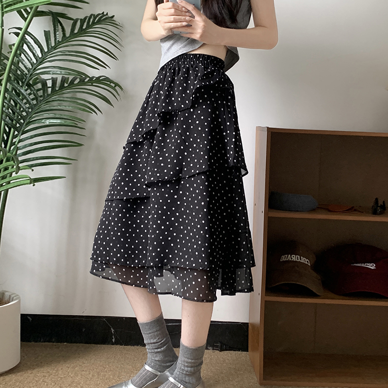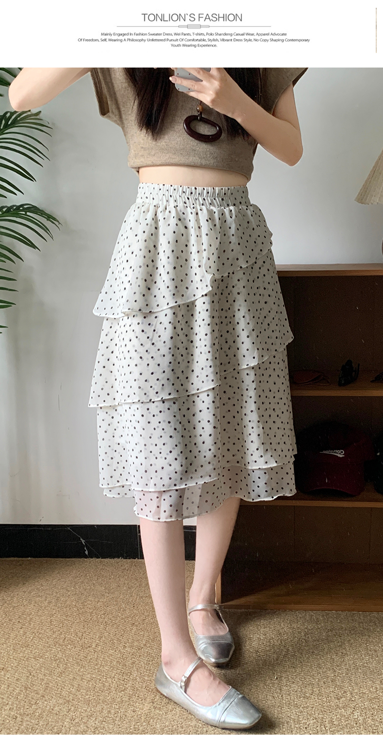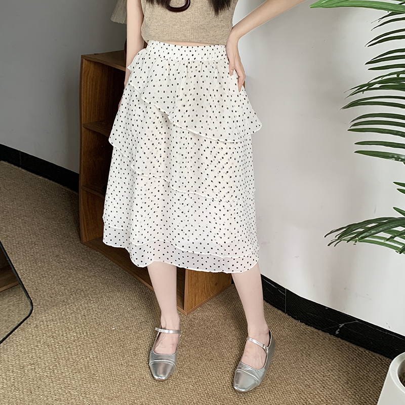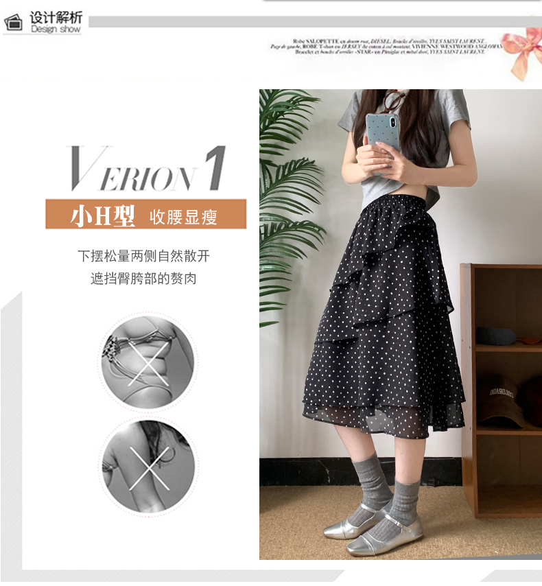 여름 프릴 도트 무늬 반신 스커트 빅 사이즈 여성 의류 도루 센스 하이웨이스트 슬림해 보이는 불규칙 쉬폰 한 마디 중 치마