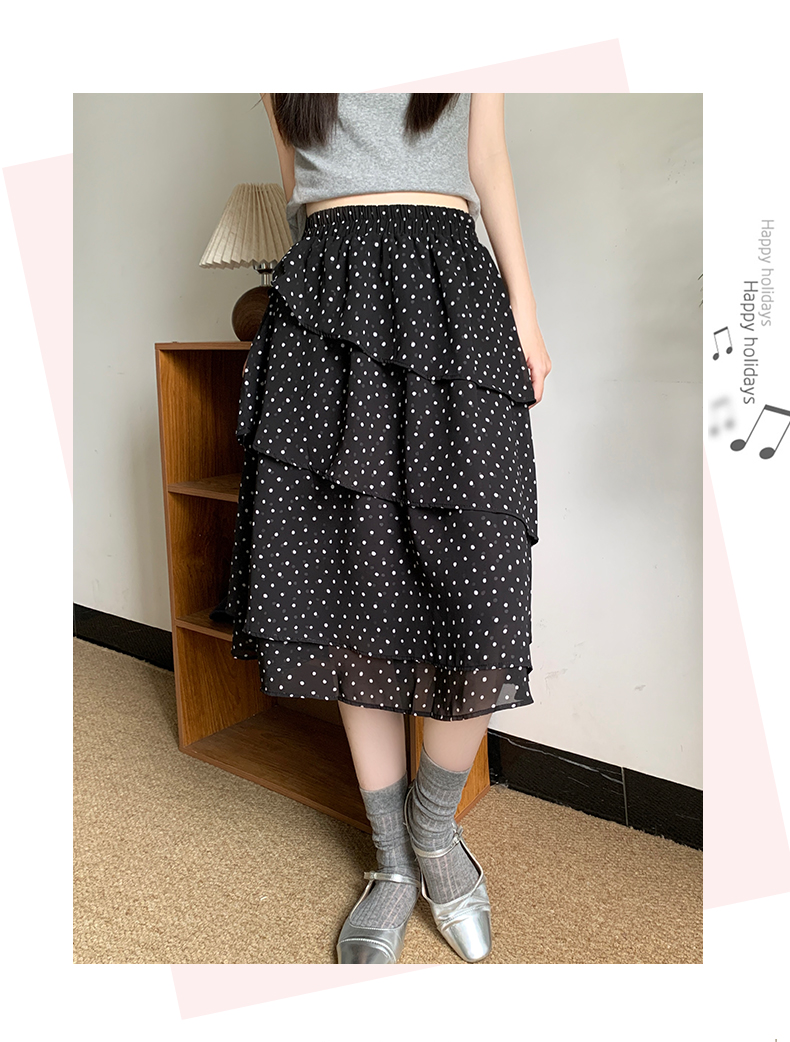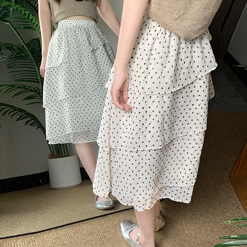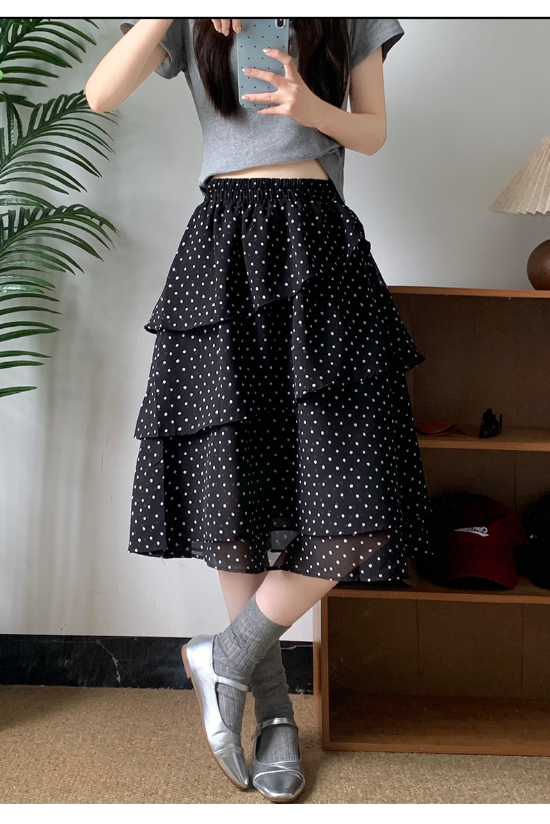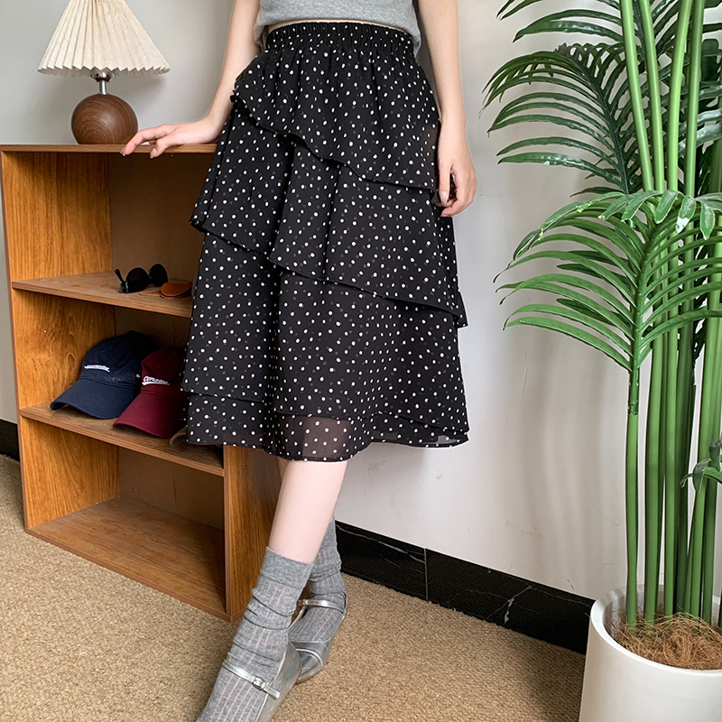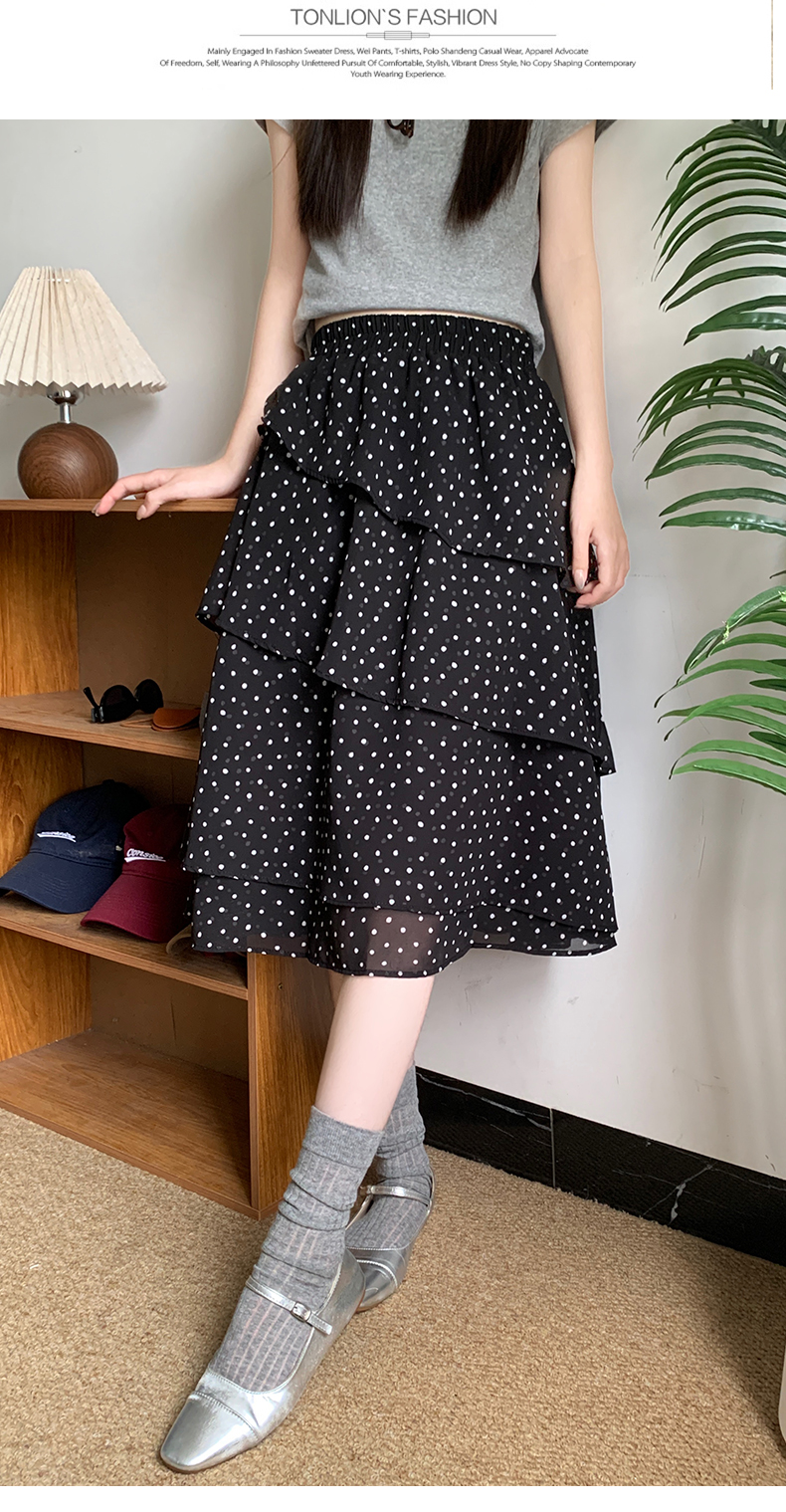 여름 프릴 도트 무늬 반신 스커트 빅 사이즈 여성 의류 도루 센스 하이웨이스트 슬림해 보이는 불규칙 쉬폰 한 마디 중 치마