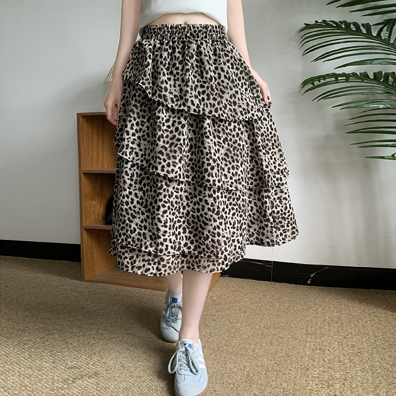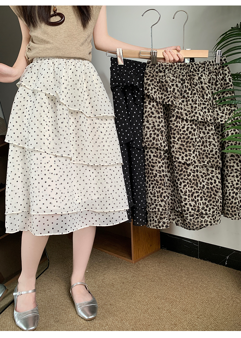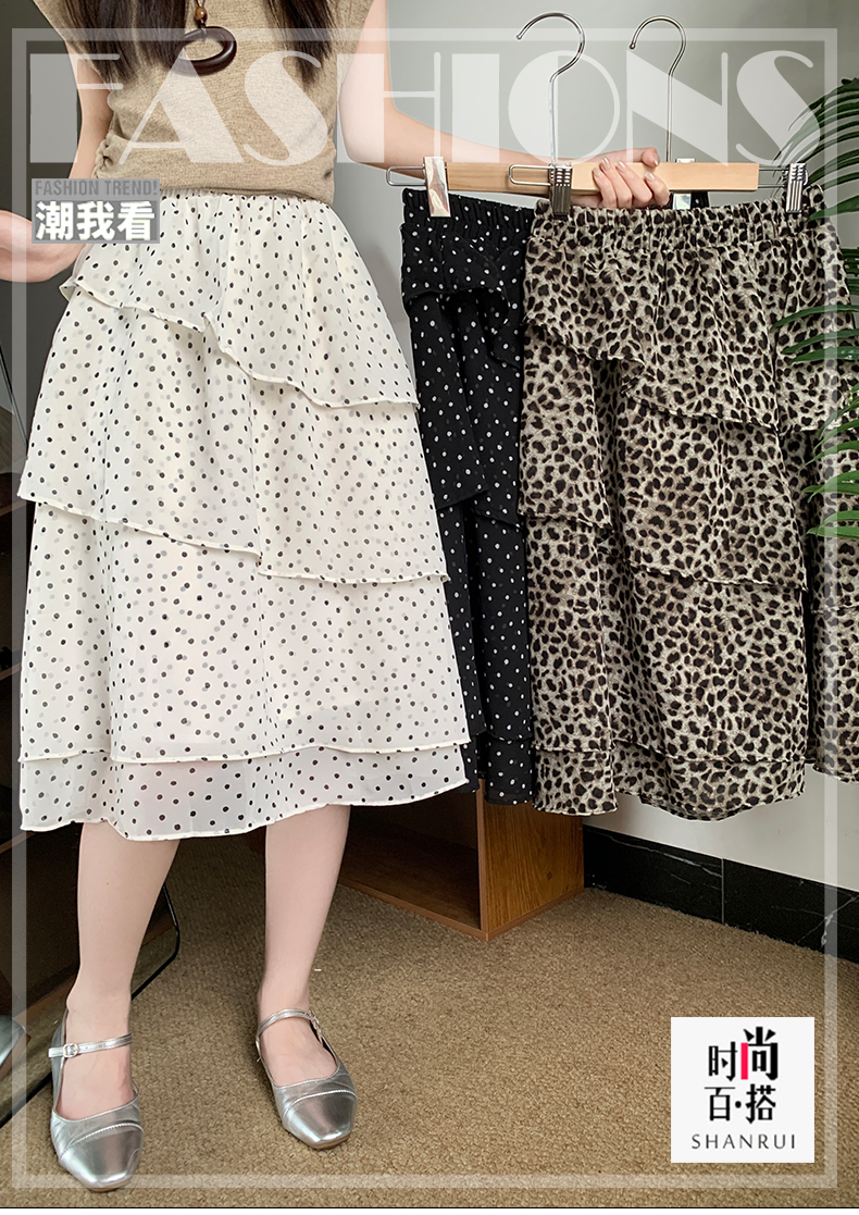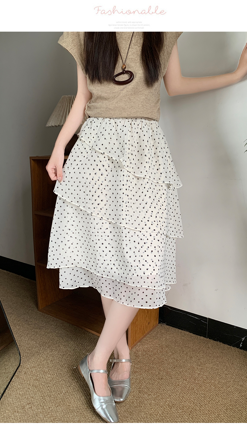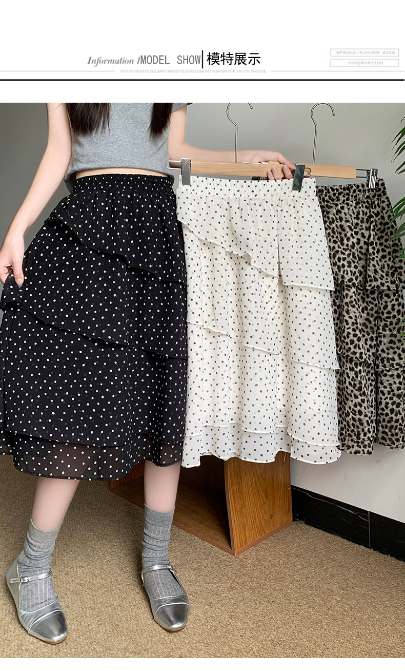 여름 프릴 도트 무늬 반신 스커트 빅 사이즈 여성 의류 도루 센스 하이웨이스트 슬림해 보이는 불규칙 쉬폰 한 마디 중 치마