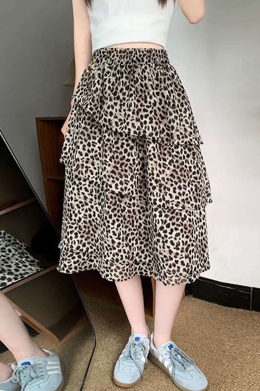 원 유안 여름 달콤한 차 발레 바람 학원 스타일 꽃밭 치마 페이크 레이어드 허리밴드 반신 치마바지