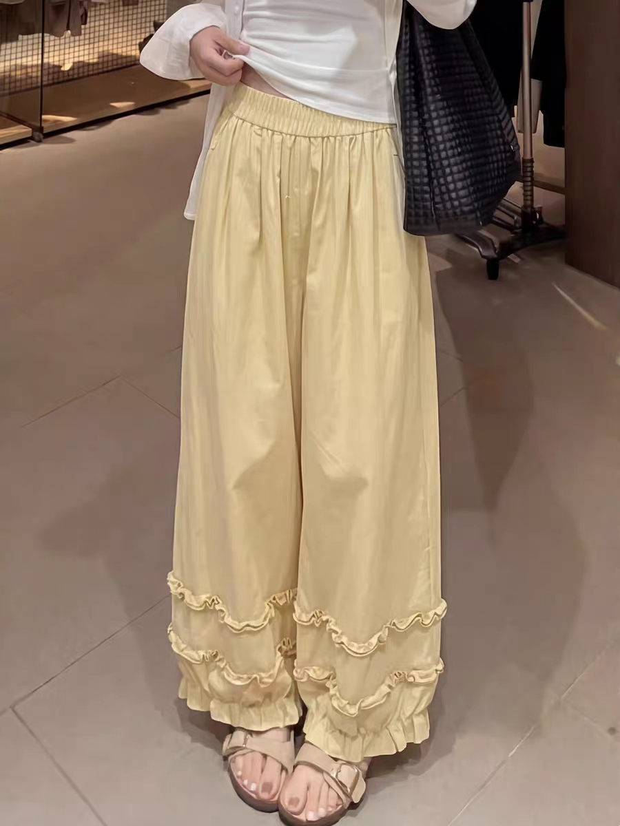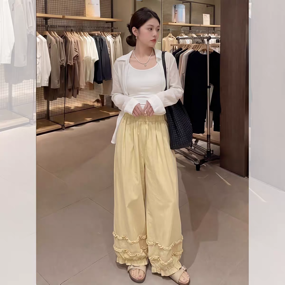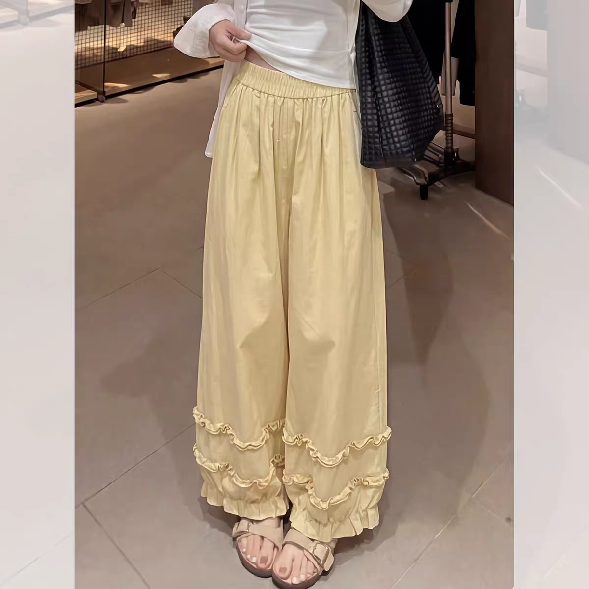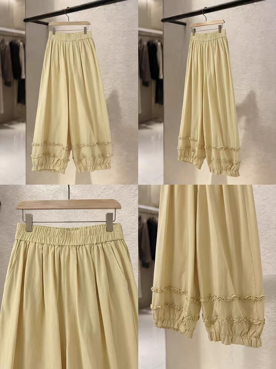 프릴 방귀 커튼 캐주얼 바지 여성 2026 여름 조거 둘 착용 달콤함 풍선 바지 작은 키 넓은 다리 길이 바지