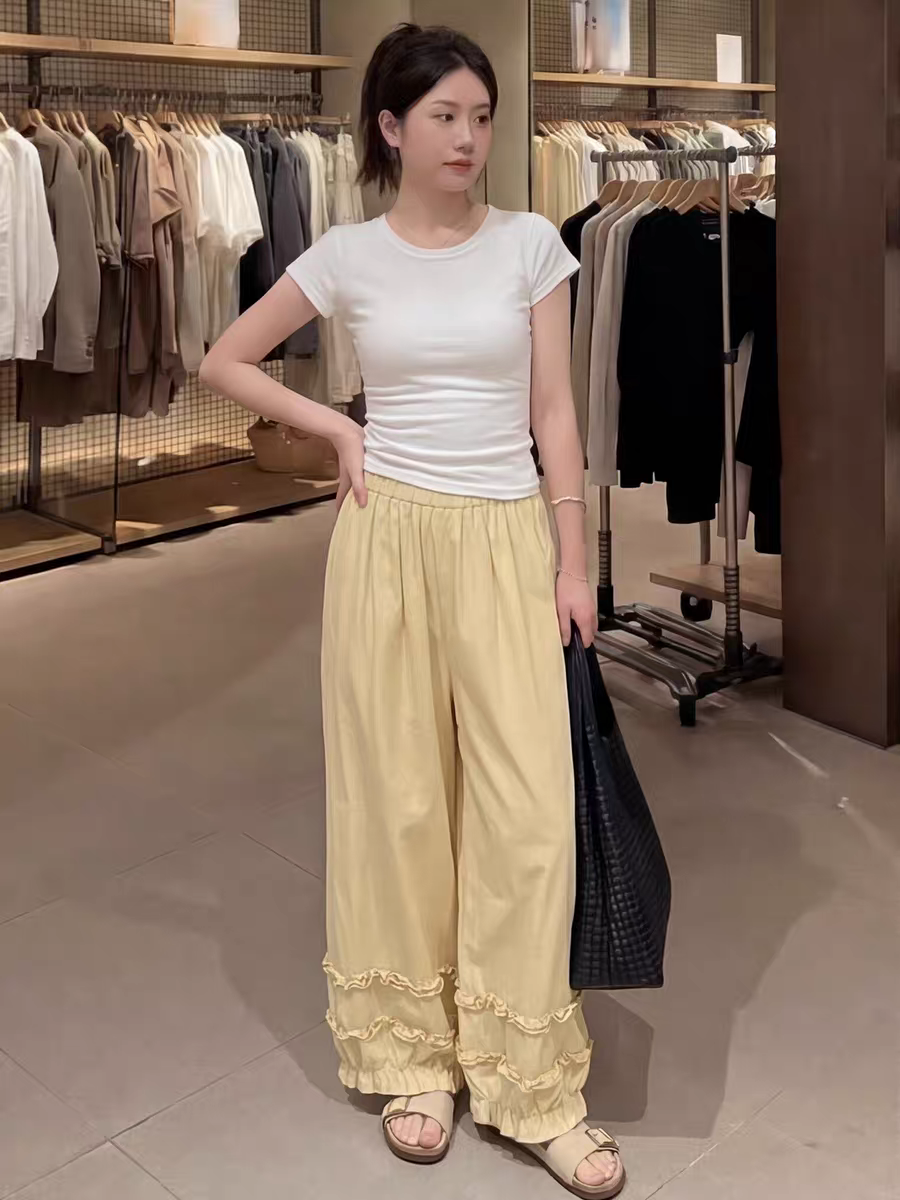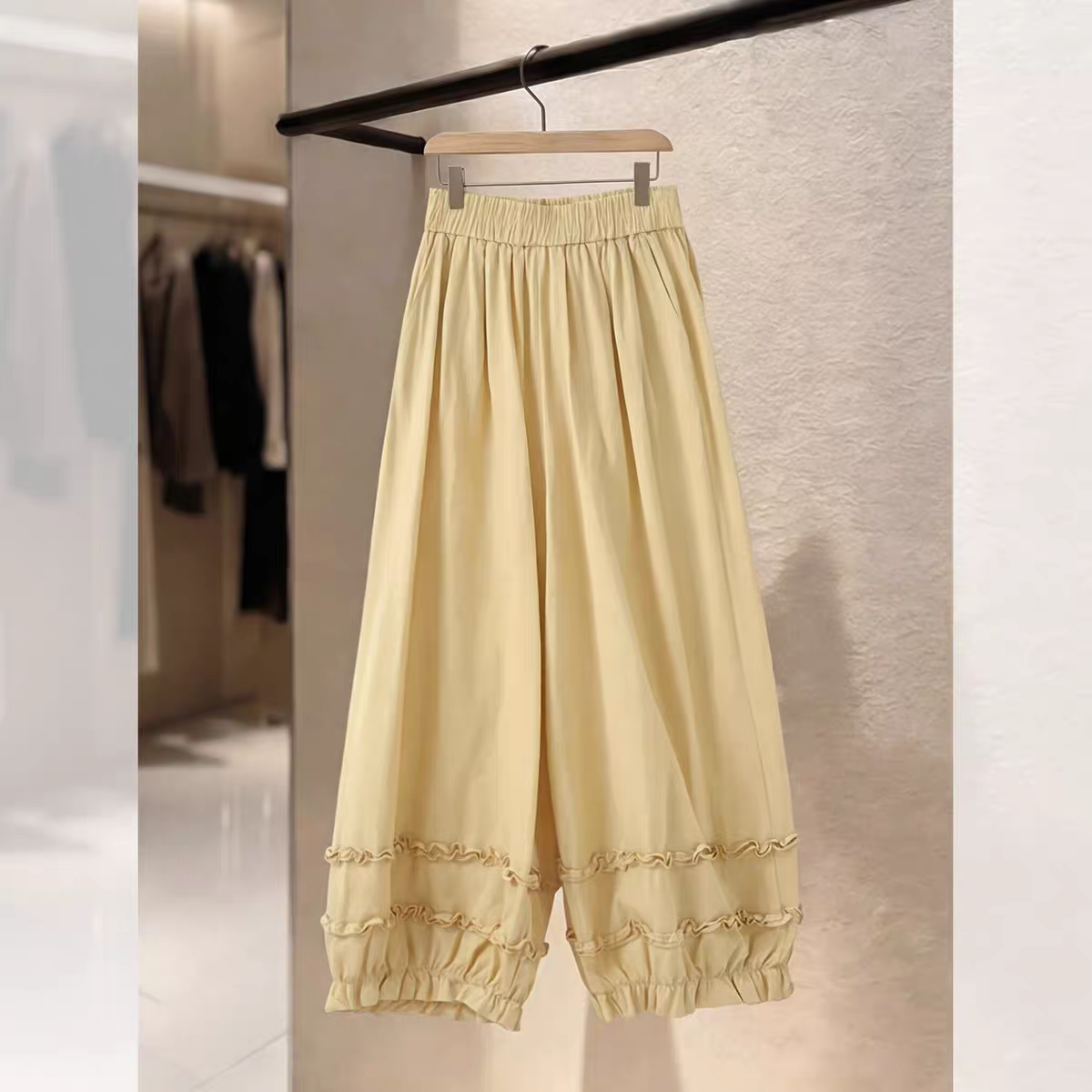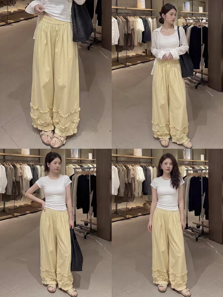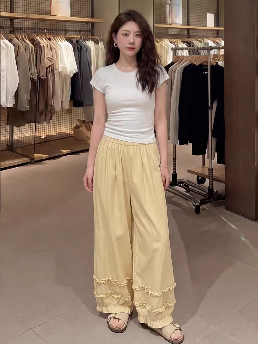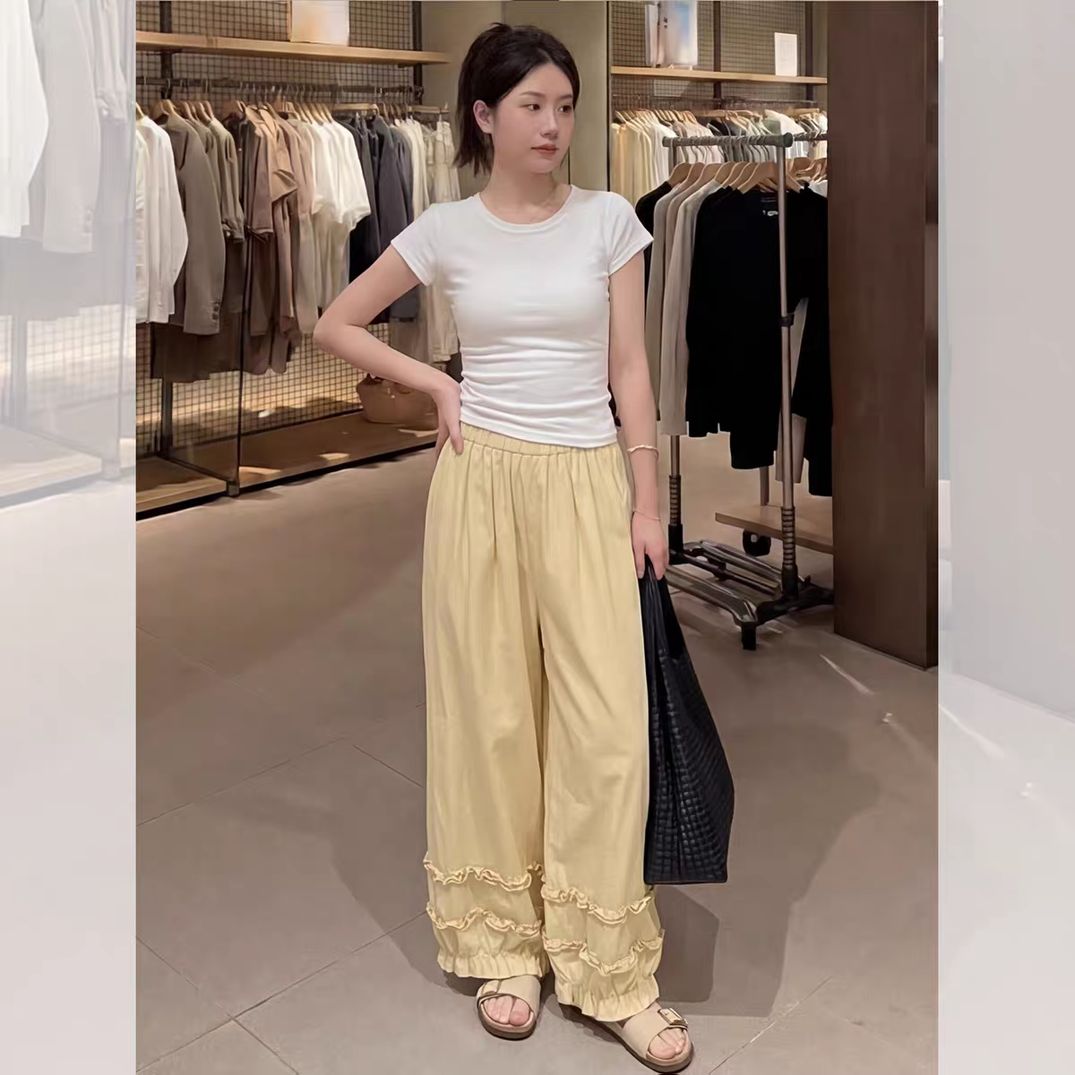 프릴 방귀 커튼 캐주얼 바지 여성 2026 여름 조거 둘 착용 달콤함 풍선 바지 작은 키 넓은 다리 길이 바지