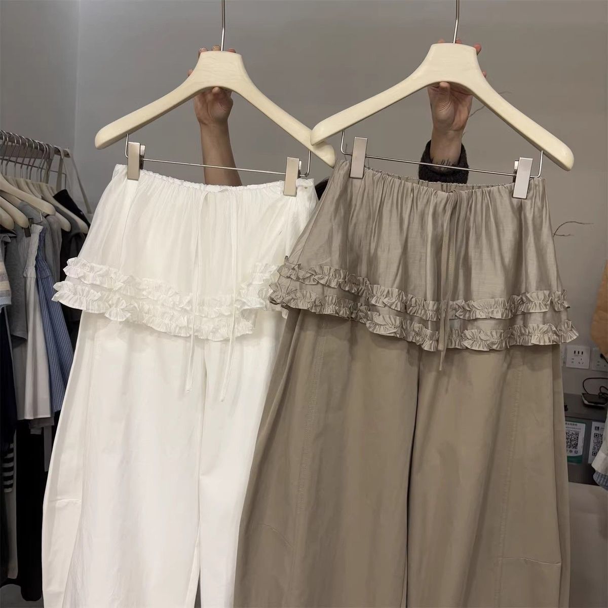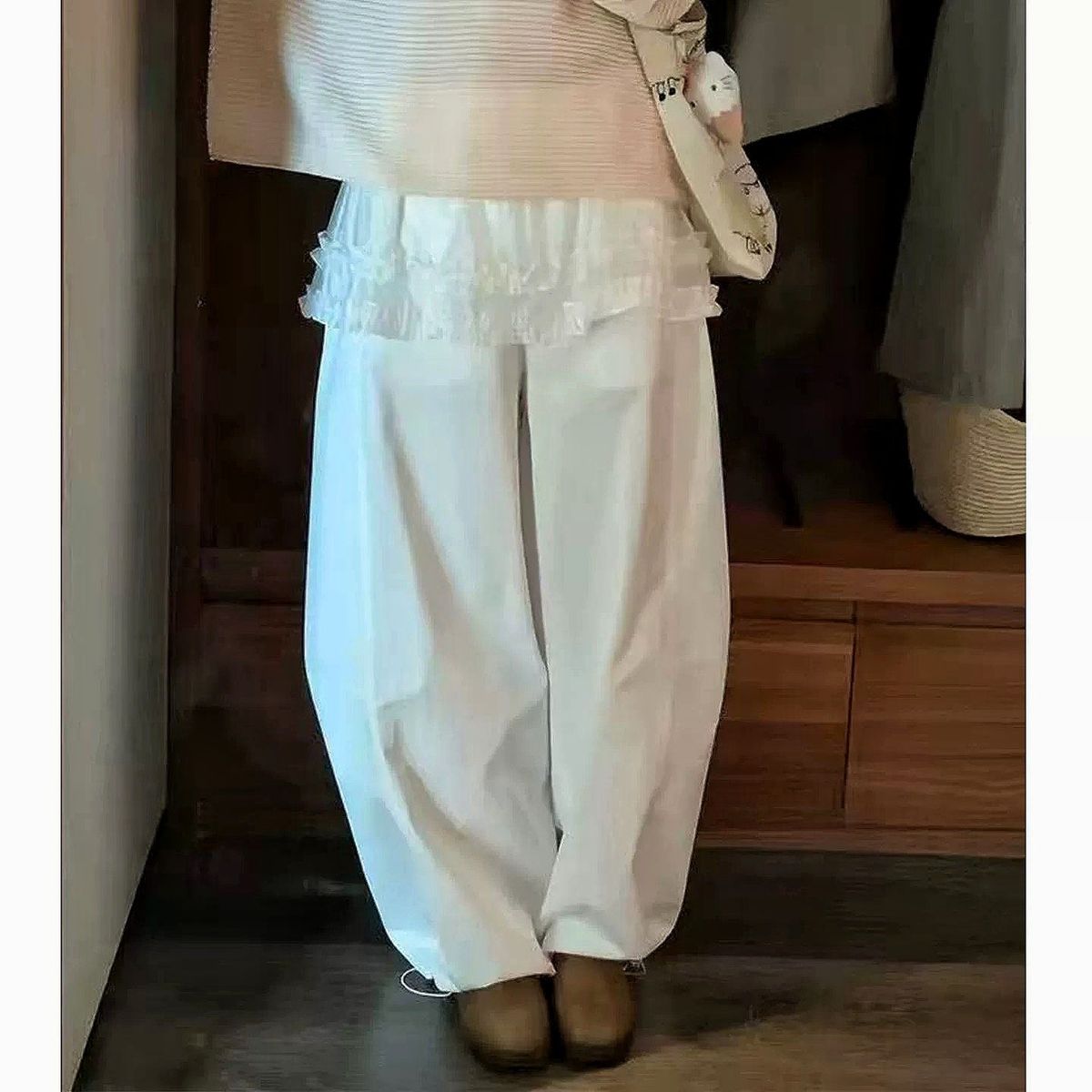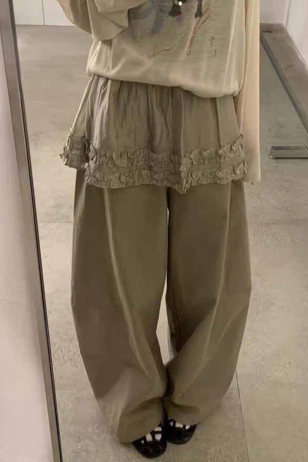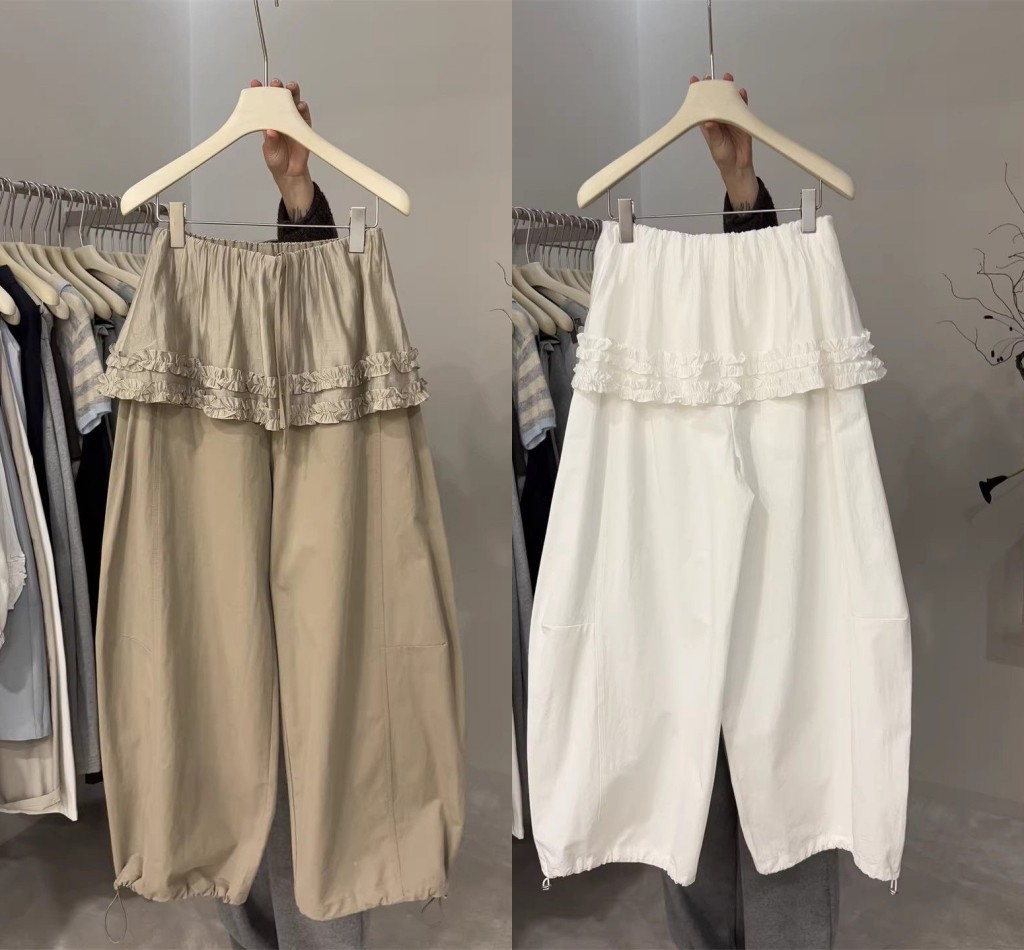 프릴 방귀 커튼 캐주얼 바지 여성 2026 여름 조거 둘 착용 달콤함 풍선 바지 작은 키 넓은 다리 길이 바지