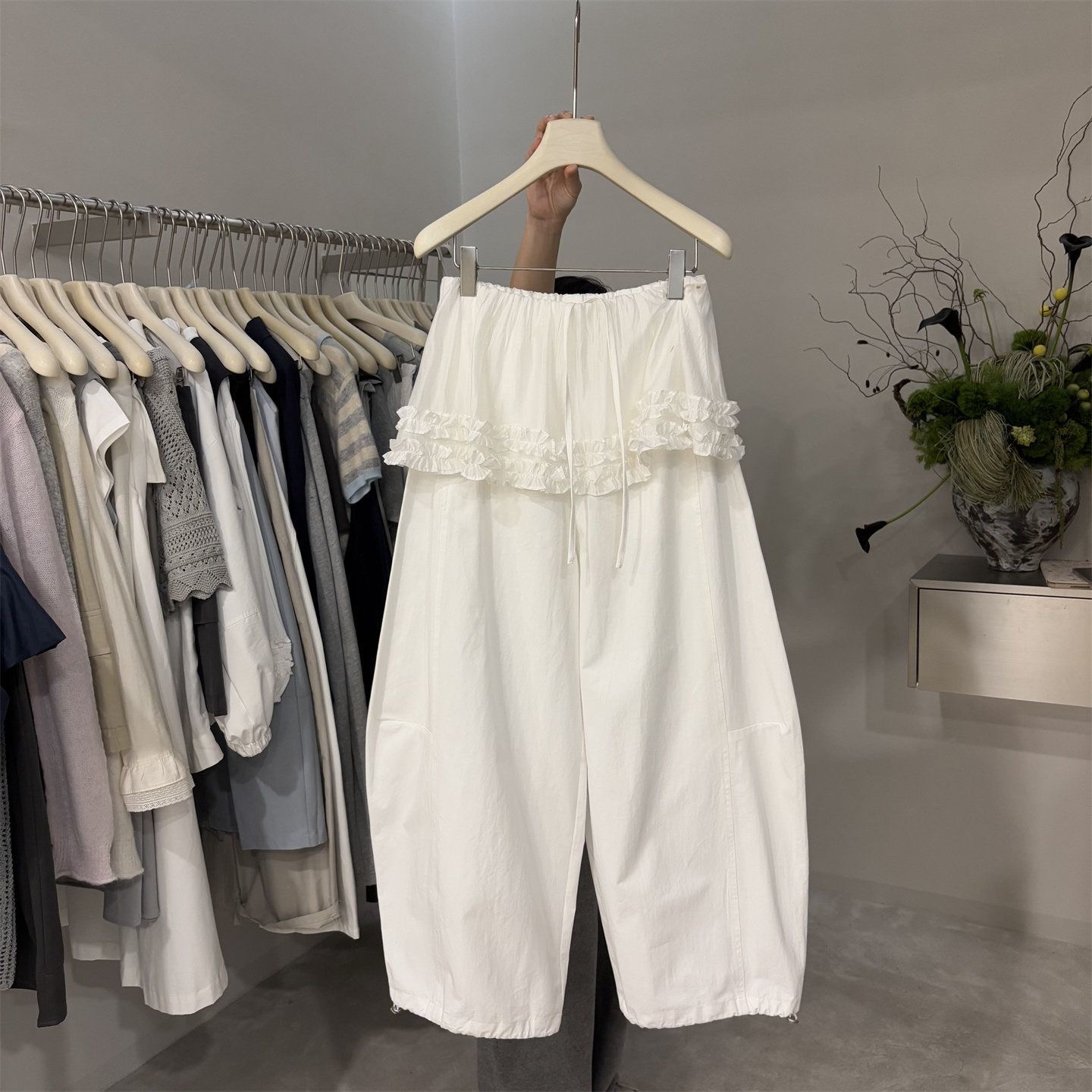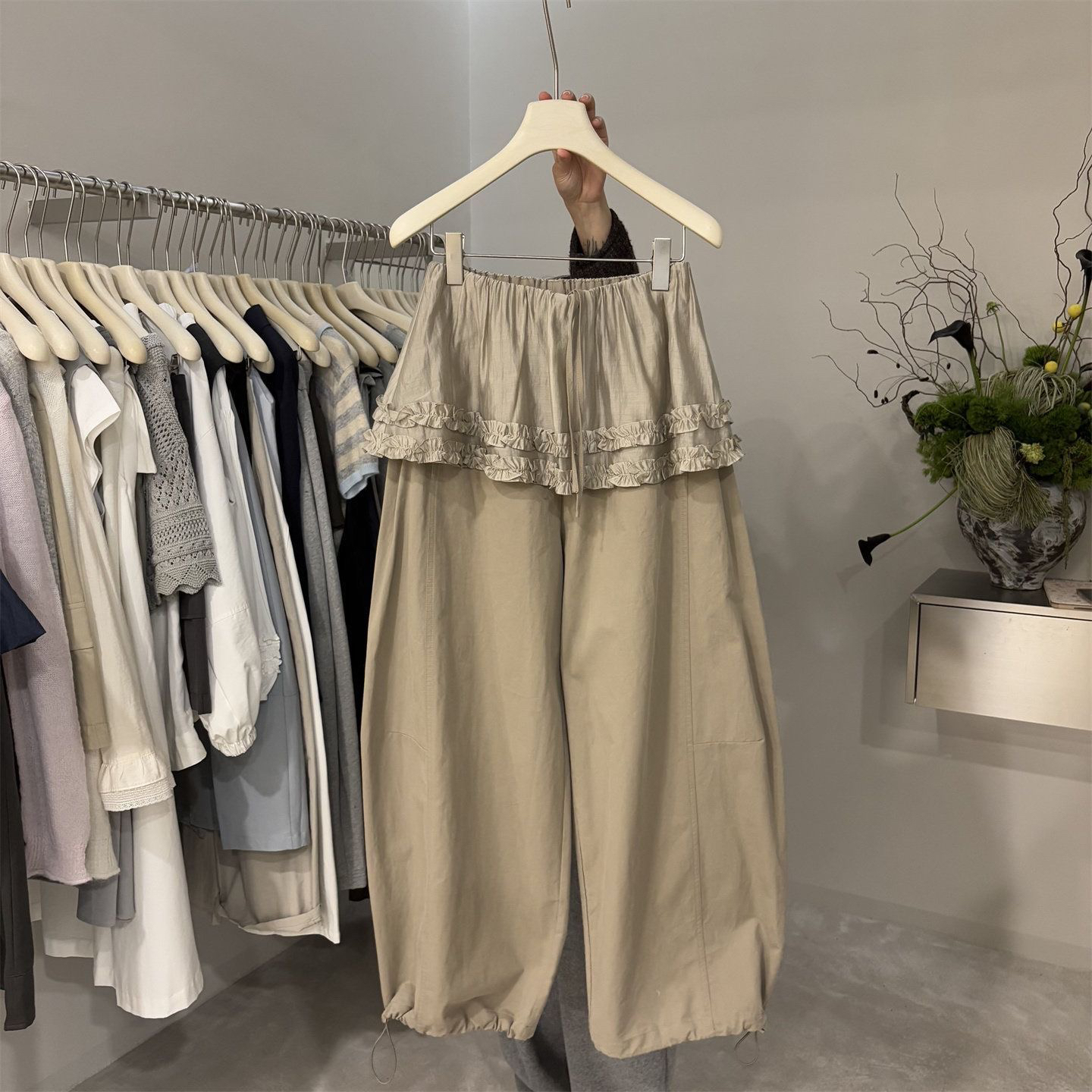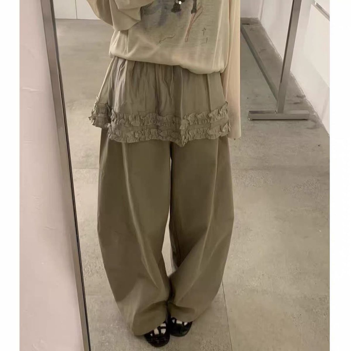 프릴 방귀 커튼 캐주얼 바지 여성 2026 여름 조거 둘 착용 달콤함 풍선 바지 작은 키 넓은 다리 길이 바지