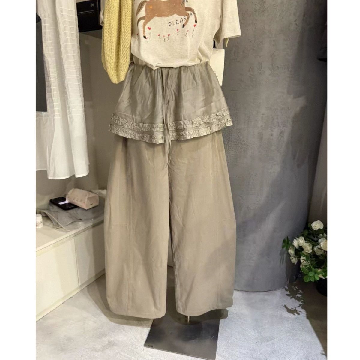 2026 새로운 하이웨이스트 페이크 레이어드 캐주얼 와이드 레그 팬츠 아메리칸 운동 바지 치마바지 디자인 센스 워크웨어 팬츠