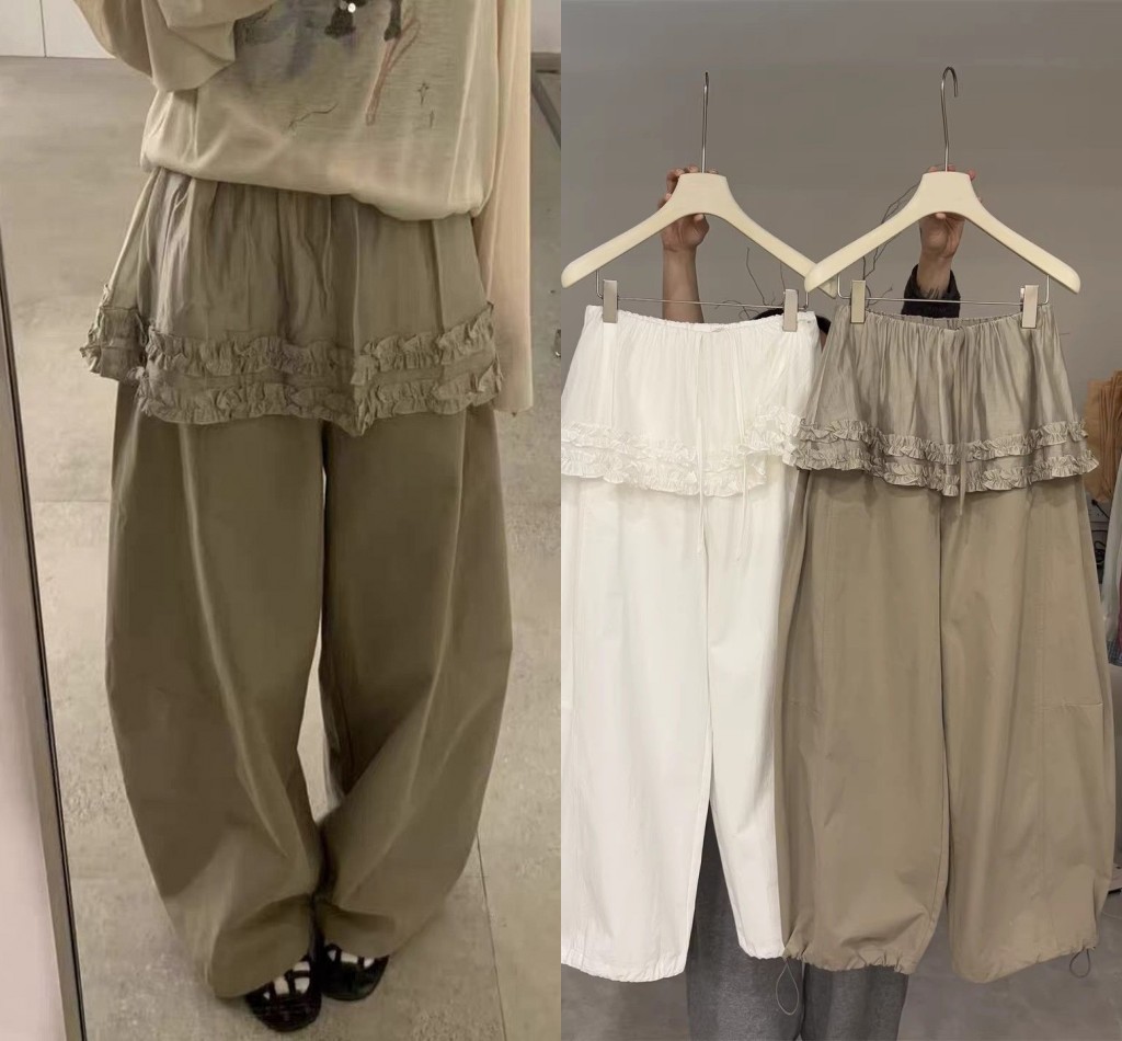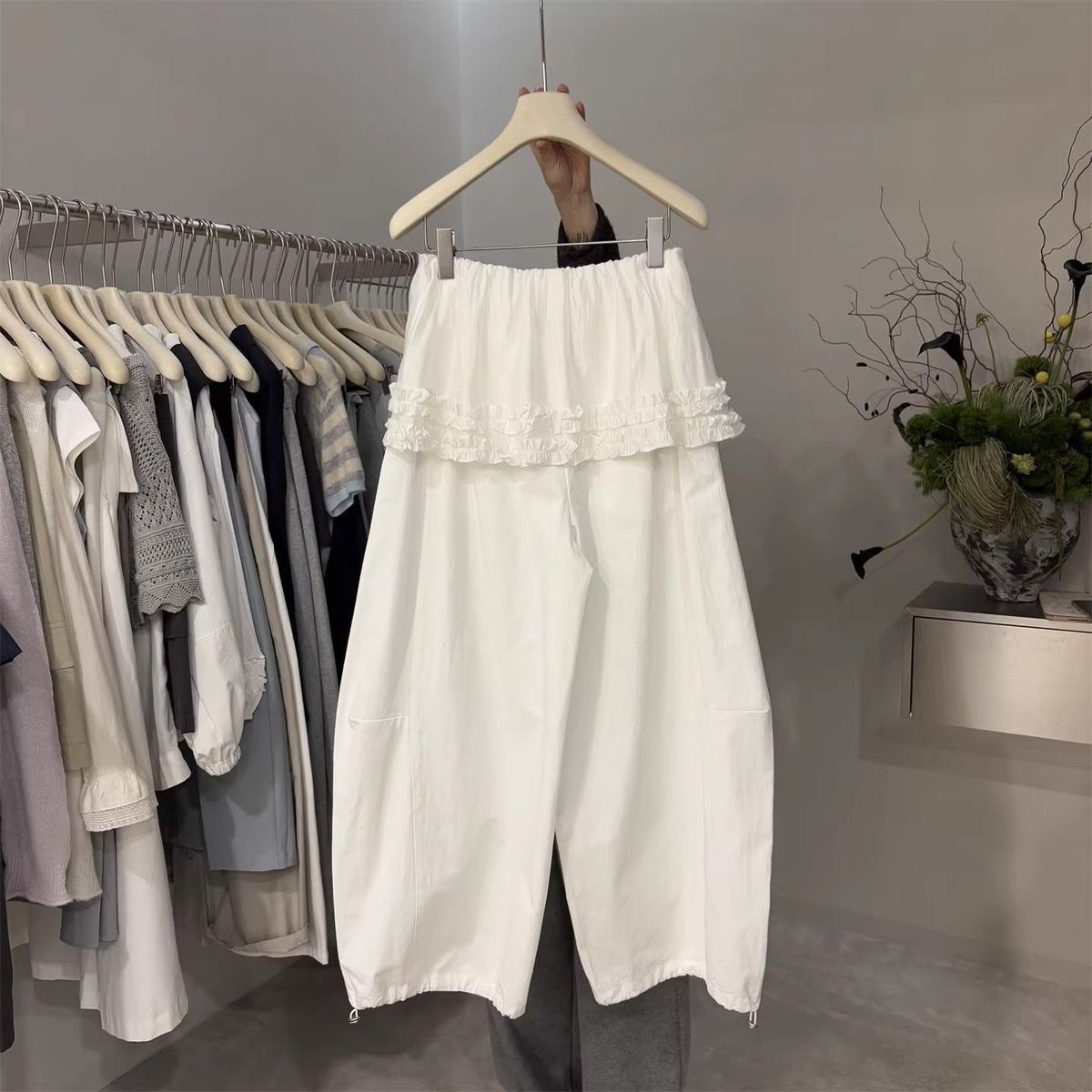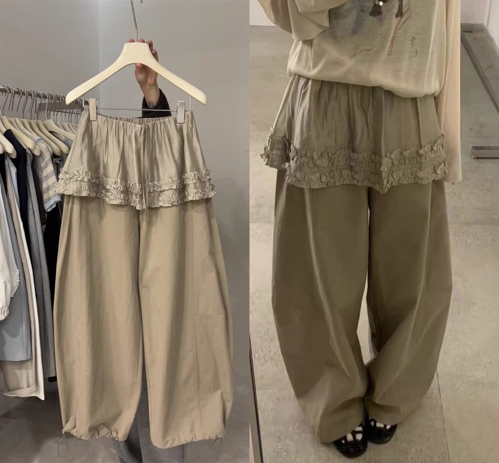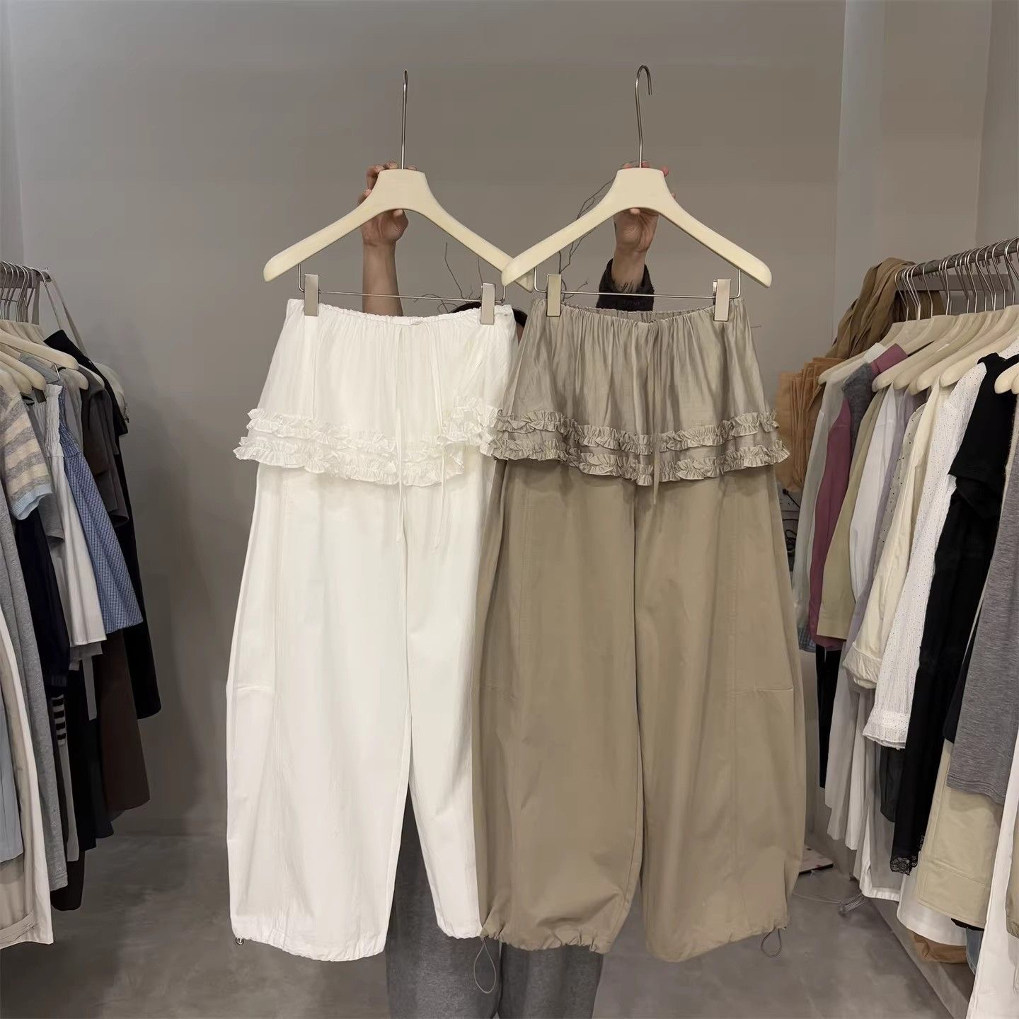 프릴 방귀 커튼 캐주얼 바지 여성 2026 여름 조거 둘 착용 달콤함 풍선 바지 작은 키 넓은 다리 길이 바지