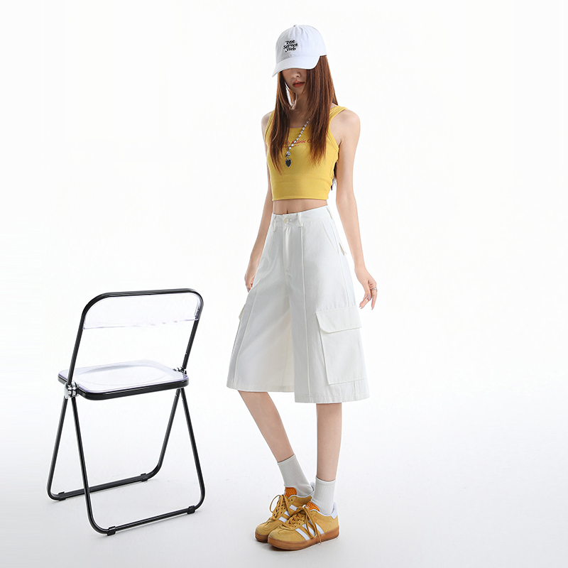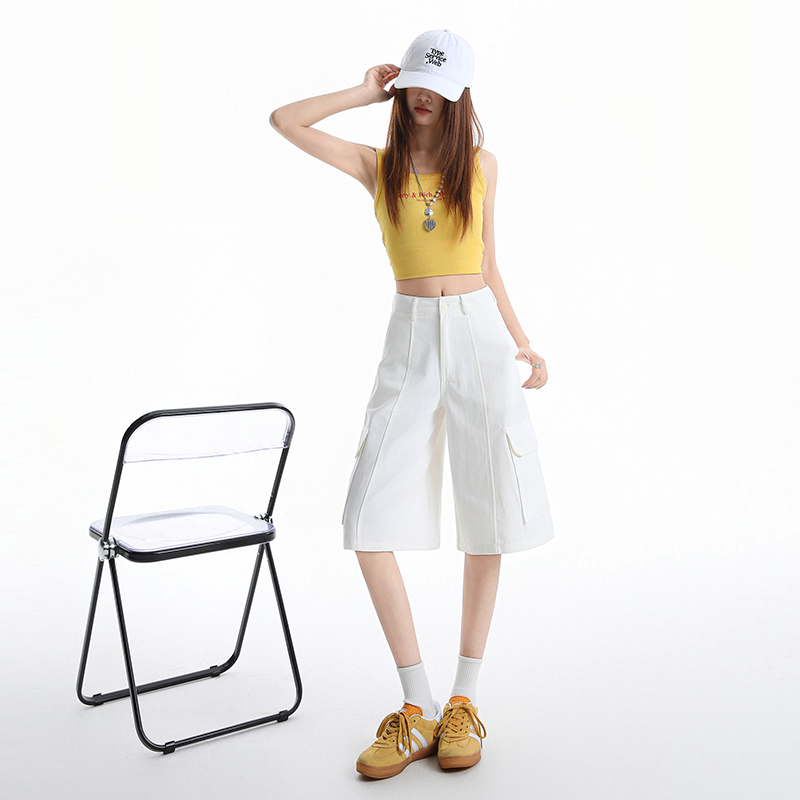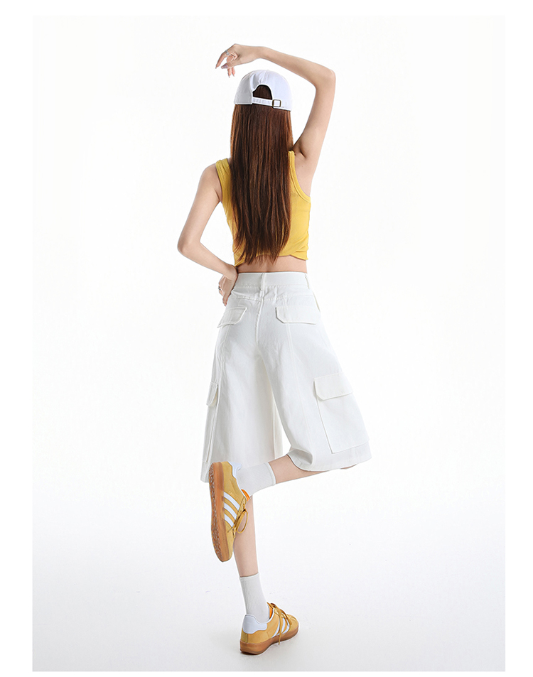 실사 레트로 워크웨어 기타 주머니 5 점 청바지 여성 여름 새로운 하이웨이스트 루즈핏 슬림해 보이는 작은 키 반바지