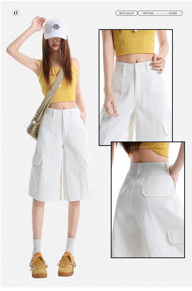 실사 아메리칸 레트로 하이웨이스트 루즈핏 반바지 다용도 슬림해 보이는 여름 새로운 스트레이트 청바지 여성