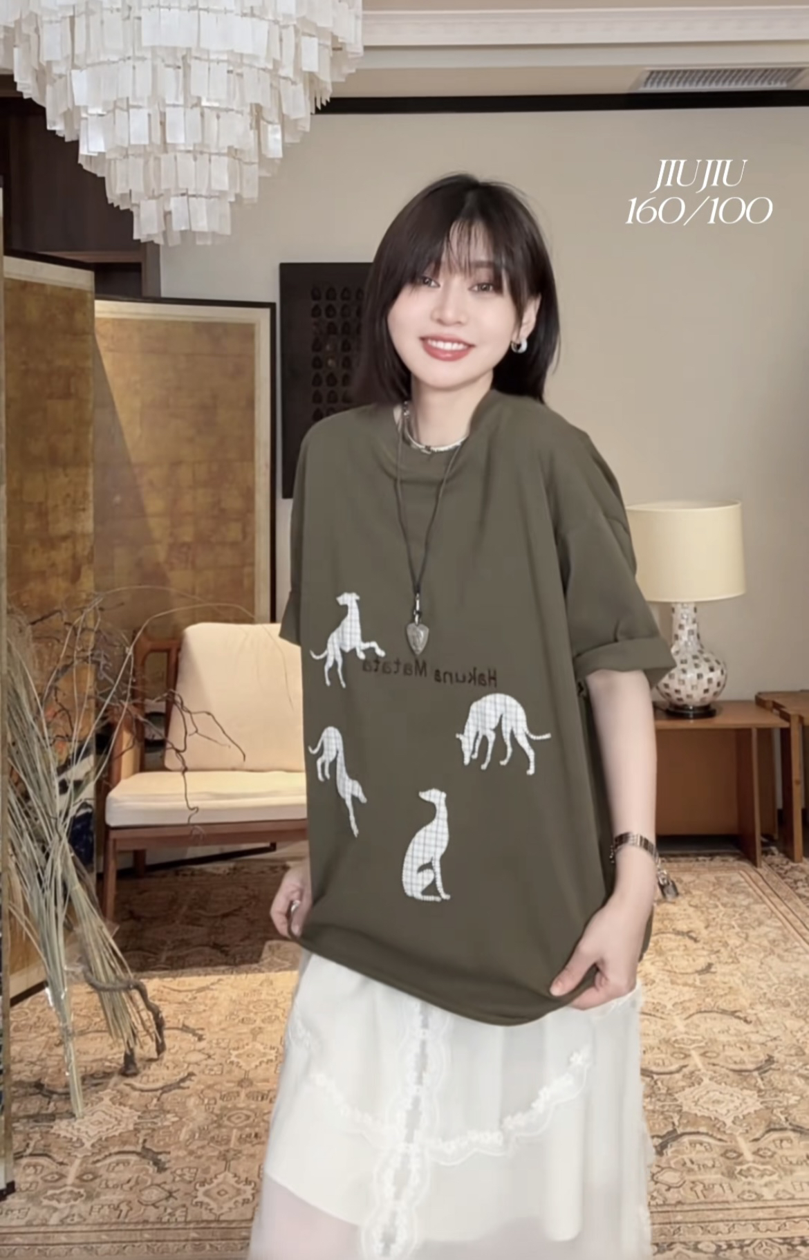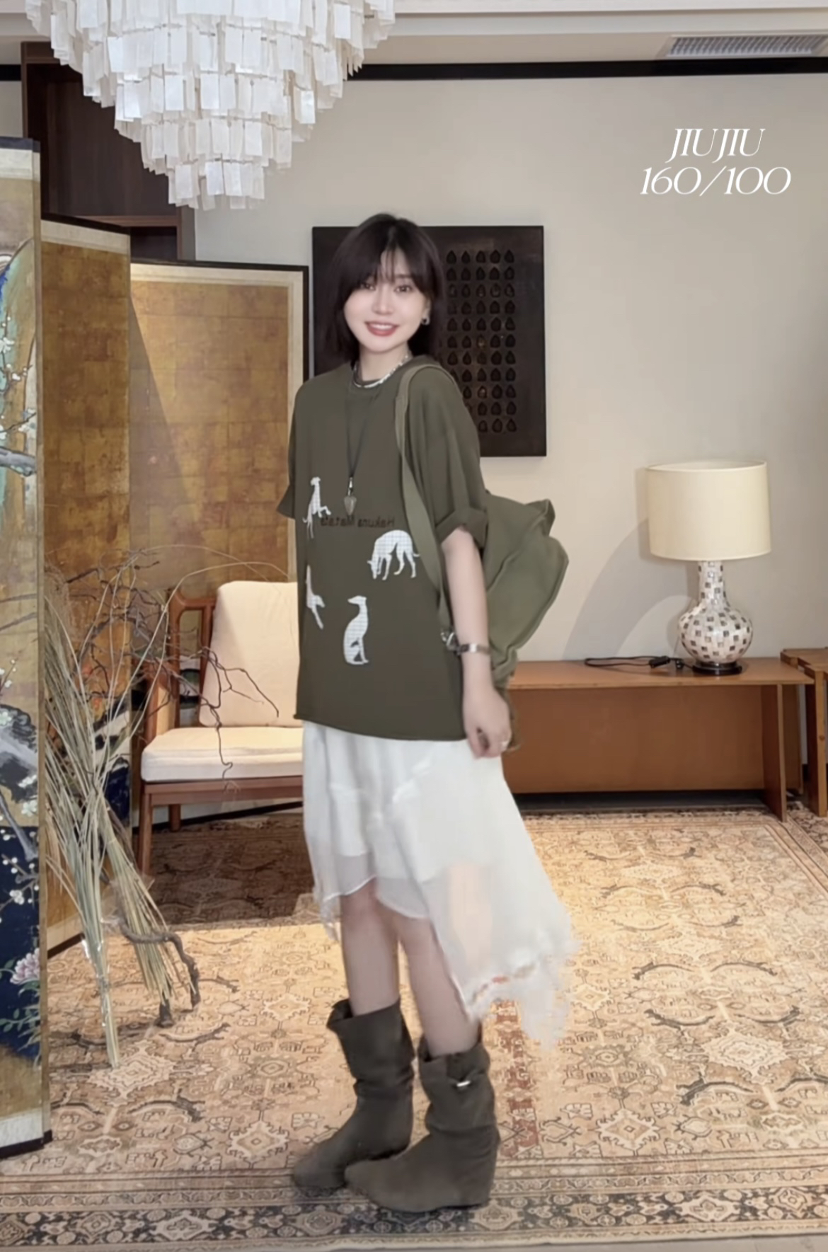흔들어서 톤 폭발 디자인 센스 슬림해 보이는 라운드 넥 t 플러스 반 스커트 세트