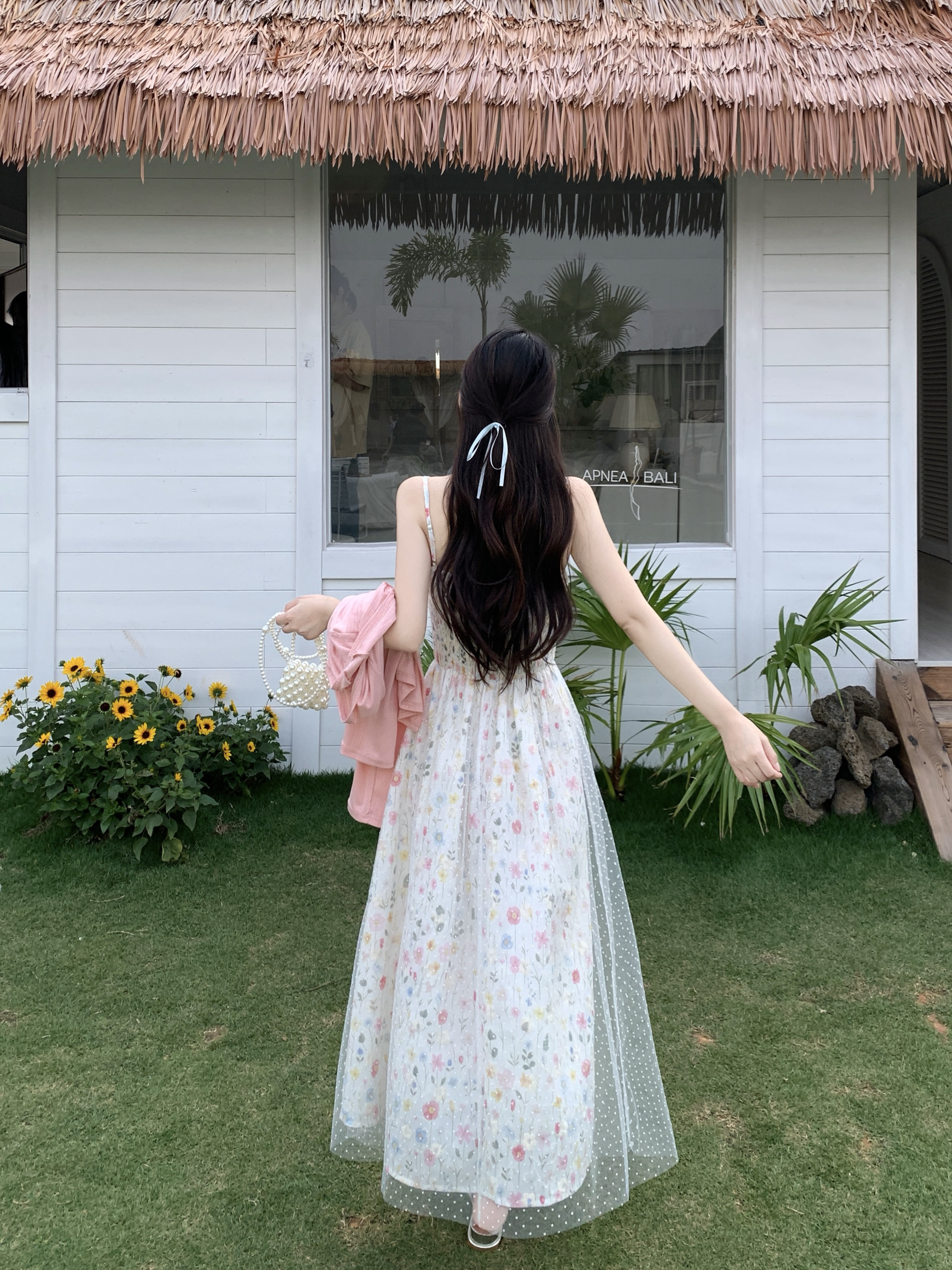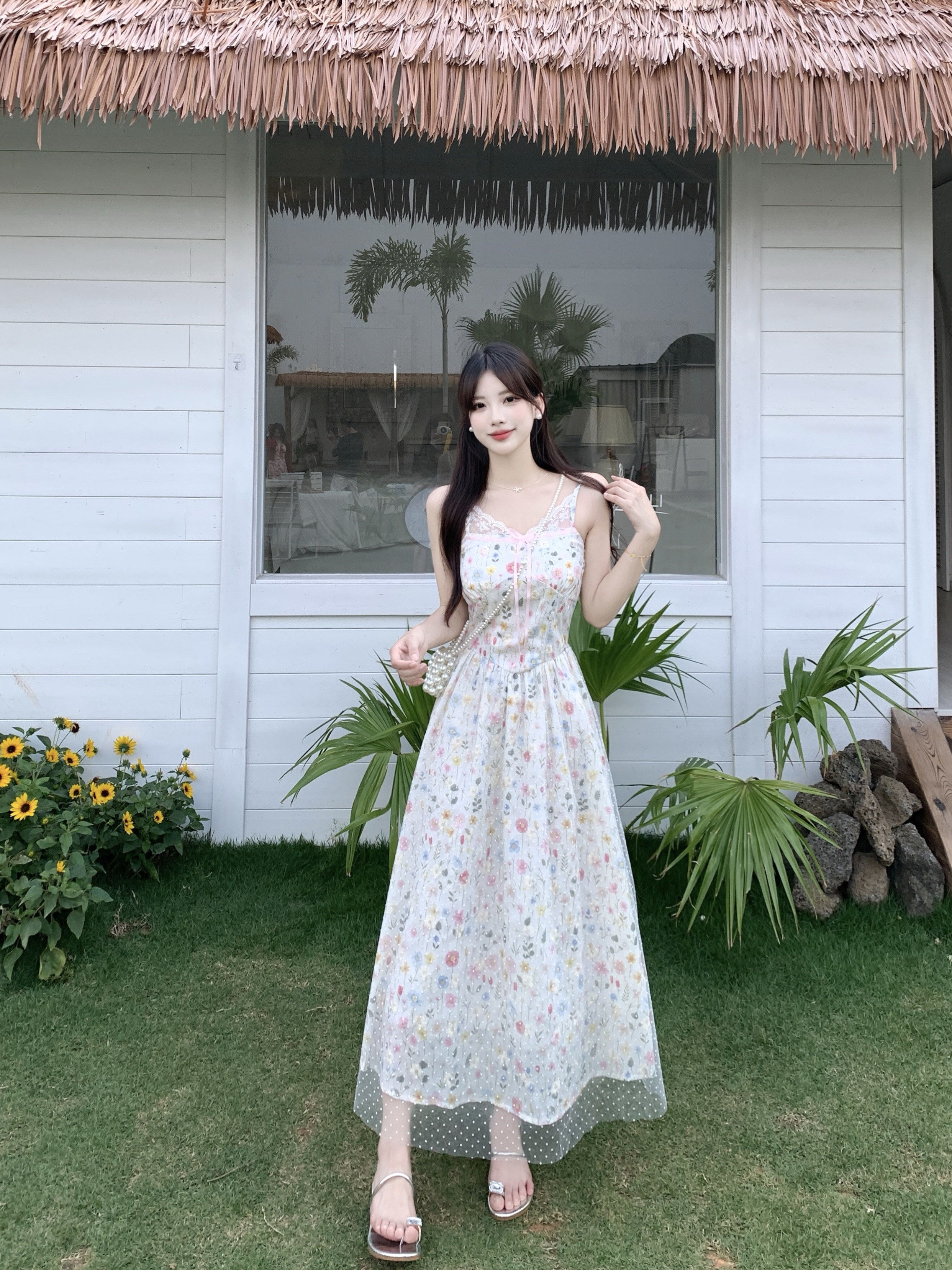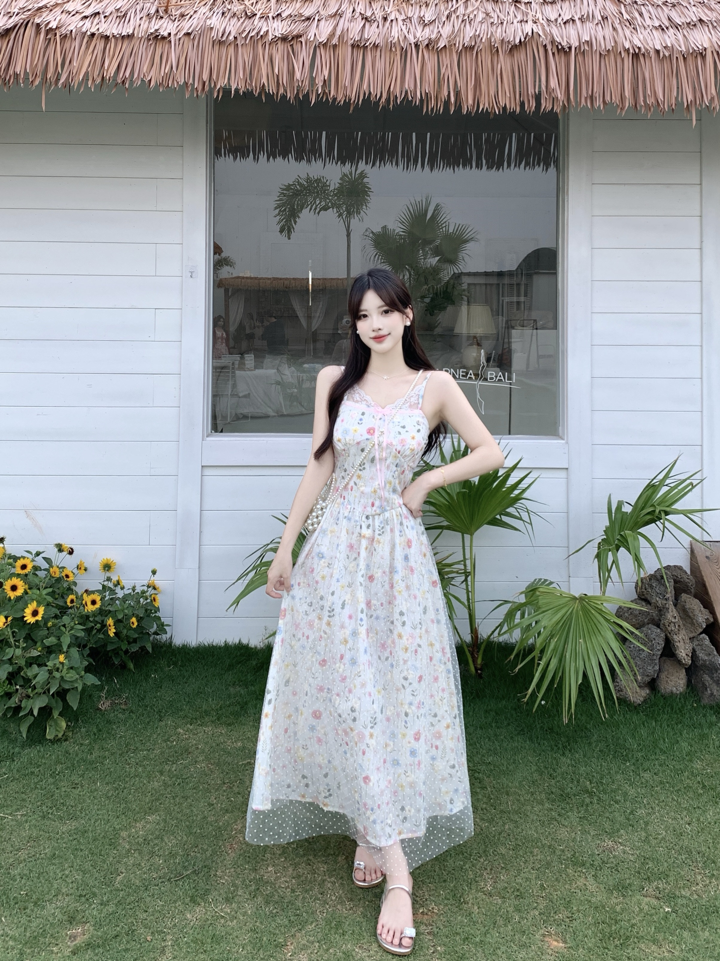 빅 사이즈 꽃 리플 달콤한 차 이른 봄 휴가 바람 요정 센스 자수 꽃무늬 슬립 마이크로 지방 표지 고기 드레스 한푸
