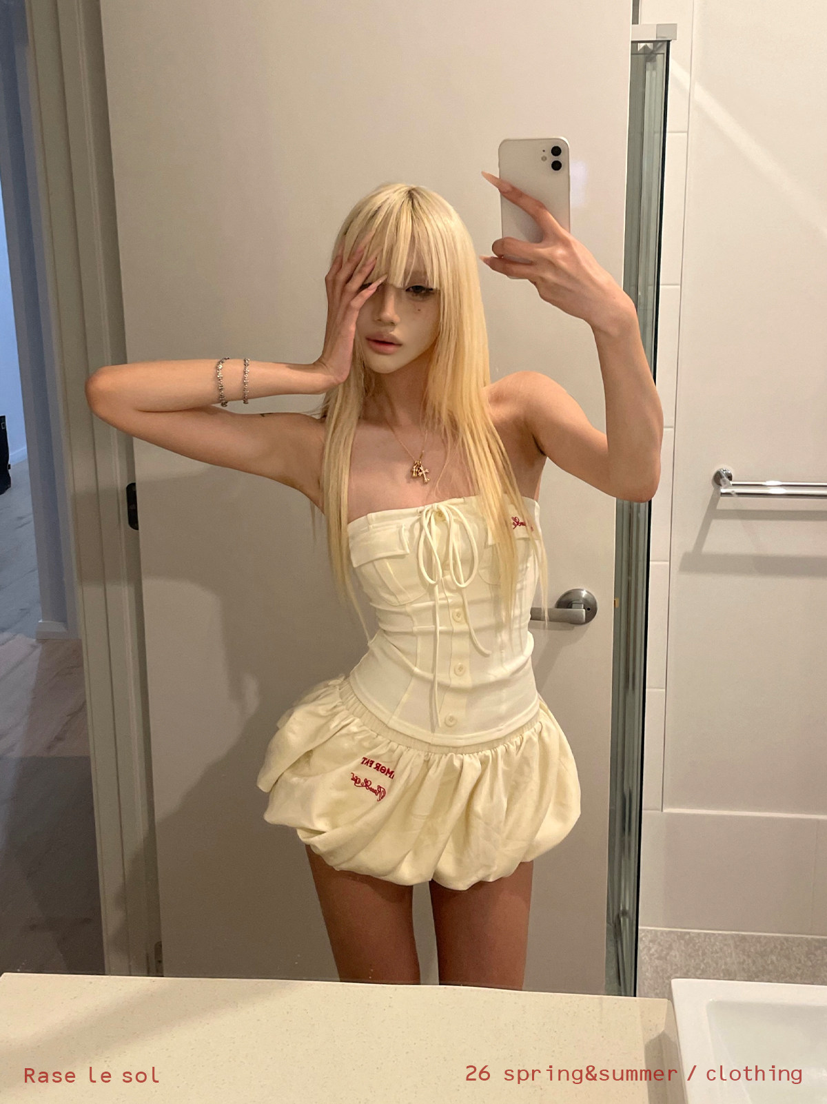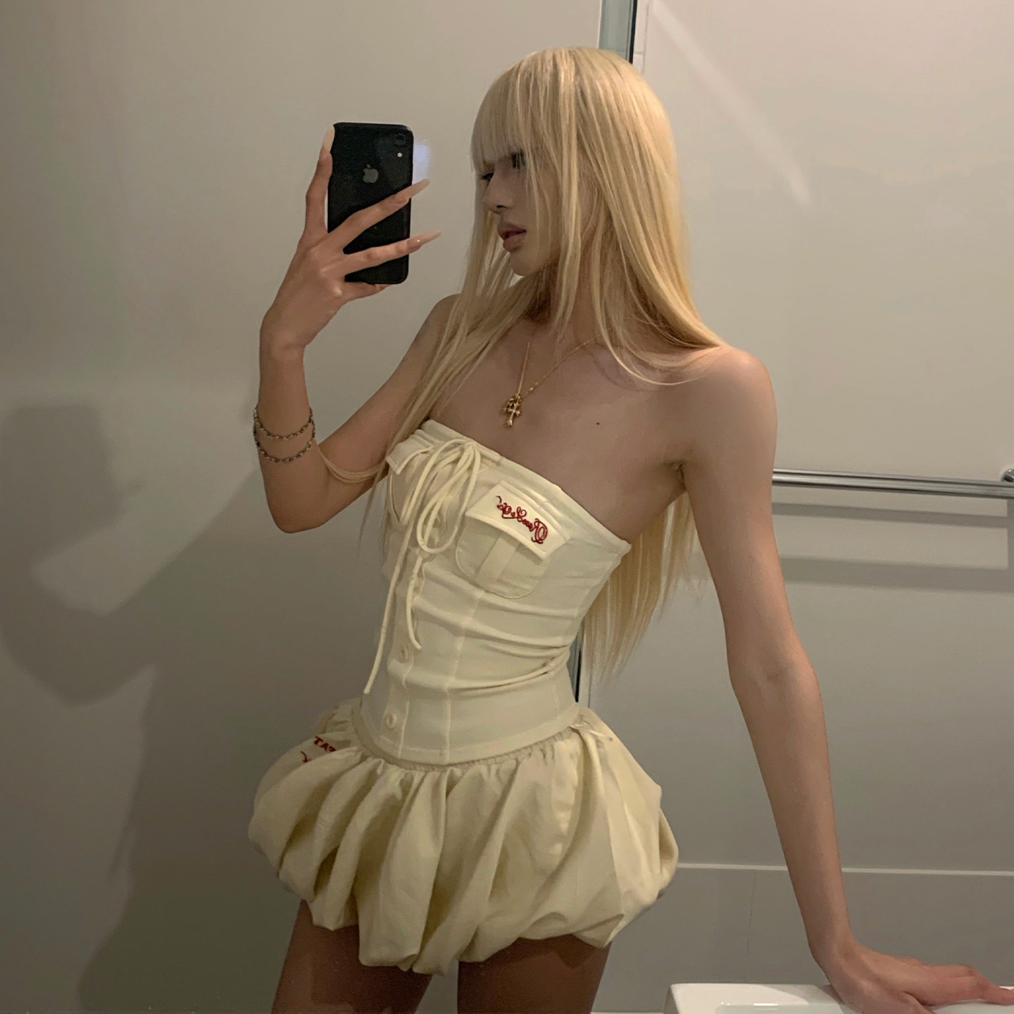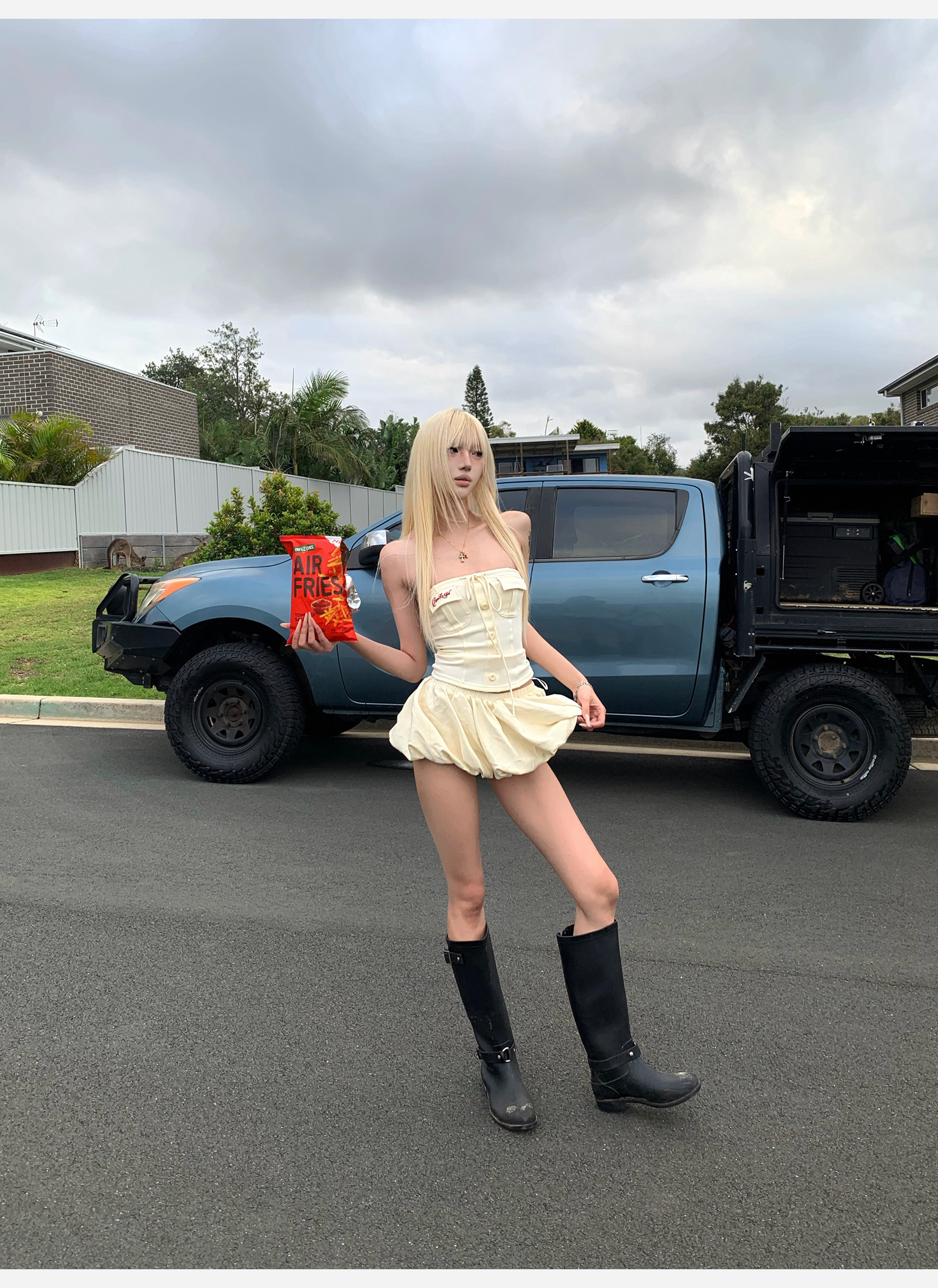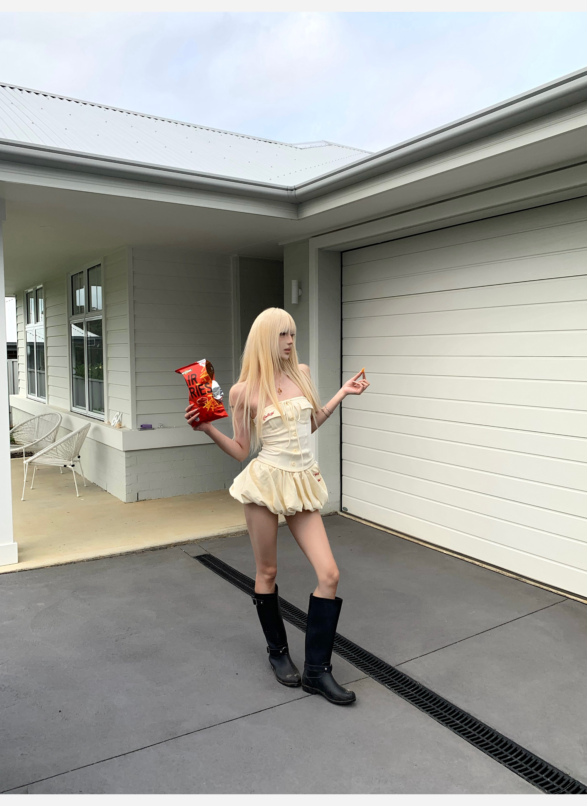 joykiki 튜브탑 맨위 여성 순수한 욕망 바람 코르셋 퍼프 미니 스커트 하이웨이스트 슬림해 보이는 디자인 반신 치마 세트